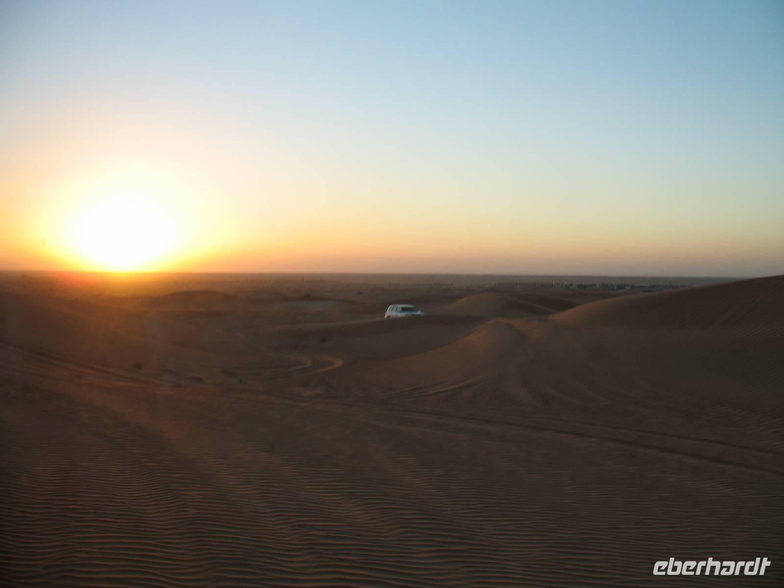 Ein weiterer spannender Tag in den Arabischen Emiraten erwartet uns :-) Am Vormittag zeigt uns Anja das sehr traditionelle Emirat Sharjah. Auf unserer Fahrt zum Souk Al Arsah legen wir noch einen kurzen Foto-Stopp am Koran-Kreisverkehr ein. Im Souk Al Arsah gibt es über Kleidung, Souvenirs bis hin zu Teppichen viele verschiedene Dinge zu kaufen. Danach fahren wir zum Fisch-Souk und Gemüse-Souk in Sharjah. Es ist schon beeindruckend wie frisch die Fische bei diesen heißen Temperaturen ausschauen. Auf dem Gemüse-Souk gierhalten die Gäste als Überraschung leckere Mini-Bananen zum Probieren. Dieser Tag steht im Sinne der Souks, so dass wir nun den bekannten Blue Souk mit Blick auf die "King Faisal Mosque" besuchen. Gegen Mittag fahren wir zum Hotel zurück, wo wir bereits zu einem leckeren Mittagsbuffet im "Bastakiya" erwartet werden. Nach dem Mittagessen haben wir Freizeit zum Entspannen oder Spazieren bis zum zweiten Highlight des Tages, unsere Wüstensafari. Wir treffen uns um 15.45 Uhr und verteilen uns auf die verschiedenen Jeeps. Während wir zuerst rund eine Stunde auf asphaltierter Straße fahren und einen kurzen Bio-Stopp einlegen, führt uns der Weg zum Barbecue in der Wüste über die Sanddünen. Die Fahrt allein ist schon ein Erlebnis, es geht hoch und runter, teilweise haben wir den Eindruck, der Jeep kippt gleich um :-) Unterwegs haben wir noch einen Stopp, um einen traumhaften Sonnenuntergang zu sehen. Bei unserer Ankunft im Wüstencamp ist es schon dunkel. Das Camp bietet jede Menge Platz für mehrere Hundert Menschen und es sind viele unterschiedliche Nationen unter ihnen vertreten. Natürlich ist auch das Unterhalterhaltungsprogramm vielseitig. Wir können auf Kamelen reiten, was einige Gäste bereits gleich nach der Ankunft austesten. Es besteht auch die Möglichkeit, sich ein Henna-Tattoo malen zu lassen, Souvenirs zu kaufen, Shisha zu rauchen, typische arabische Kleidung anzuziehen und sich fotografieren zu lassen oder auch auf einem Board die Sanddünen herunter zu fahren. Während des reichhaltigen ausgezeichneten Buffets unter dunklem Sternenhimmel bestaunen wir die tolle Unterhaltung unter anderem mit orientalischer Bauchtanzshow. Gegen 20.30 Uhr werden wir zum Hotel zurück chauffiert und ein weiterer aufregender Tag in Dubai geht zu Ende :-) Wir freuen uns schon auf morgen und weitere einzigartige Ereignisse.