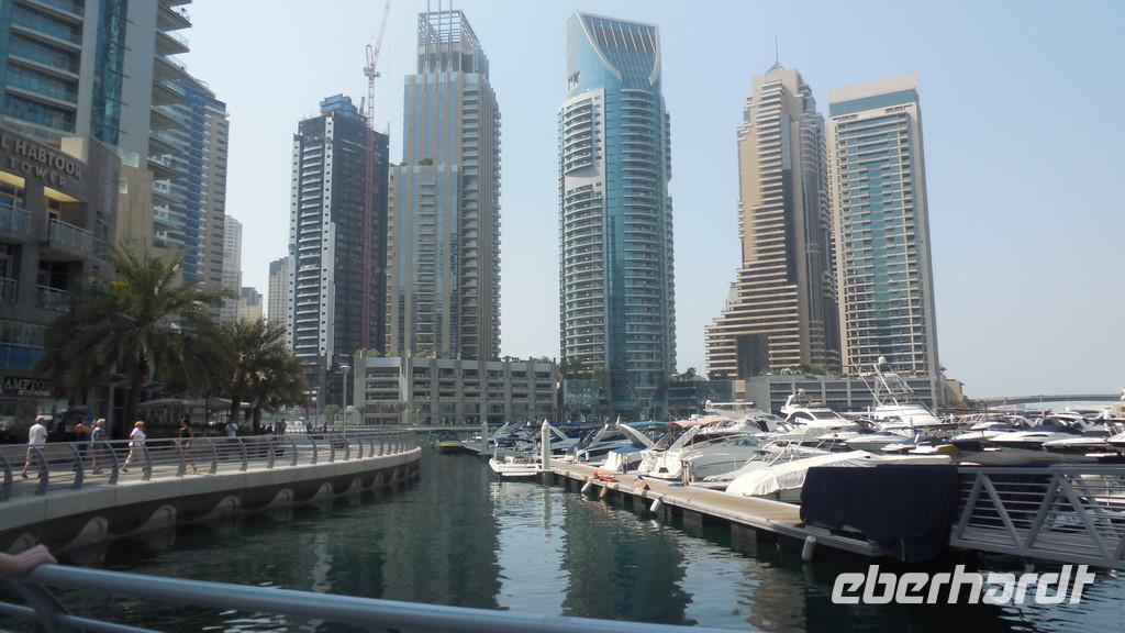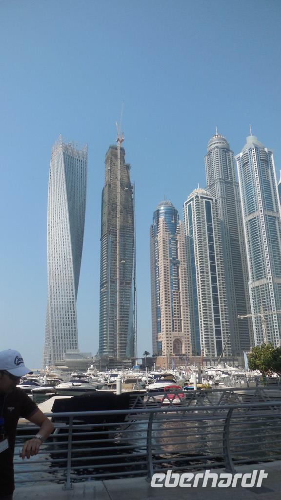Der Bus wartete bereits auf uns und brachte uns mitten in die Stadt zur Dubai Marina. Dort machten wir einen Fotostopp. Man hat einen prima Blick auf die Hochhäuser. Dann ging es weiter zur Mall of Emirates. Wir bummelten durch diese große Mall und tauschten Geld. Anja zeigte uns auch die Skihalle mitten im Einkaufszentrum, wo bereits reger Betrieb war. Die natürlich auch das Highlight dieser Mall ist. Dann brachte uns der Bus zurück zum Hotel, wo bereits ein gutes Mittagsbuffet auf uns wartete. Die meisten ruhten sich danach aus oder erkundeten die Umgebung um unser Hotel. Abends trafen wir uns alle zum Essen. Im Hotel eigenen Pub ließen wir den Abend ausklingen.