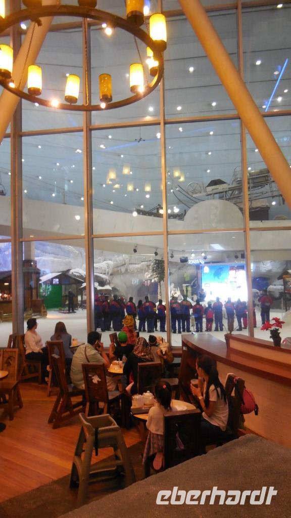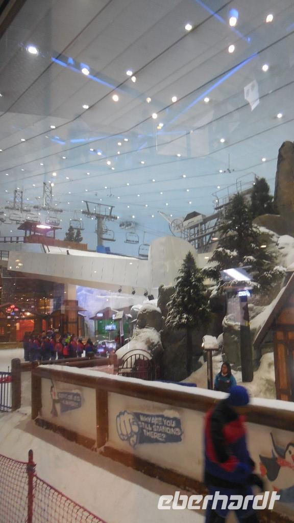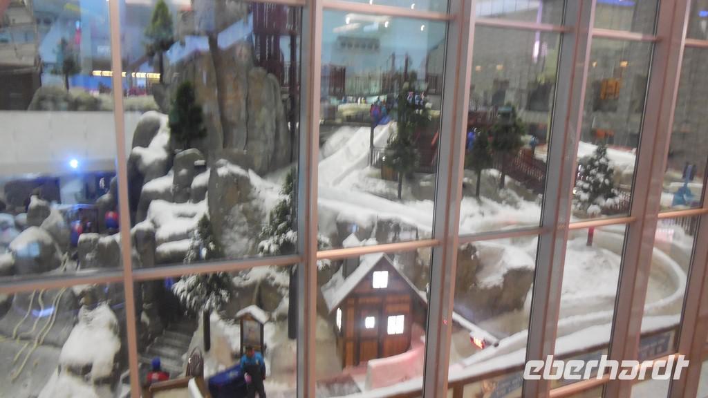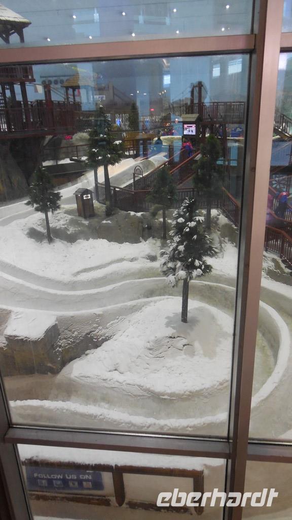 In einer Mall gleich in der Nähe essen wir zu Mittag. Hier kann man noch mal shoppen gehen. Das Highlight hier ist ein großer Kinderpark und wieder eine Winterlandschaft. In den Geschäften gibt es Weihnachtssachen, das sieht schon etwas seltsam aus.