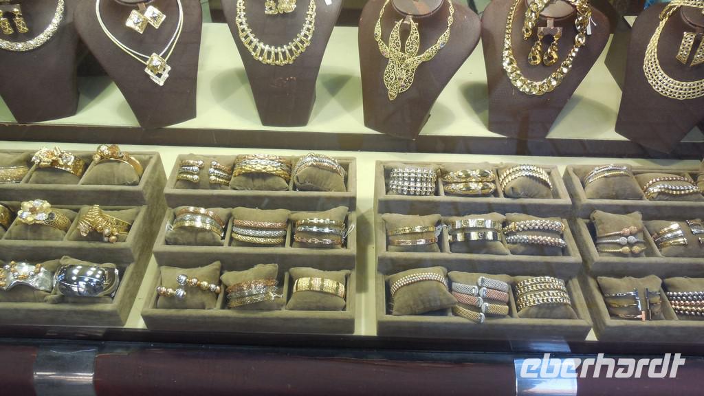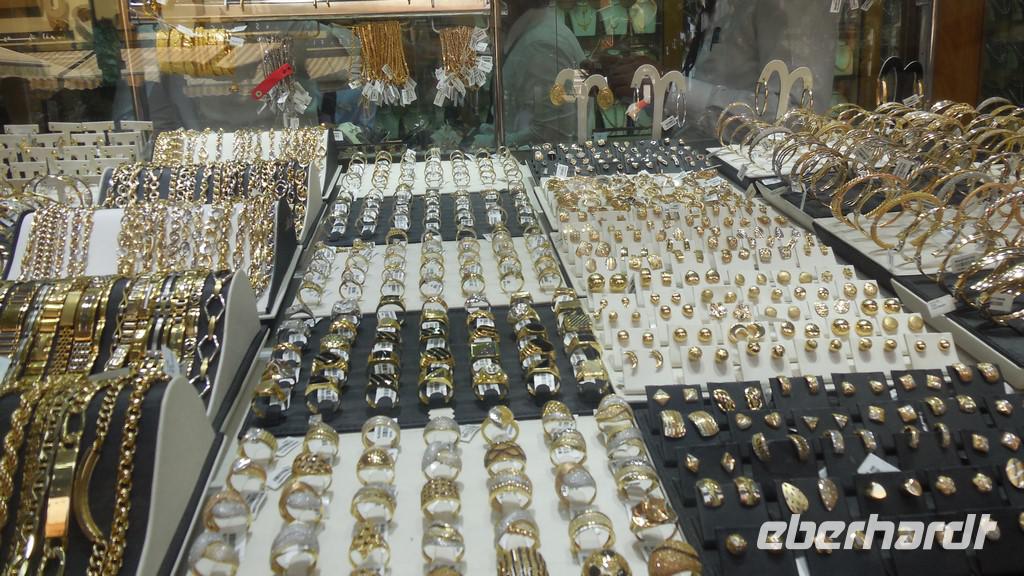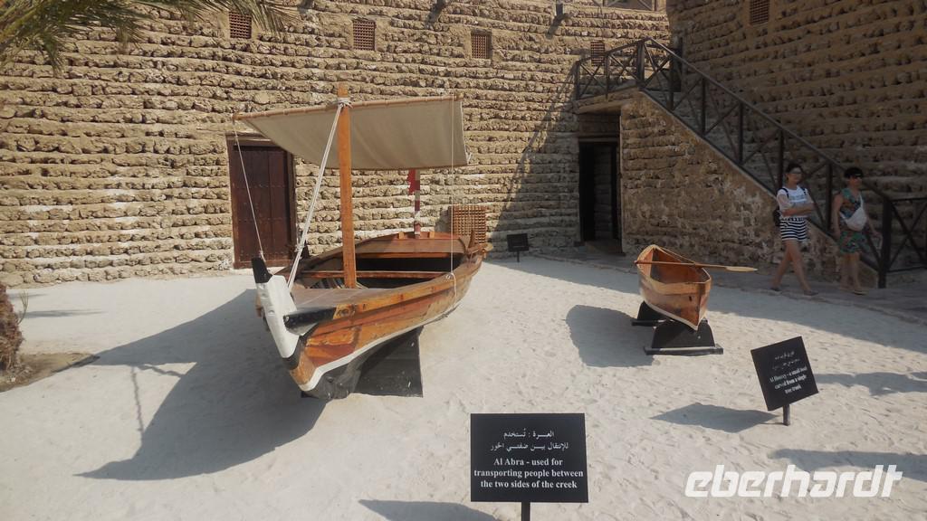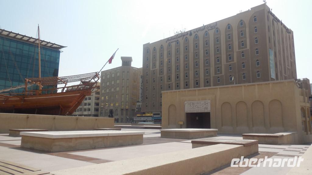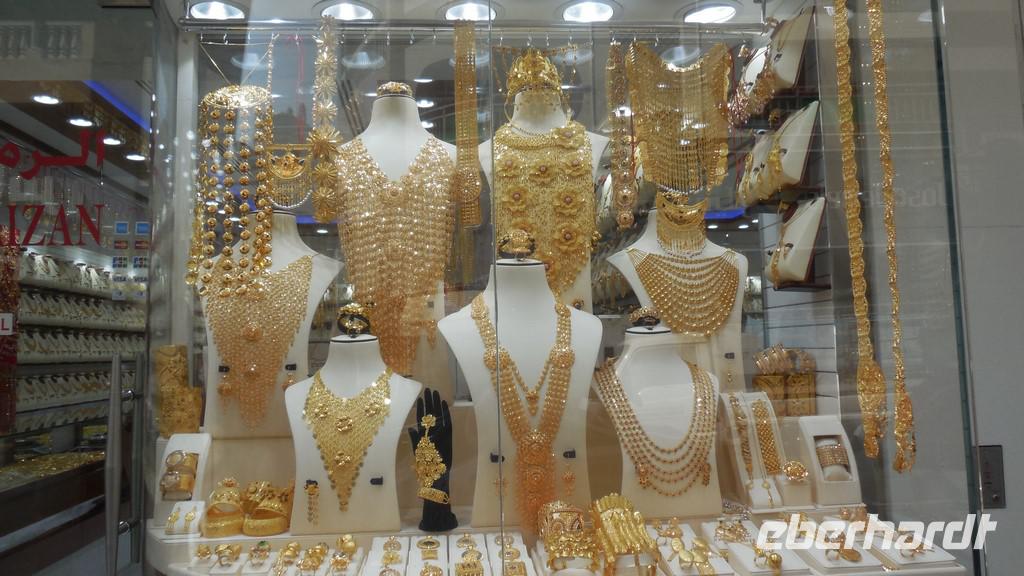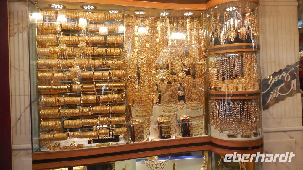 Um 8 trafen uns zum Frühstück. Halb 10 begann unser Tag mit Anja. Die uns am Hotel abholte. Als erstes zeigte Sie uns das Dubai Museum, dass nur auf der anderen Straßenseite war. Alle waren begeistert, wie anschaulich alles dort dargestellt wird. Man kann sich sehr gut vorstellen, wie die Menschen früher gelebt haben. In einem Film konnte man sehr gut die Entstehung Dubais erleben. Anschließend gingen wir gemeinsam zum Creek. Die Sonne strahlte vom stahlblauen Himmel und fast 40 Grad ließen viele fast schmelzen. Wir fuhren mit dem Wassertaxi, einem "Abra" über den Fluss und genossen den super Blick auf die tolle Kulisse. Auf der anderen Seite erwartete uns das bunte Treiben der arabischen Märkte. Als erstes kam der Gewürz Souk. Die engen Gassen sind voller Gewürze und Früchte. Es roch sehr betörend. Dann schlenderten wir weiter zum Gold Souk. Hier glitzerte es überall. Er gilt als größter Goldmarkt. Die unzähligen Geschäfte mit den vielen Schmuckstücken sind unglaublich. Natürlich ist dort auch der größte und teuerste Goldring der Welt! Der Vermerk ist auch im Guiness Buch der Rekorde.