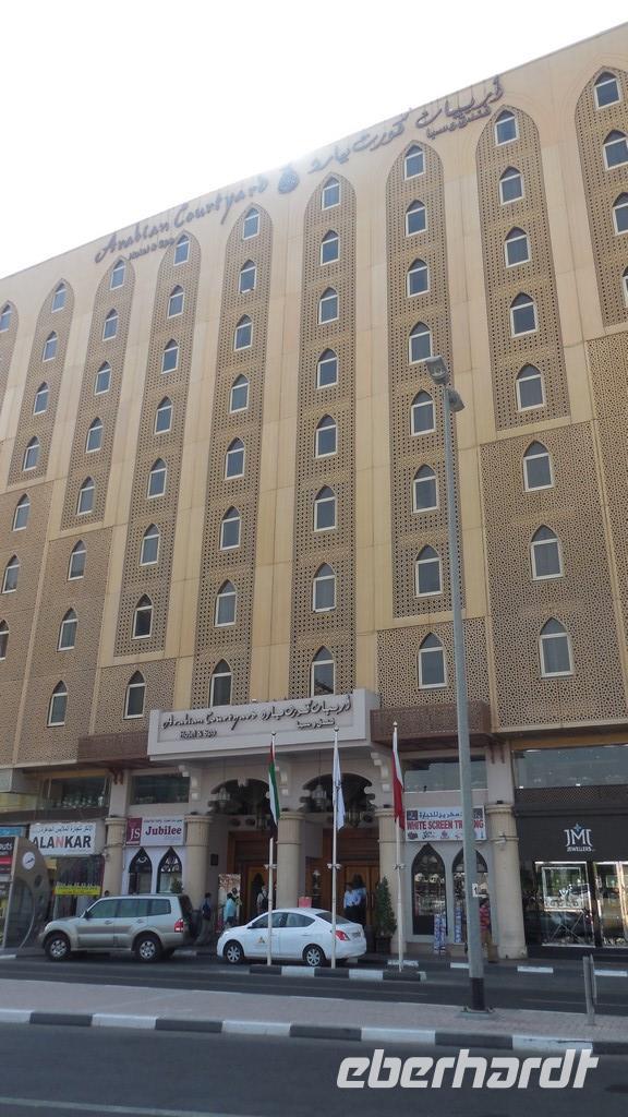 Am Samstagmorgen trafen wir uns in Leipzig, um gemeinsam in die Emirate zu fliegen. Unser erster Halt war aber Istanbul. Dort trafen wir den Rest der Reisegruppe, aus Düsseldorf und Berlin. Nach einem ruhigen Flug landeten wir 1.20 Uhr in Dubai. Alleine die Größe des Flughafens ist unglaublich. Trotzdem ging es ganz schnell und nachdem alle Ihr Gepäck hatten gingen wir zum Ausgang. Dort erwartete uns bereits Anja, unsere örtliche Reiseleiterin. Die uns herzlich begrüßte. Nach einer kurzen Fahrt durch die beleuchtete Stadt erreichten wir unser Hotel. Das „Arabian Courtyard" liegt im Stadtteil Bur Dubai. Durch seinen schicken arabischen Stil gefiel es und sehr. Da alle sehr müde waren bezogen wir schnell unserer Zimmer. Aber sehr lange konnten wir nicht schlafen. Um 5 Uhr morgens rief der Muezina und alle waren wieder wach....