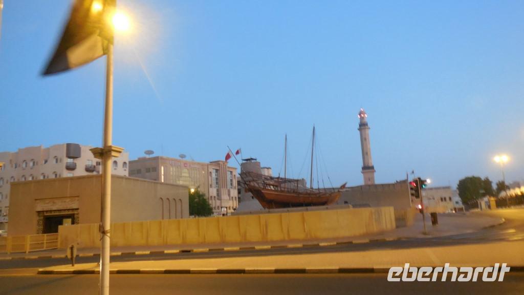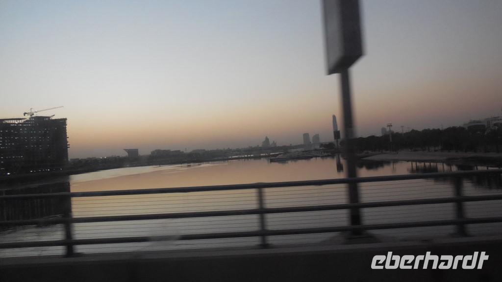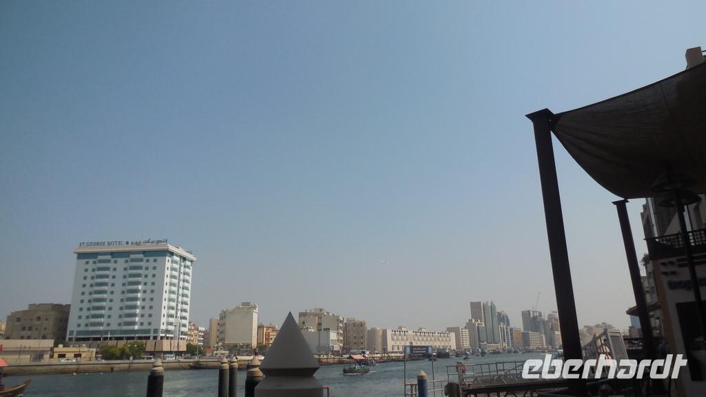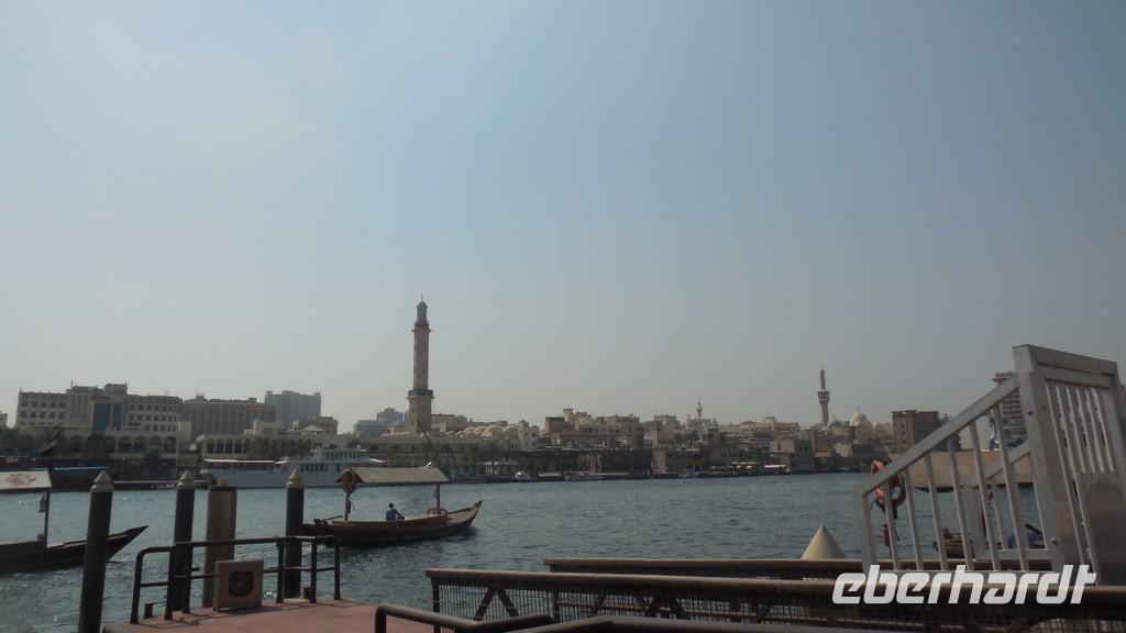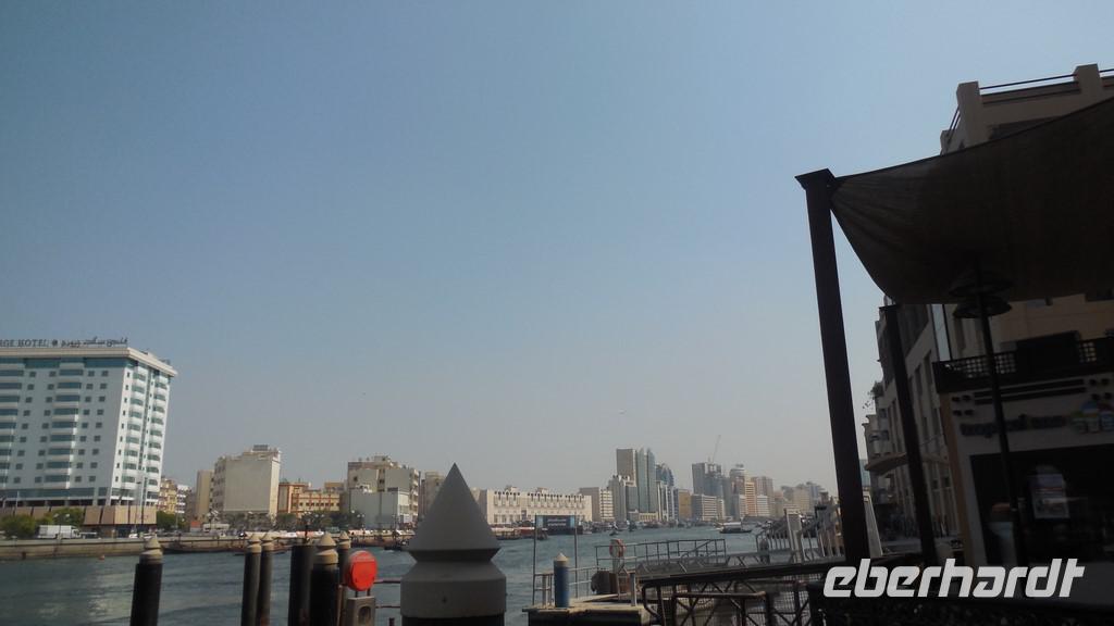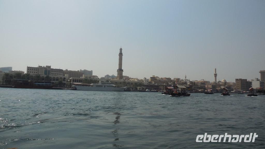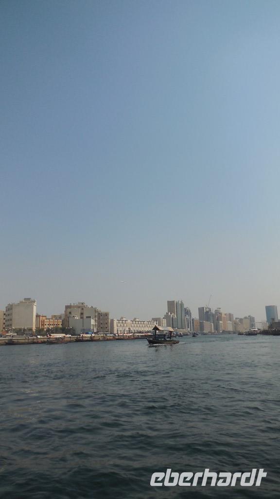 19.30 Uhr holte uns ein Bus ab und es ging an den Fluss. Wir bestiegen ein wunderschönes beleuchtetes Dhau. Über 2 Stunden fuhren wir mit dem Schiff auf dem Creek entlang. Wir hatten einen tollen Blick auf die Skyline, unser Hotel und sahen viele beleuchtete Schiffe. Dabei genossen wir ein gutes Abendessen. Ein Derwisch tanzte dazu. Später ging es mit dem Bus zurück zum Hotel, es waren noch 34 Grad und sehr angenehm.