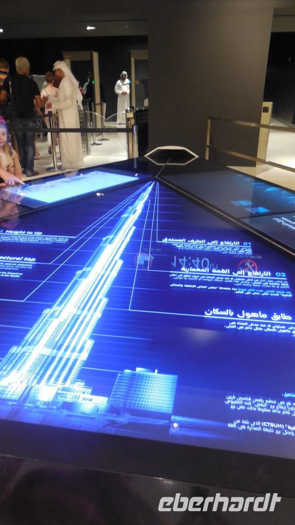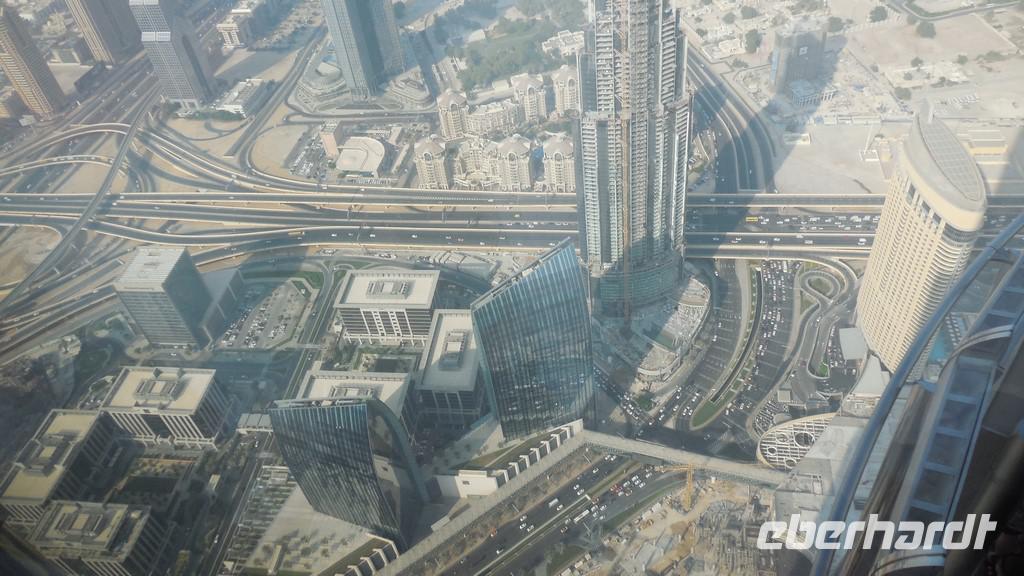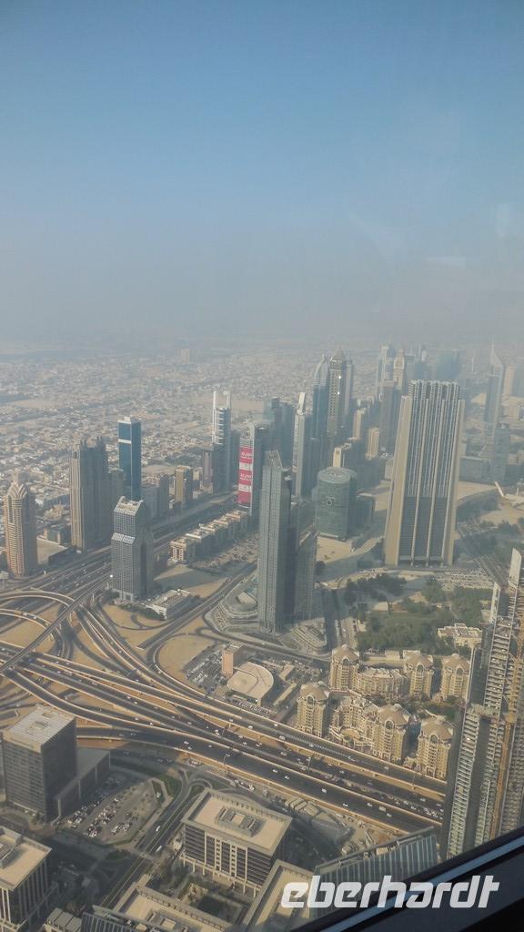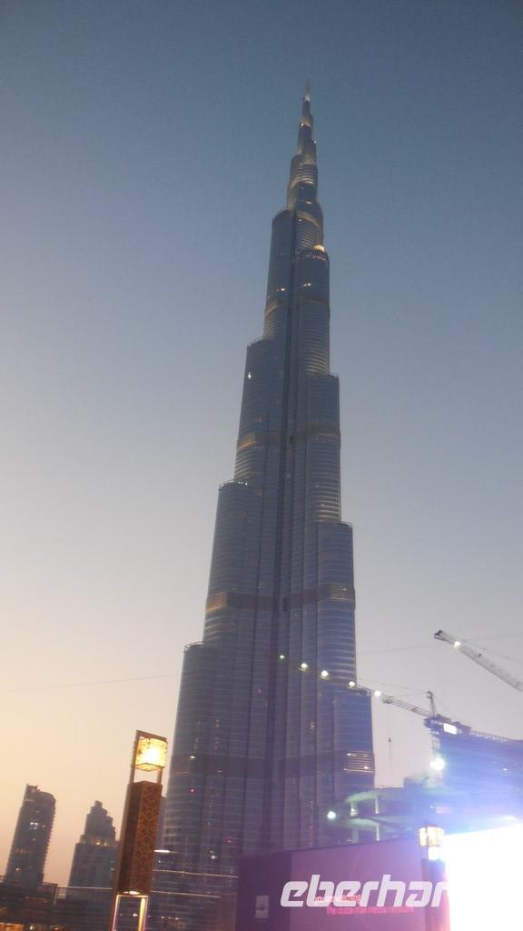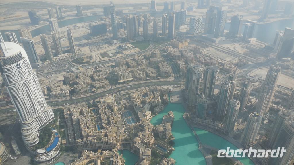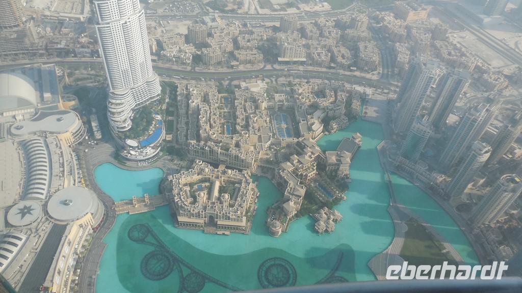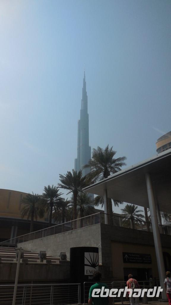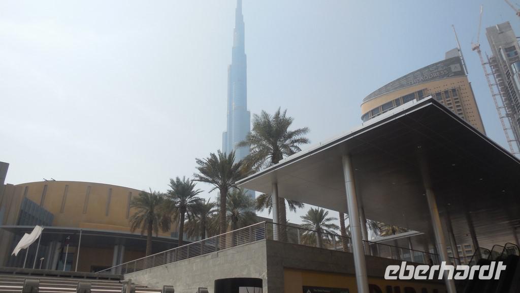 Der Bus wartete bereits auf uns und brachte uns zum nächsten Highlight der Dubai Mall. Das rießige Einkaufszentrum, mit mehr als 1200 Geschäften, hatte natürlich noch mehr zu bieten. Wir hatten Glück und konnten als erstes die Wasserspiele genießen. Auch eine Eislaufbahn gab es. Dann gab es ein kleines Mittagessen. Für 15.00 Uhr hatten wir die Tickets für den Burj Khalifa. Er zählt als höchstes Gebäude der Welt, mit seinen 828 m. Er ist auch das Wahrzeichen Dubais. Durch den Sicherheitsbereich gelangte man zum Lift. Der sauste mit 10 m pro Sekunde in die Höhe. Wir waren also in einer Minute in der 124 Etage, oder auf 442 m Höhe. Wir genossen den super tollen Blick auf die Stadt. Die große Plattform ist verglast und so kann man alles sehen. Vor allen von dem offenen Bereich wirkte alles noch besser. Eine Stunde blieben wir oben. Dann ging es mit dem schnellen Lift wieder nach unten.
