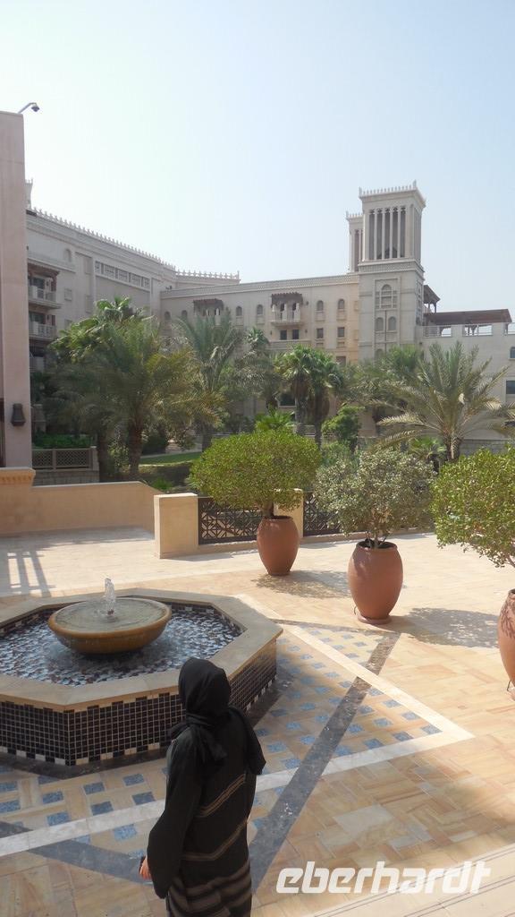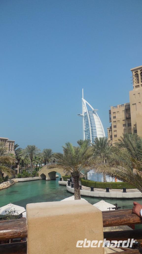 Um 9 gab es ein kleines Frühstück, da wir uns schon auf das Mittagessen freuten. Man konnte den Tag frei gestalten, oder mit dem Bus zum Madinat Souk fahren. Dieser kleine Markt, war sehr niedlich, im Vergleich zu den großen Malls. Aber durch seinen arabischen Stil und vor allen durch seinen super Blick auf das „Burj al Arab" unvergleichbar.