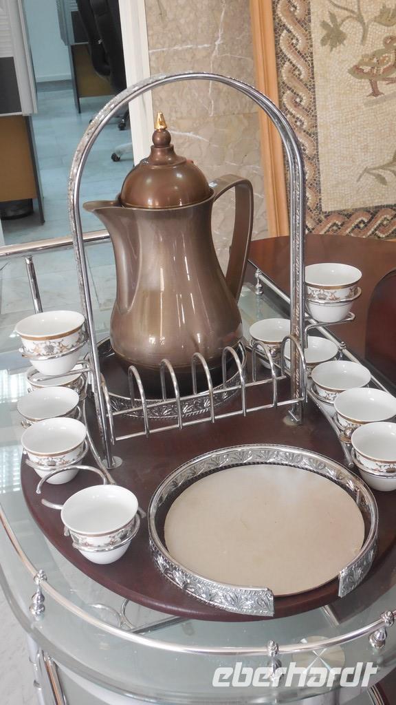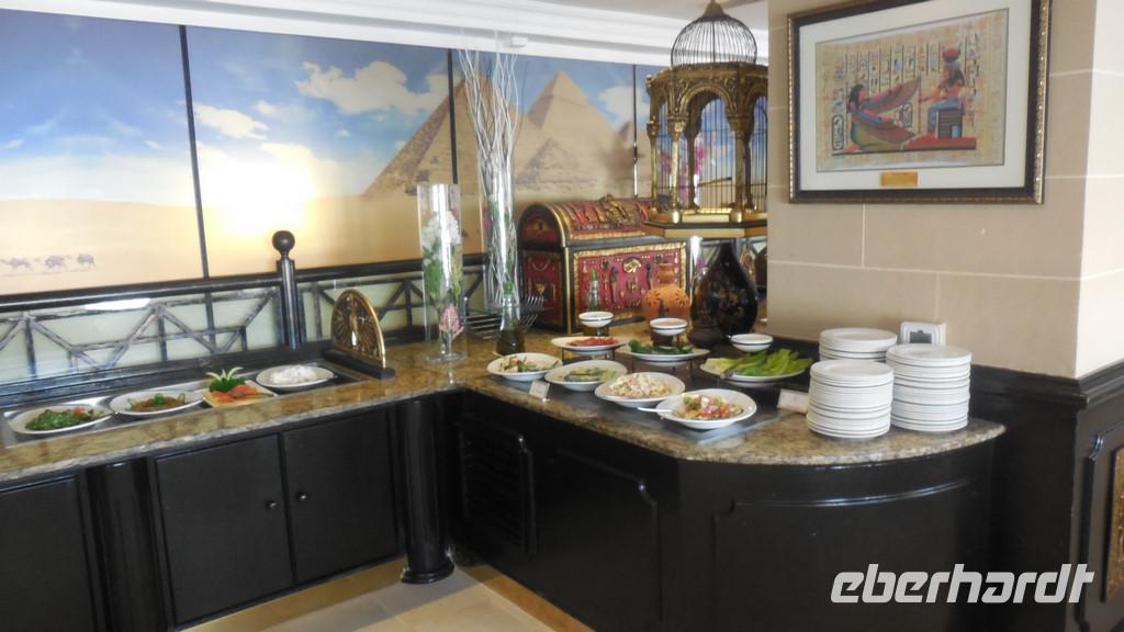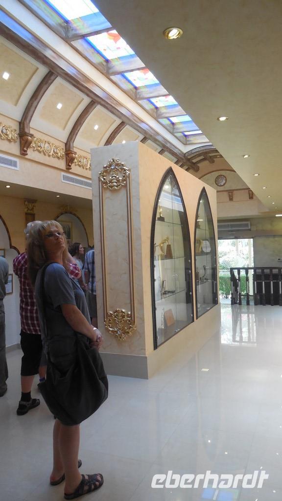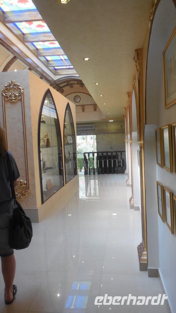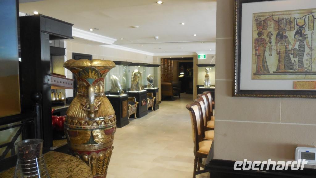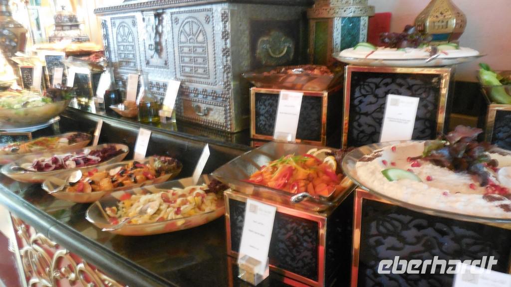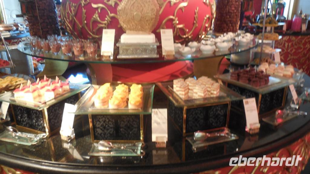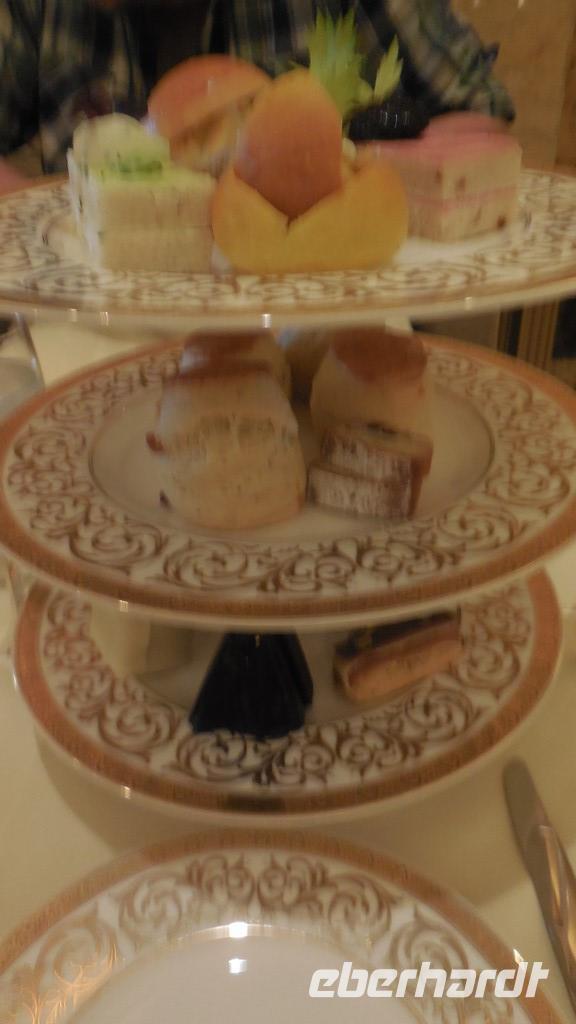 Wir werden zu unseren Tischen geführt und köstlich bewirtet. Es gibt leckere herzhafte und süße Köstlichkeiten. Dann erkunden wir noch etwas das Hotel.