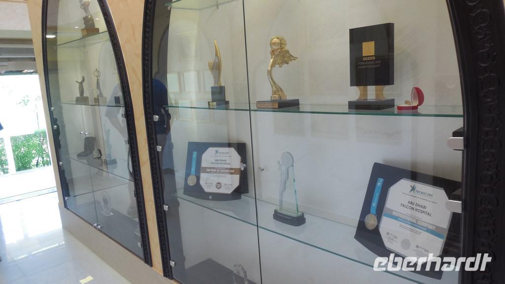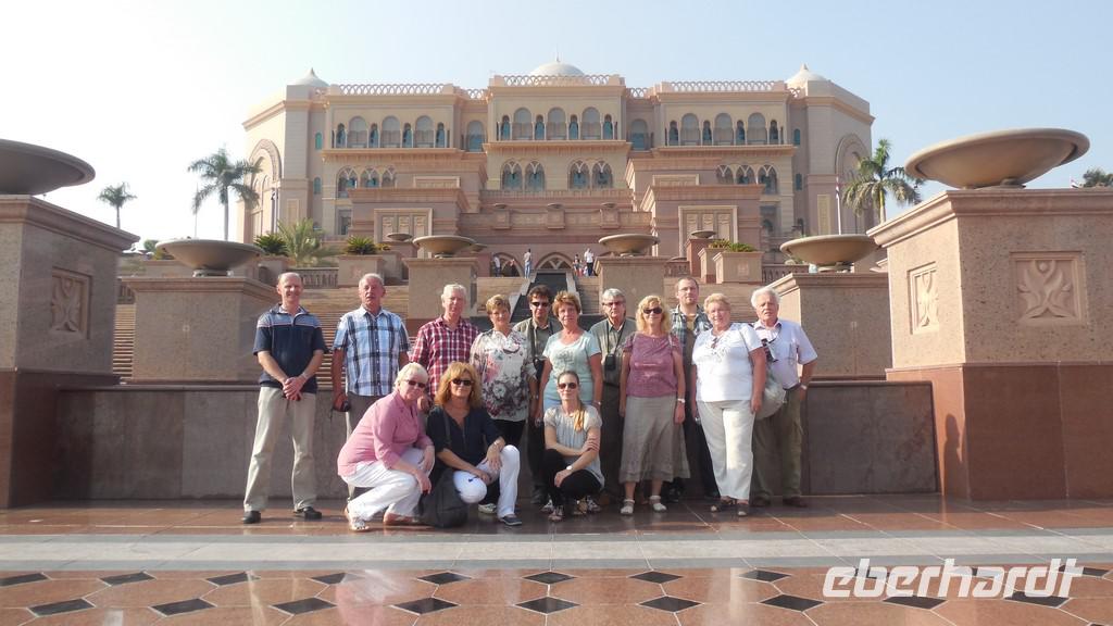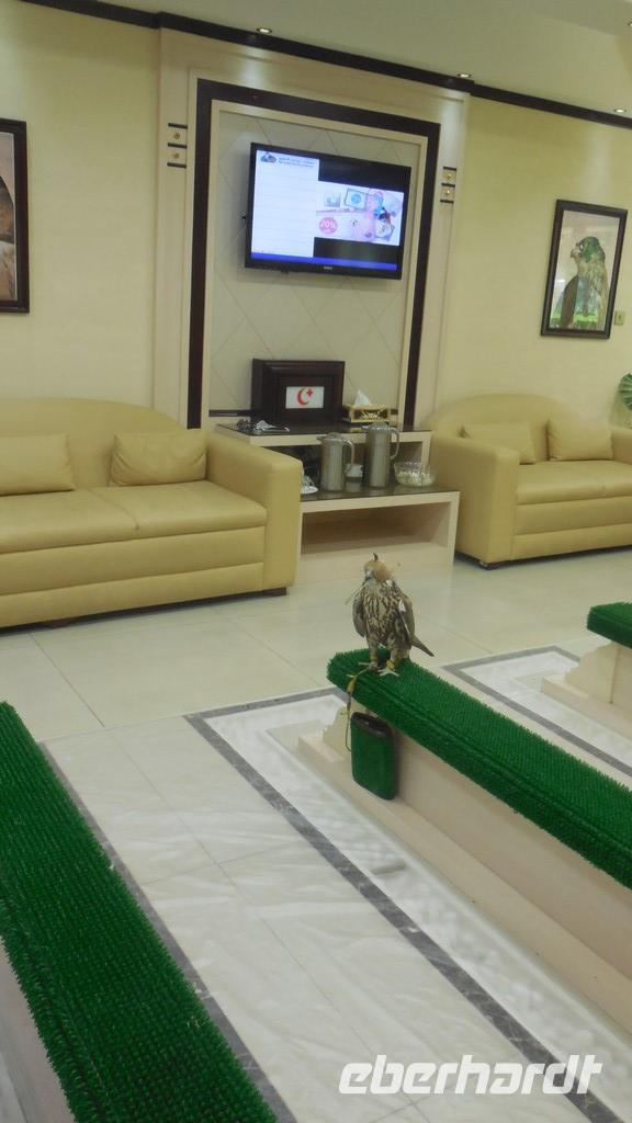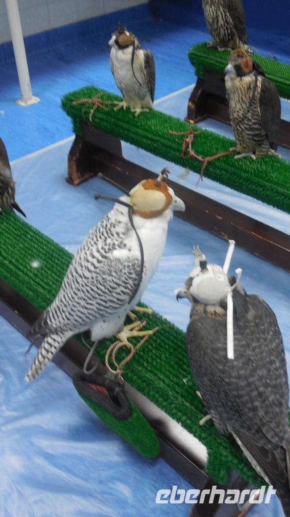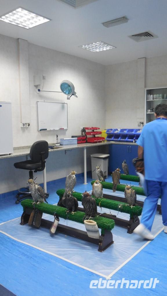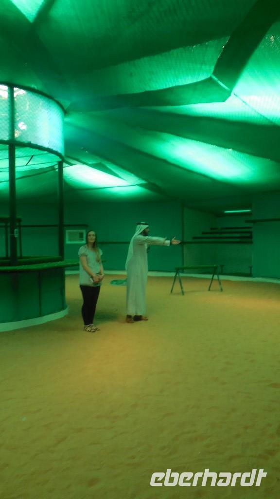 Bereits um 7 gab es Frühstück. Aber da wir ja sowieso um 5 den "Weckruf" hörten, war es nicht schlimm. Heute stand Abu Dhabi, die Hauptstadt der Vereinigten Emirate auf dem Programm. Anja erzählte uns auf der Fahrt sehr viel über die Geschichte, auch wie die Emirates entstanden sind und wie reich Abu Dhabi an Öl ist. Man sieht zwar keine Grenze, zum anderen Emirat, merkt aber sehr schnell dass man über die Grenze ist. Vor allen an dem vielen „Grün" und den Straßenlampen. Wir besuchten als erstes die berühmte Falkenklinik, von Frau Dr. Müller. Das große Gelände, der vornehme Eingangsbereich und die vielen Angestellten, zeigte uns schon, dass diese Tiere, hier etwas ganz besonderes sind. Mehrere Scheichs waren mit ihren Falken da. Insgesamt werden hier täglich 80 -100 behandelt. Wir lernten sehr viel über diese edlen Tiere, die schon mal den Preis eines Kleinwagens haben, bis nach oben offen... Die modernen Behandlungsräume, der Röntgen- oder OP-Saal, alles vom feinsten. Wir sehen wie die Krallen geschnitten werden, damit sich die Tiere nicht verletzen . Es können auch die Federn repariert werden. Viele werden aber auch untersucht, wenn sie neu sind und werden gechipt. Wir sehen auch einen großen Raum, dort „erleben" die Falken die Mauser. Frau Dr. Müller hat bereits viele Preise erhalten.