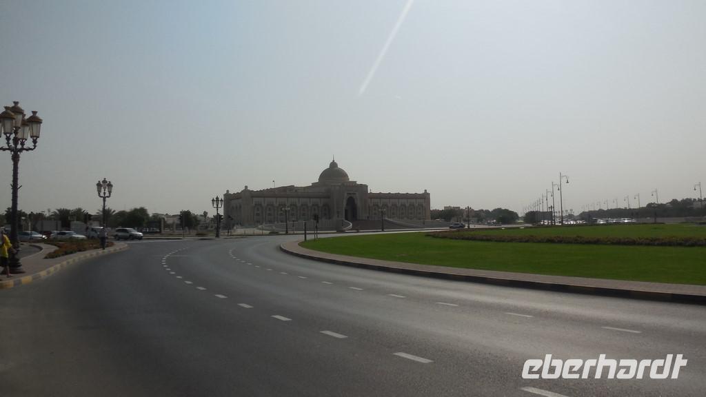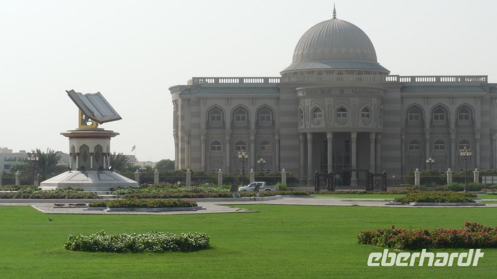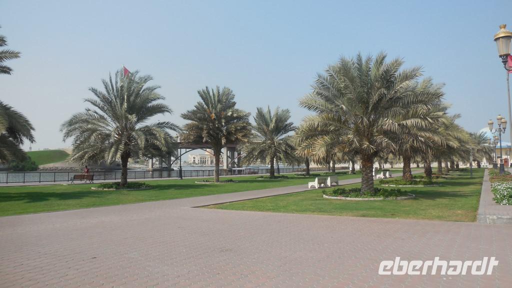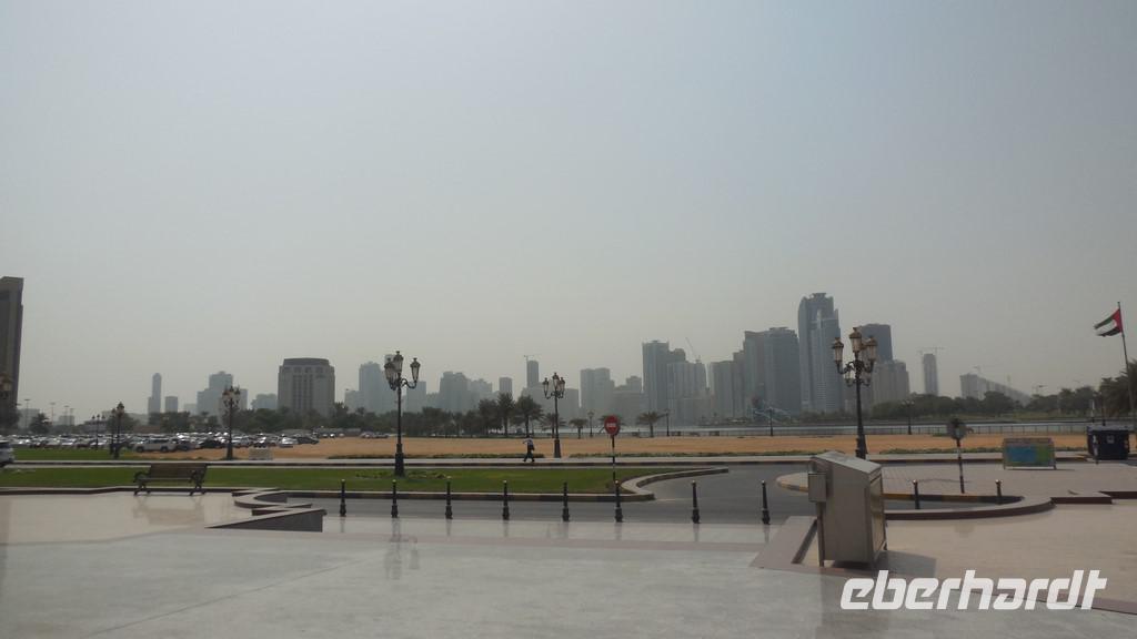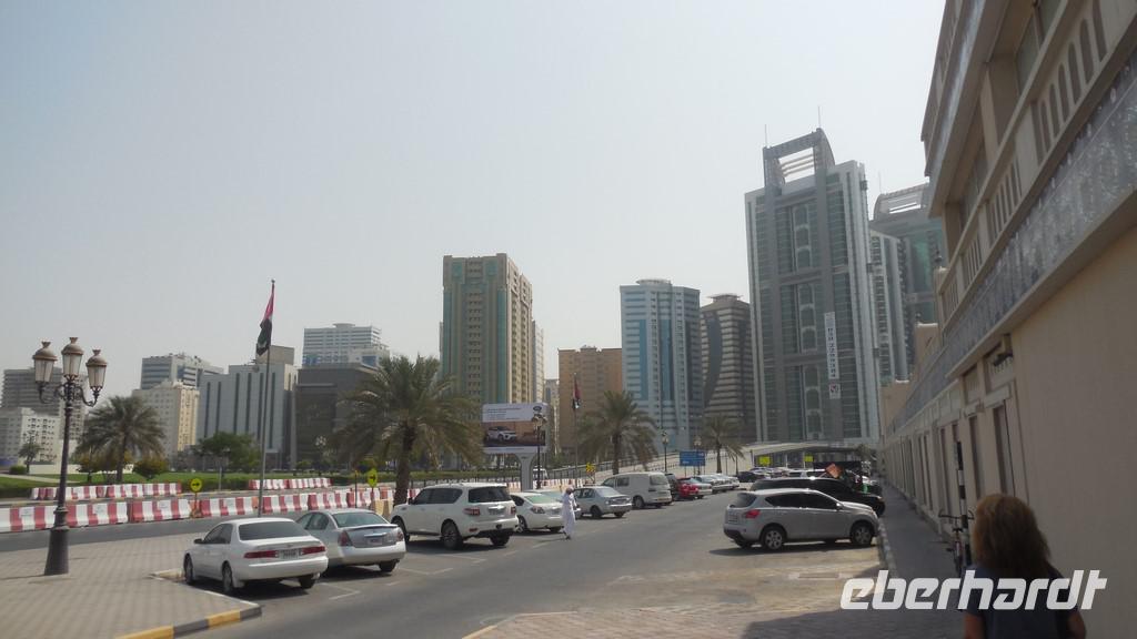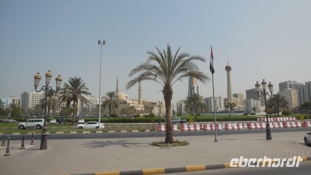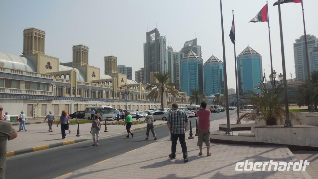 Um 8 treffen wir uns zum Frühstück und um 9 ist Abfahrt mit dem Bus. Anja erzählt uns auf der Fahrt wieder sehr viel Interessantes. Sharjah ist das drittgrößte Emirat. Hier ist alles sehr sehr streng. Hier wird die Scharia, das islamische Recht noch durchgesetzt. Alkohol ist streng verboten.