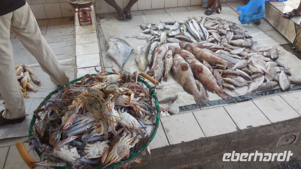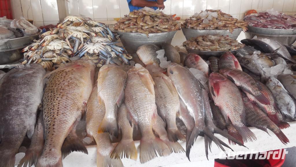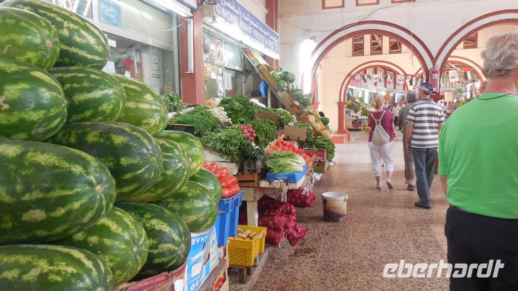 Wir besuchten den Fischmarkt, wo unzählige verschiedene Fische angeboten werden. Dann bummelten wir noch über den Gemüsemarkt. Anschließend besuchten wir den Blauen Souk. Das Einkaufszentrum ist etwas kleiner, aber durch die vielen blauen Fliesen, sehr schön.