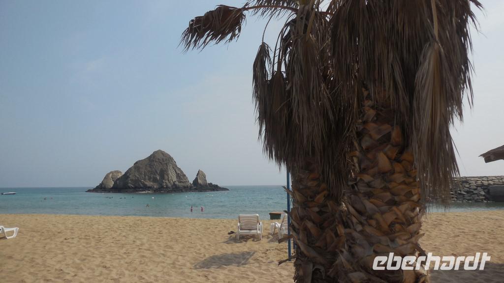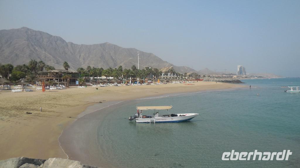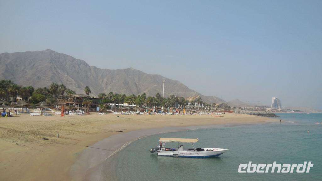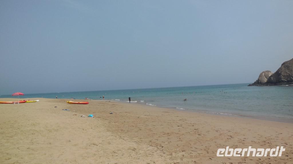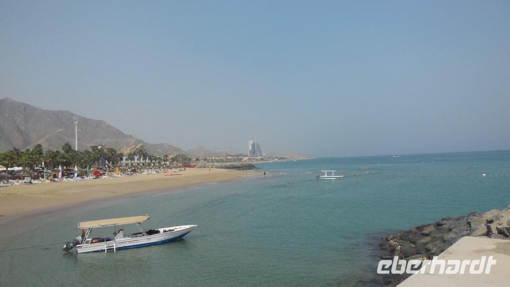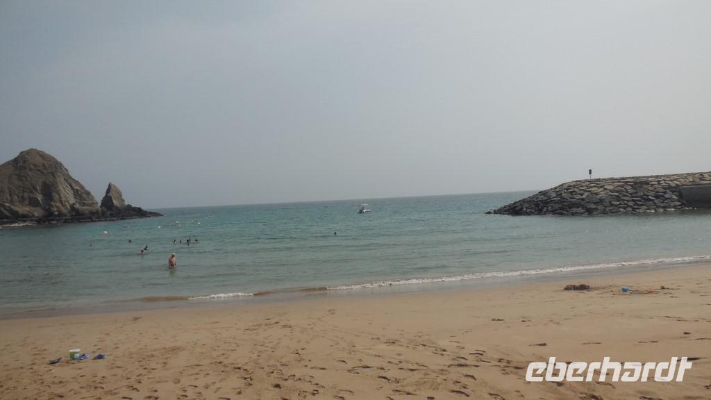 8.00 Uhr gibt es Frühstück. Später werden wir von Anja und dem Bus abgeholt. Wir fahren in das Hajar Gebirge. Einen kleinen Stopp gibt es aber noch in Masafi, wir besuchen den Straßenmarkt. Hier decken sich die Leute ein, mit allem was sie am Strand brauchen. Wir staunen über die hohen Berge. Die hätte hier keiner erwartet. Wir fahren an der Grenze zum Oman lang. Wir sehen die älteste Moschee der Emirate. Im Sandy Beach Hotel können wir den Nachmittag verbringen. Wir schwammen in dem warmen klaren Wasser, entspannten auf den Liegen und konnten zu Mittag essen. Leider ging es viel zu früh zurück.