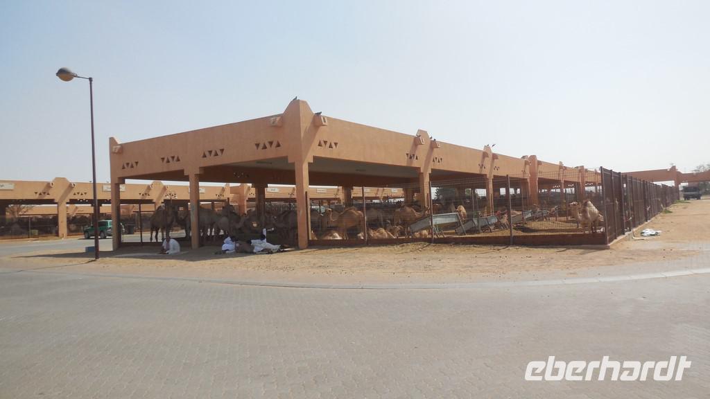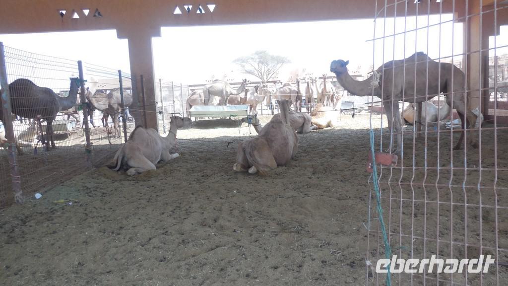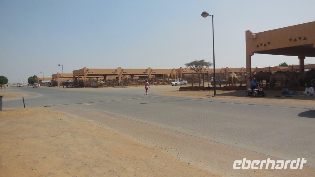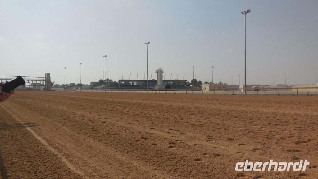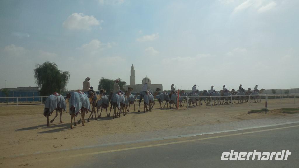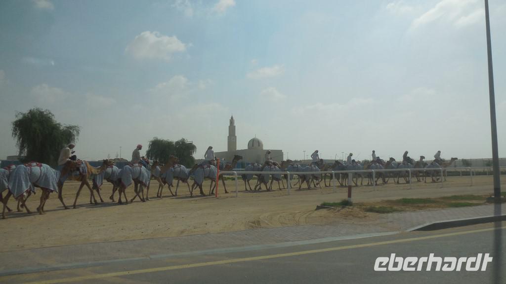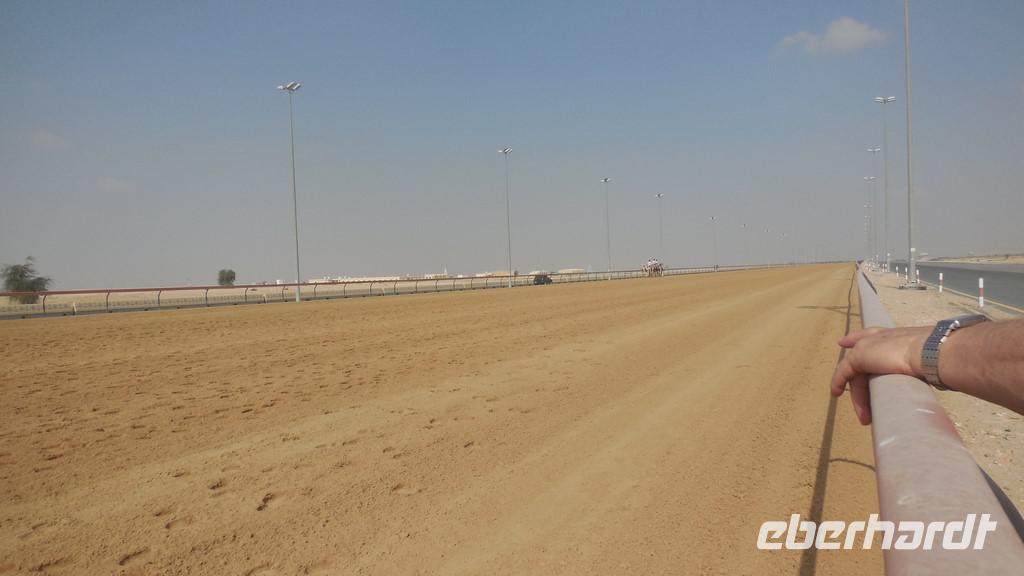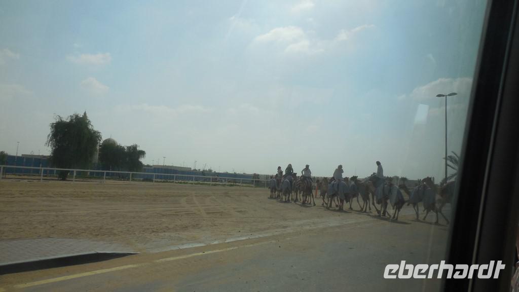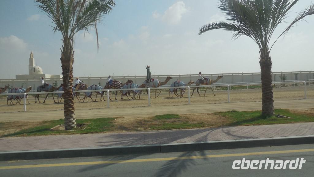 Unser 1. Stopp war die Kamelrennstrecke. Wir erfuhren, dass die Jockeys von kleinen Puppen ersetzt wurden. Wir hatten Glück und konnten ein paar beim Training zusehen. Das Gelände ist riesengroß.