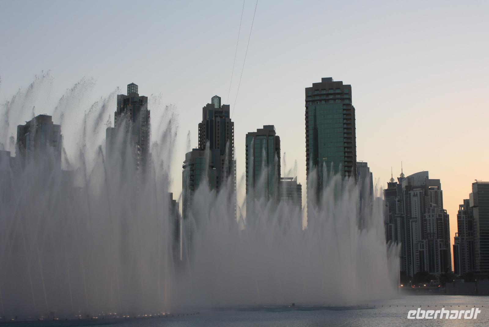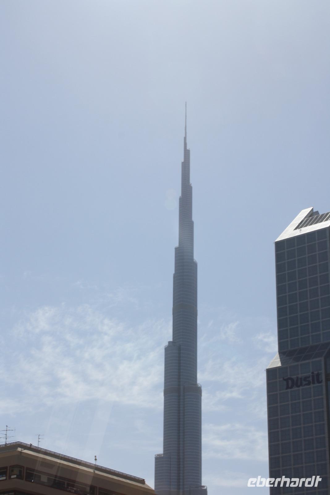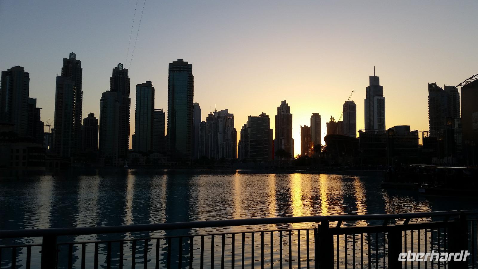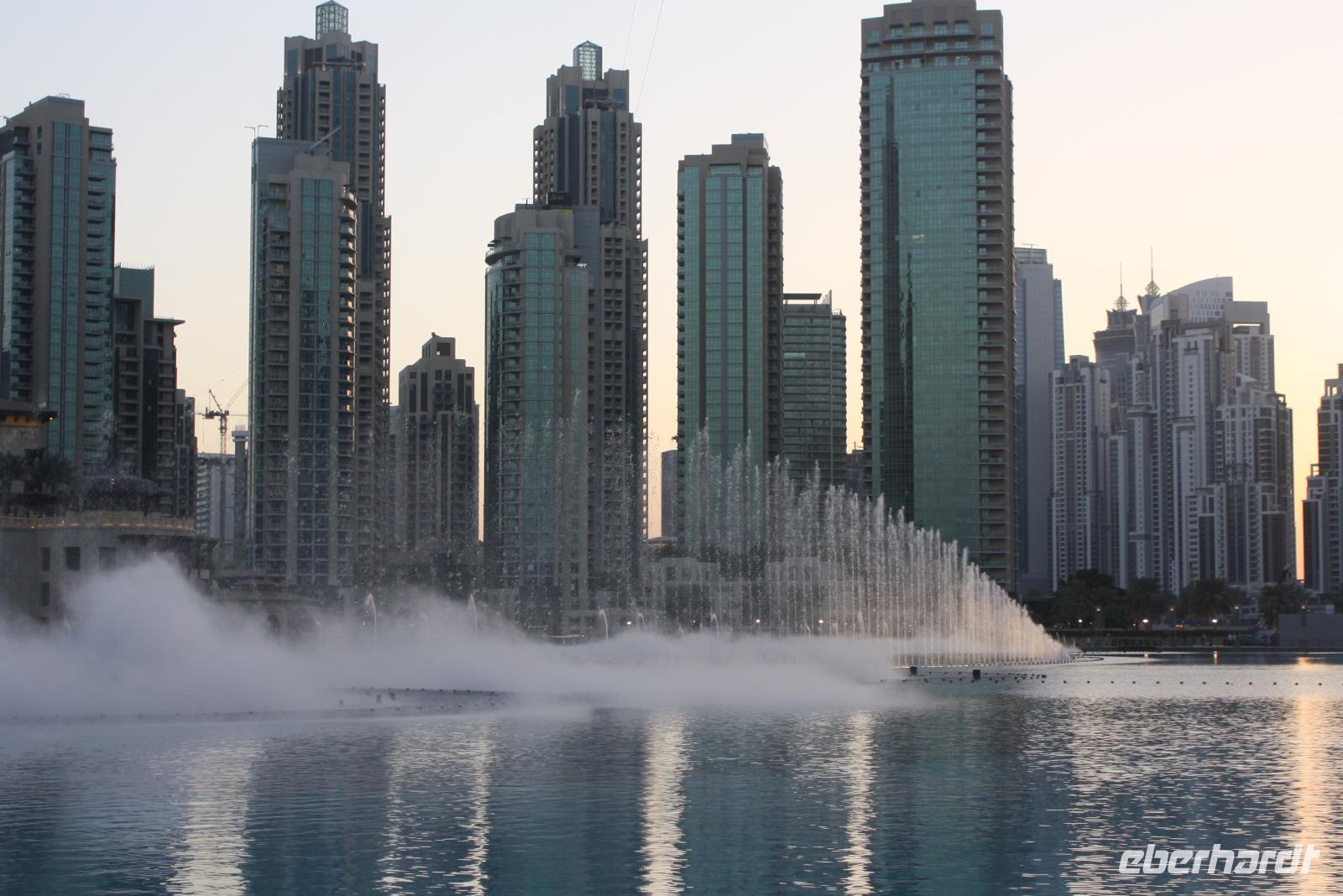 Nachdem uns der Muezzin mehrfach weckt, genießen wir unser Frühstück und freuen uns auf den bevorstehenden Tag in Dubai. Gemeinsam gehen wir mit Anja zum gegenüberliegenden Dubai-Museum. Wir lernen etwas über das traditionelle Dubai sowie die rasante Entwicklung der letzten Jahrzehnte. Danach spazieren wir gemütlich hinunter zum Dubai Creek, einem natürlichem Meeresarm des Persisch-Arabischen Golfes. Von hier aus setzen wir mit dem Wassertaxi hinüber zum anderen Ufer, um dort den Gewürz- und Goldsouk zu besuchen. Auf dem Gold-Souk bestaunen wir den weltgrößten Goldring in einem der zahlreichen Schaufenster. Nach einem kurzen Spaziergang erreichen wir unseren Bus, welcher uns nun zur Dubai Mall chauffiert. Dort angekommen, können wir uns in einer der zahlreichen Restaurants und Cafés stärken. Neben der Dubai Mall befindet sich gleich das höchste Gebäude der Welt, der "Burj Khalifa". Das 828 Meter hohe Gebäude beherbergt ein Hotel, Restaurants, Büros, Aussichtsplattformen und einige Appartements. Namensgeber des Gebäudes ist Scheich Khalifa, welcher den Bau des Gebäudes finanziell unterstützte. Für den Bau benötigte man circa 330.000 Kubikmeter Beton und Stahl. Mit dem schnellsten Fahrstuhl der Welt erreichen wir nach knapp einer Minute Fahrzeit den 124. Stock, in welchem sich die höchste Aussichtsplattform befindet. Von hier aus bestaunen wir die atemberaubende Skyline, den Persischen Golf und den Blick in die Wüste von oben. Unten wieder angekommen, zeigt uns Anja noch das Aquarium sowie den Unterwasser-Zoo. Den Rest des Nachmittags verbringen wir individuell in der Dubai Mall. Um 18:00 Uhr sehen wir noch die Wasserspiele am Fuße des Burj Khalifa. Die orientalisch geprägte, musikalische Untermalung sorgt für eine einzigartige Atmosphäre, während die Sonne langsam hinter der Skyline Dubais verschwindet. Im Anschluss fahren wir zu den Twin Towers, um gemeinsam ein iranisch-persisches Abendessen zu genießen. Mit vielen neuen Eindrücken begeben wir uns zurück zum Hotel.