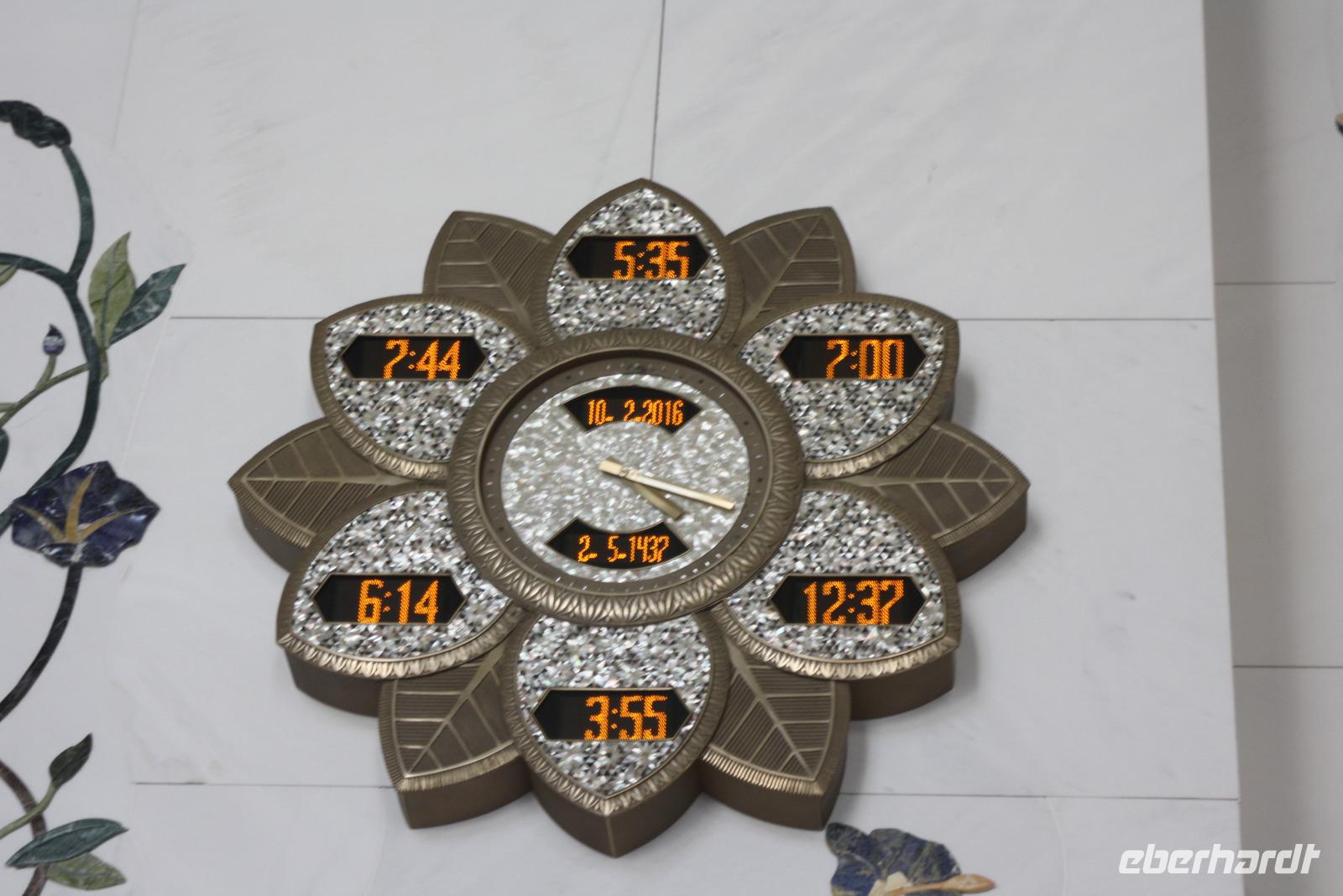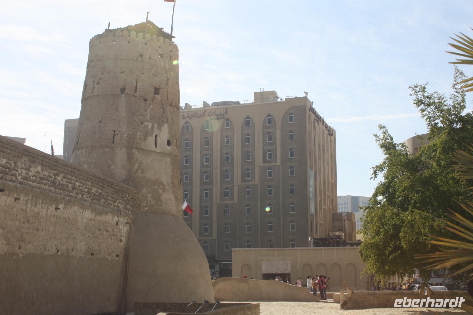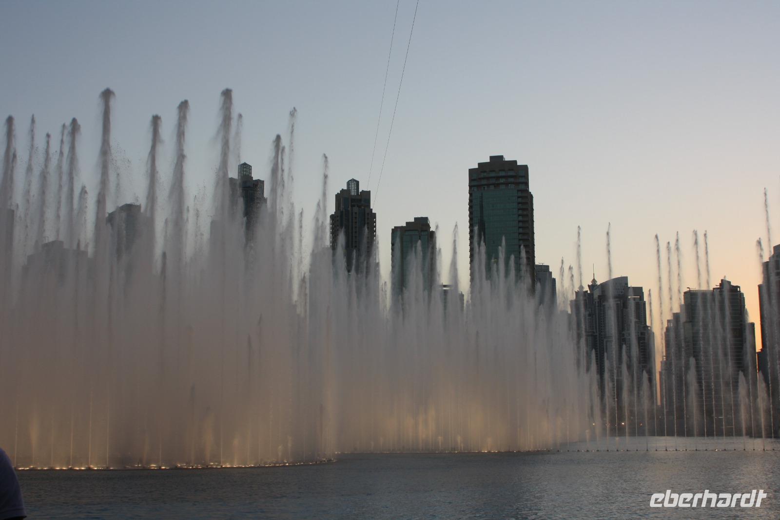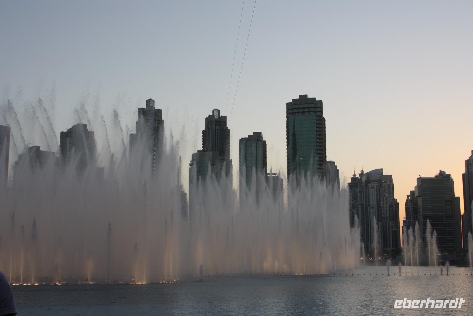 Nachdem uns der Muezzin mehrfach weckt, genießen wir unser Frühstück und freuen uns auf den bevorstehenden Tag in Dubai. Gemeinsam gehen wir mit Anja zum gegenüberliegenden Dubai-Museum. Wir lernen etwas über das traditionelle Dubai sowie die rasante Entwicklung der letzten Jahrzehnte. Danach spazieren wir gemütlich hinunter zum Dubai Creek, einem natürlichem Meeresarm des Persisch-Arabischen Golfes. Von hier aus setzen wir mit dem Wassertaxi hinüber zum anderen Ufer, um dort den Gewürz- und Goldsouk zu besuchen. Auf dem Gold-Souk bestaunen wir den weltgrößten Goldring in einem der zahlreichen Schaufenster. Nach einem kurzen Spaziergang erreichen wir unseren Bus, welcher uns nun zur Dubai Mall chauffiert. Dort angekommen, können wir uns in einer der zahlreichen Restaurants und Cafés stärken. Neben der Dubai Mall befindet sich gleich das höchste Gebäude der Welt, der "Burj Khalifa". Das 828 Meter hohe Gebäude beherbergt ein Hotel, Restaurants, Büros, Aussichtsplattformen und einige Appartements. Namensgeber des Gebäudes ist Scheich Khalifa, welcher den Bau des Gebäudes finanziell unterstützte. Für den Bau benötigte man circa 330.000 Kubikmeter Beton und Stahl. Mit dem schnellsten Fahrstuhl der Welt erreichen wir nach knapp einer Minute Fahrzeit den 124. Stock, in welchem sich die höchste Aussichtsplattform befindet. Von hier aus bestaunen wir die atemberaubende Skyline, den Persischen Golf und den Blick in die Wüste von oben. Unten wieder angekommen, zeigt uns Anja noch das Aquarium sowie den Unterwasser-Zoo. Den Rest des Nachmittags verbringen wir individuell in der Dubai Mall. Um 18:00 Uhr sehen wir noch die Wasserspiele am Fuße des Burj Khalifa. Die orientalisch geprägte, musikalische Untermalung sorgt für eine einzigartige Atmosphäre, während die Sonne langsam hinter der Skyline Dubais verschwindet. Im Anschluss fahren wir zu den Twin Towers, um gemeinsam ein iranisch-persisches Abendessen zu genießen. Mit vielen neuen Eindrücken begeben wir uns zurück zum Hotel.