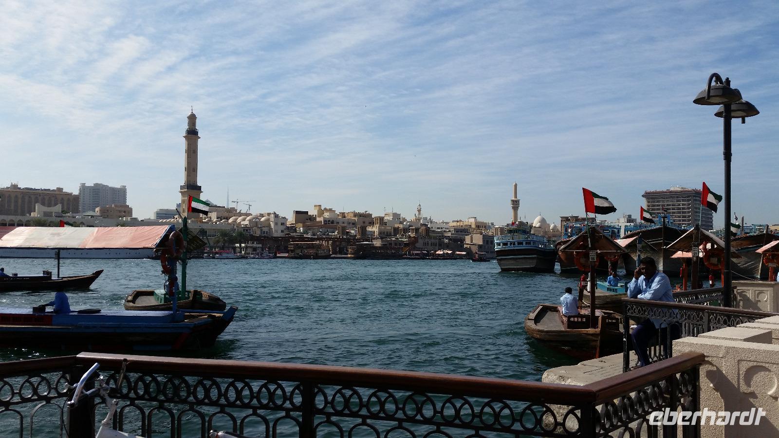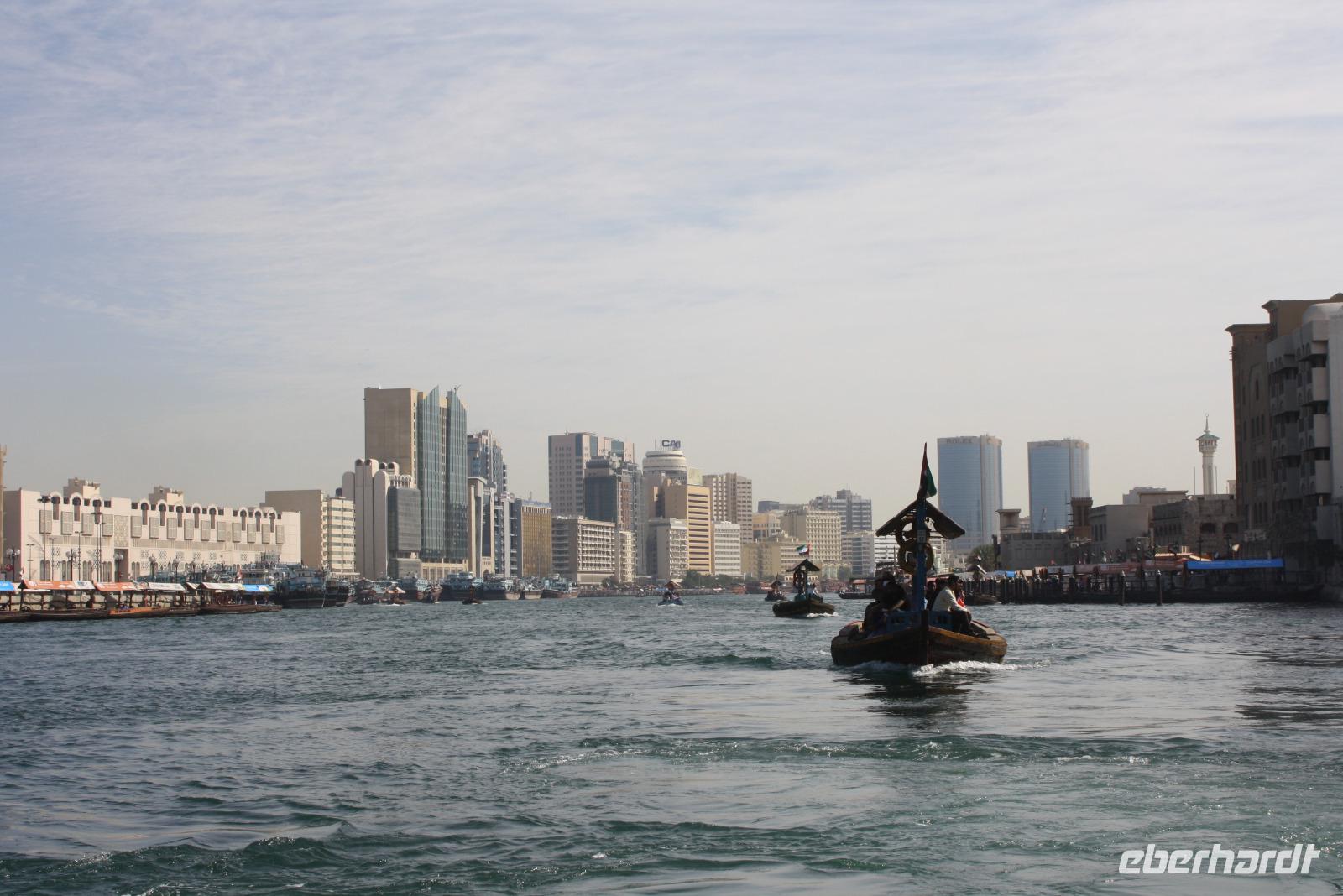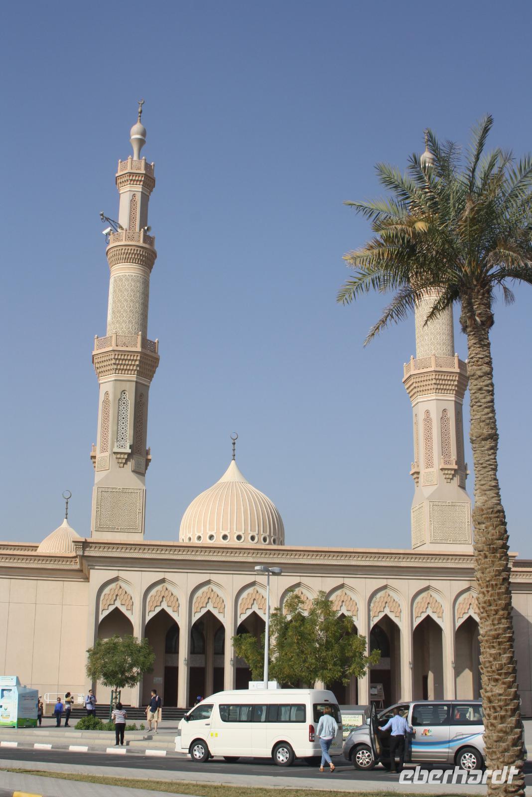 Der heutige Tag steht ganz im Zeichen der Erholung. Wir unternehmen einen Ausflug an die Ostküste der Emirate an den Golf von Oman. Auf dem Weg dort hin machen wir noch einen kleinen Halt am Friday Market, wo verschiedene Händler Teppiche sowie Obst und Gemüse anbieten. Nach einer kurzen Stärkung fahren wir weiter durch das Hajar-Gebirge an die Ostküste. Doch bevor wir uns im Sandy Beach Hotel niederlassen, fahren wir noch nach Bidiyah, wo wir die älteste Moschee der Welt sehen können. Im Anschluss fahren wir zum Hotel und haben nun reichlich Zeit, bei purem Sonnenschein am Strand zu entspannen. Bei 30 Grad Lufttemperatur und 21 Grad Wassertemperatur haben wir ideale Voraussetzungen, um uns im Golf von Oman abzukühlen. Unser Mittagessen nehmen wir auch im Sandy Beach Hotel zu uns. Circa 15 Uhr heißt es leider Abschied nehmen und wir fahren zurück nach Dubai zum Hotel. Den Abend lässt der Großteil unserer Gruppe bei einem Abendessen auf einer Dhau auf dem Dubai Creek ausklingen. Circa 2 Stunden lang schippern wir den Meeresarm rauf und runter und lassen uns die regionalen Köstlichkeiten schmecken.