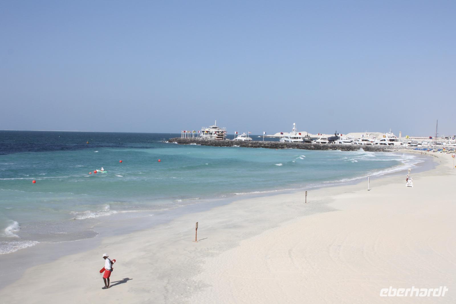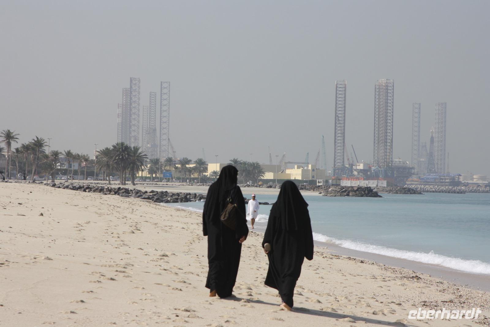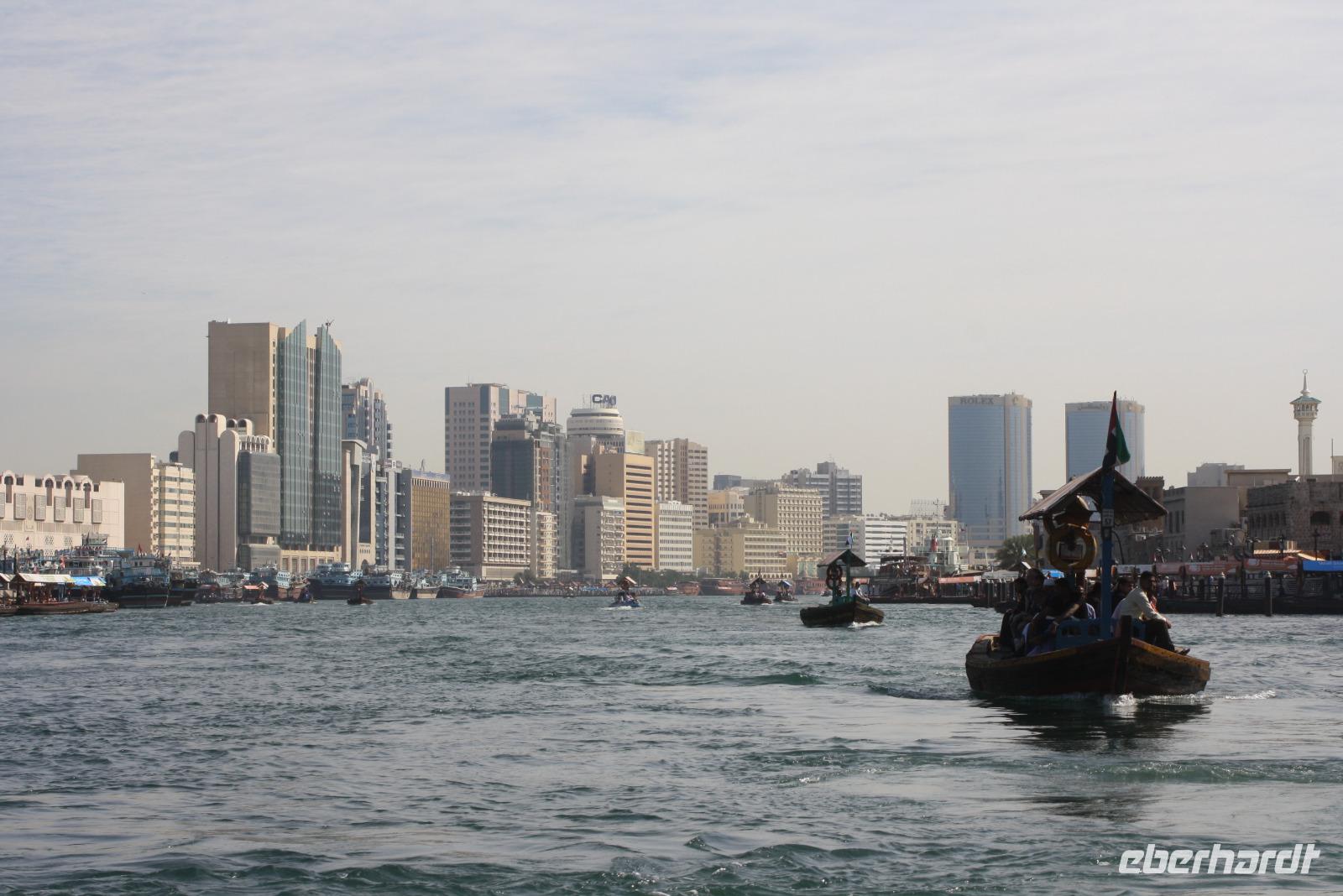 Der heutige Tag steht ganz im Zeichen der Erholung. Wir unternehmen einen Ausflug an die Ostküste der Emirate an den Golf von Oman. Auf dem Weg dort hin machen wir noch einen kleinen Halt am Friday Market, wo verschiedene Händler Teppiche sowie Obst und Gemüse anbieten. Nach einer kurzen Stärkung fahren wir weiter durch das Hajar-Gebirge an die Ostküste. Doch bevor wir uns im Sandy Beach Hotel niederlassen, fahren wir noch nach Bidiyah, wo wir die älteste Moschee der Welt sehen können. Im Anschluss fahren wir zum Hotel und haben nun reichlich Zeit, bei purem Sonnenschein am Strand zu entspannen. Bei 30 Grad Lufttemperatur und 21 Grad Wassertemperatur haben wir ideale Voraussetzungen, um uns im Golf von Oman abzukühlen. Unser Mittagessen nehmen wir auch im Sandy Beach Hotel zu uns. Circa 15 Uhr heißt es leider Abschied nehmen und wir fahren zurück nach Dubai zum Hotel. Den Abend lässt der Großteil unserer Gruppe bei einem Abendessen auf einer Dhau auf dem Dubai Creek ausklingen. Circa 2 Stunden lang schippern wir den Meeresarm rauf und runter und lassen uns die regionalen Köstlichkeiten schmecken.