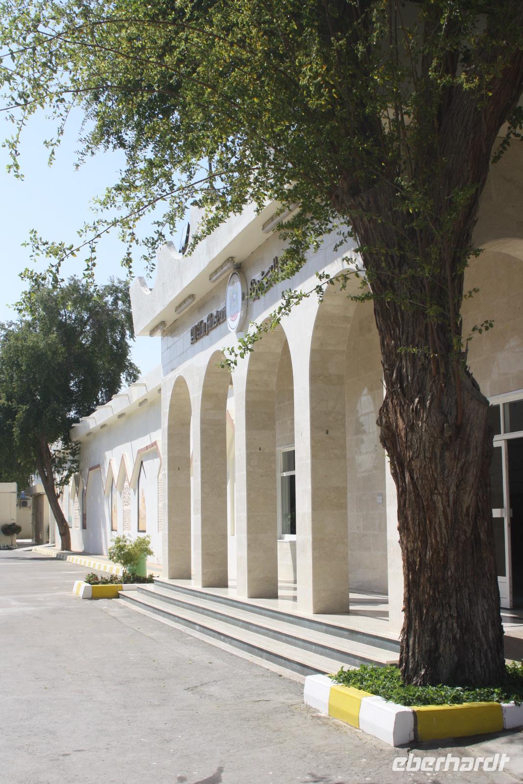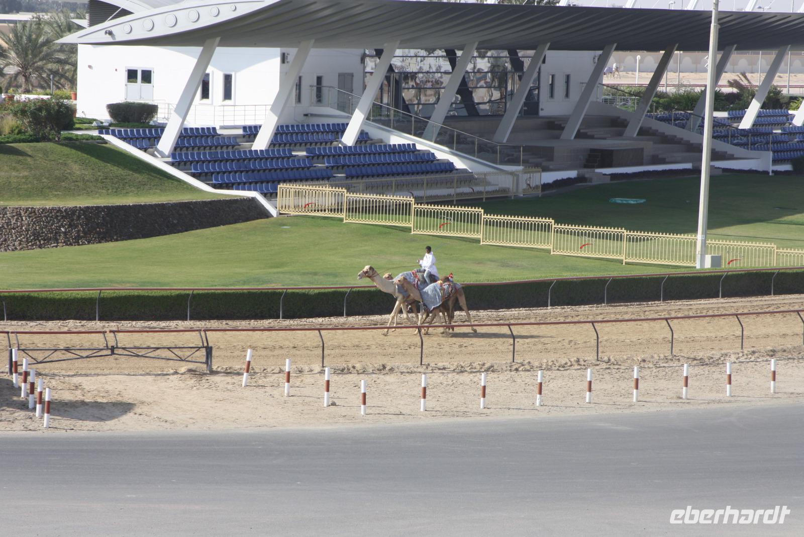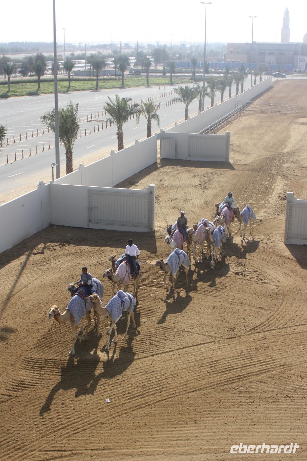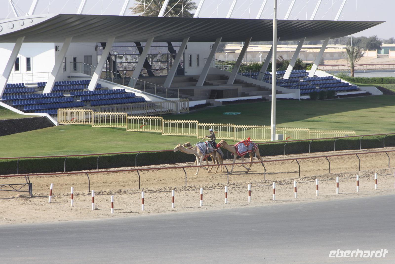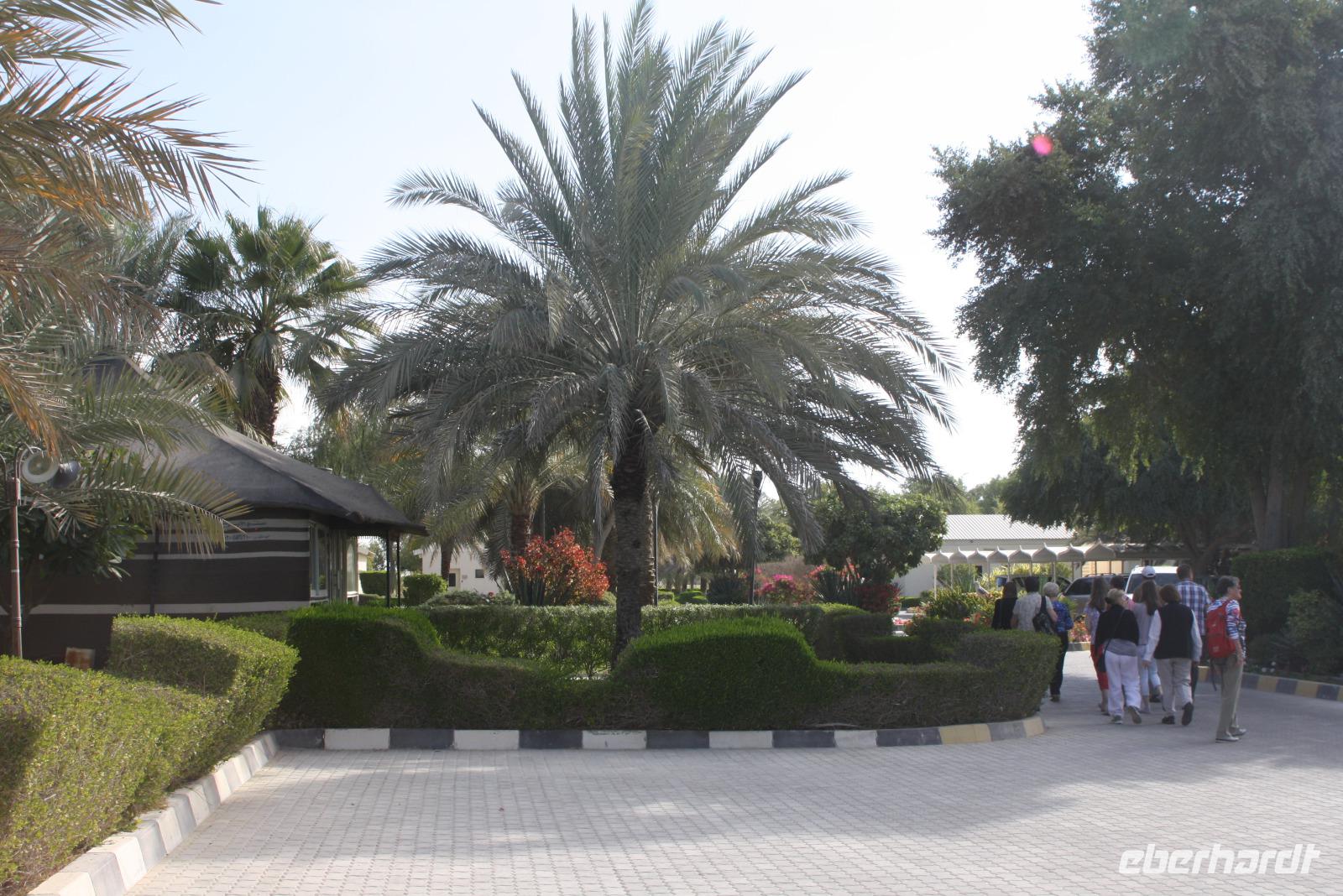 Heute steht uns wieder ein fakultativer Ausflug bevor. Dieser sollte auch der letzte auf unserer Rundreise durch die Emirate sein. Ziel des Ausfluges ist die Oasenstadt Al Ain, direkt an der Grenze zum Oman. Auf dem Weg dort hin zeigt uns Anja noch die Kamel-Rennstrecke. Hier finden fast jedes Wochenende im Winterhalbjahr Kamel-Rennen statt. Glücklicherweise können wir einige Kamelreiter erspähen. Im Anschluss fahren wir weiter nach Al Ain, wo wir das Nationalmuseum sowie die Oase besichtigen. Der „Gärtner" zeigt uns, wie man am besten eine Palme erklimmt, um die Früchte zu ernten.