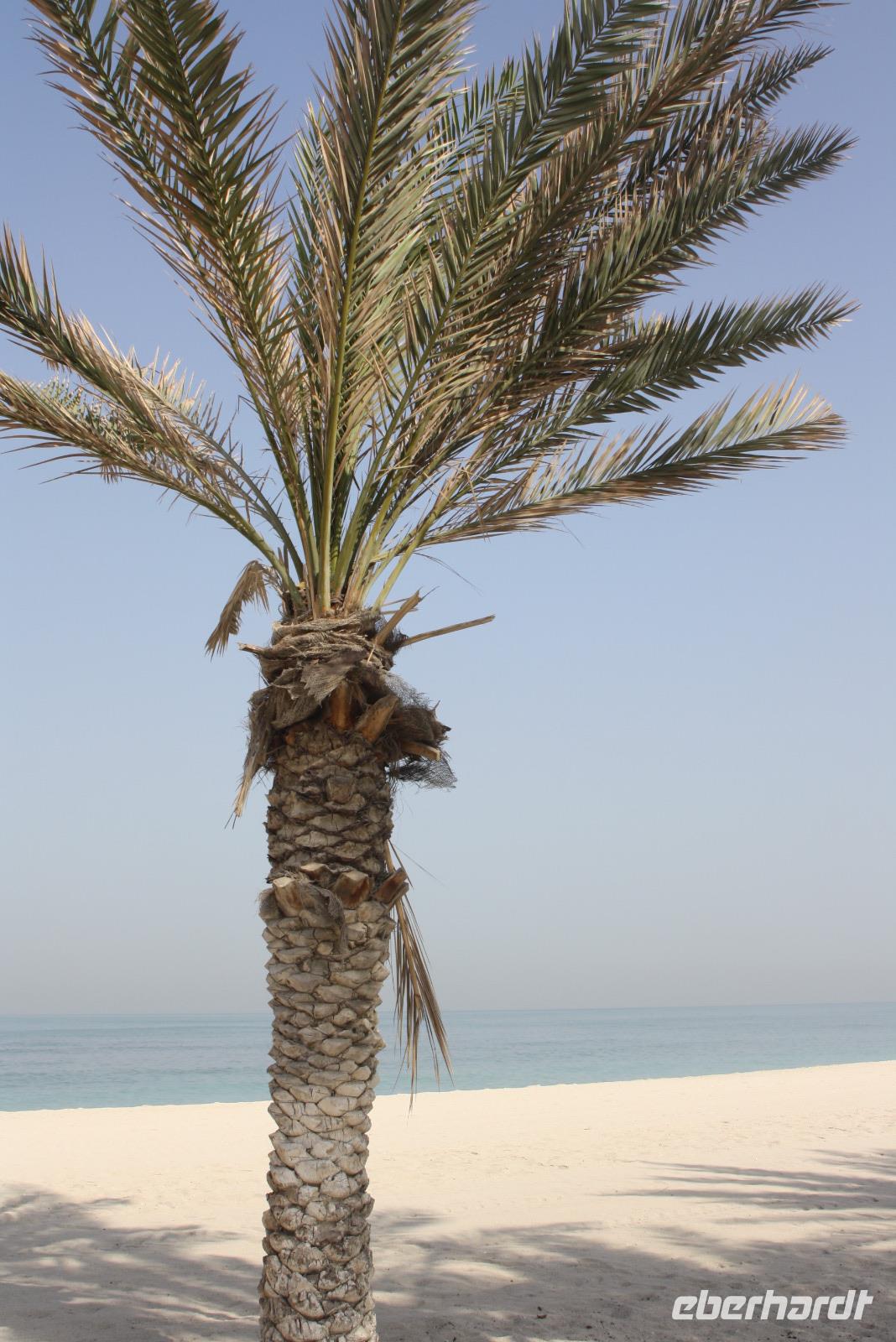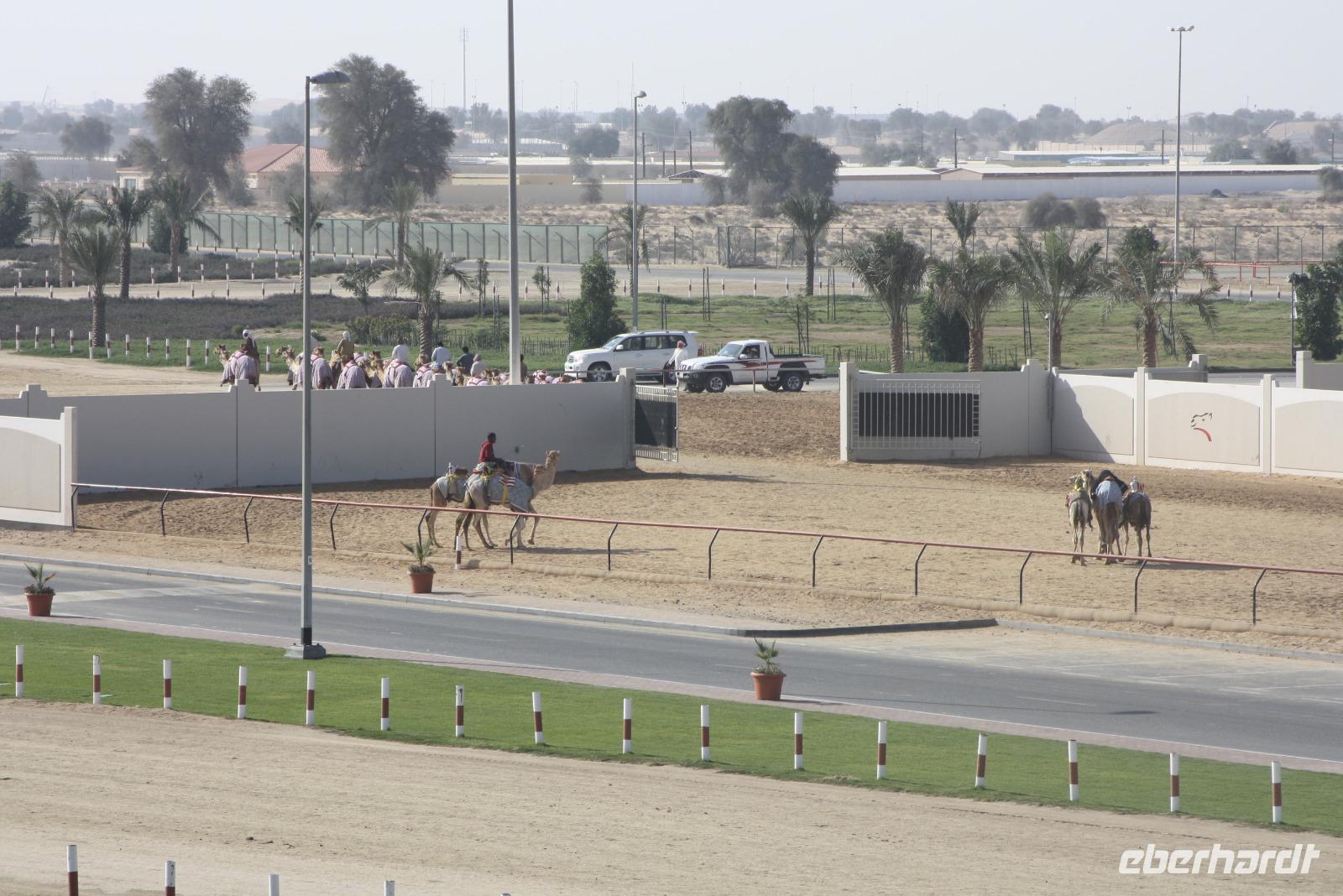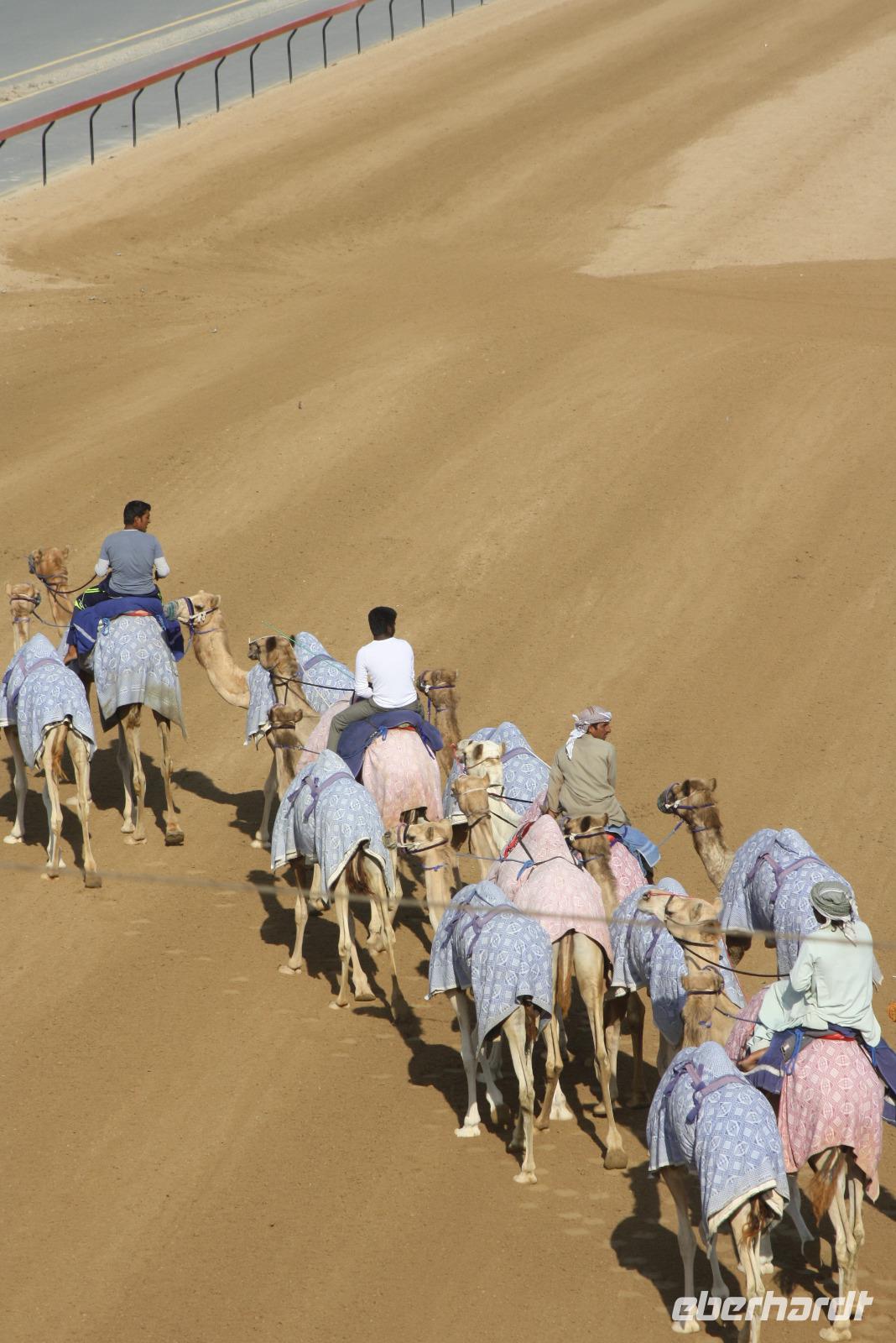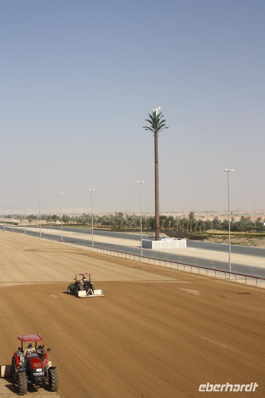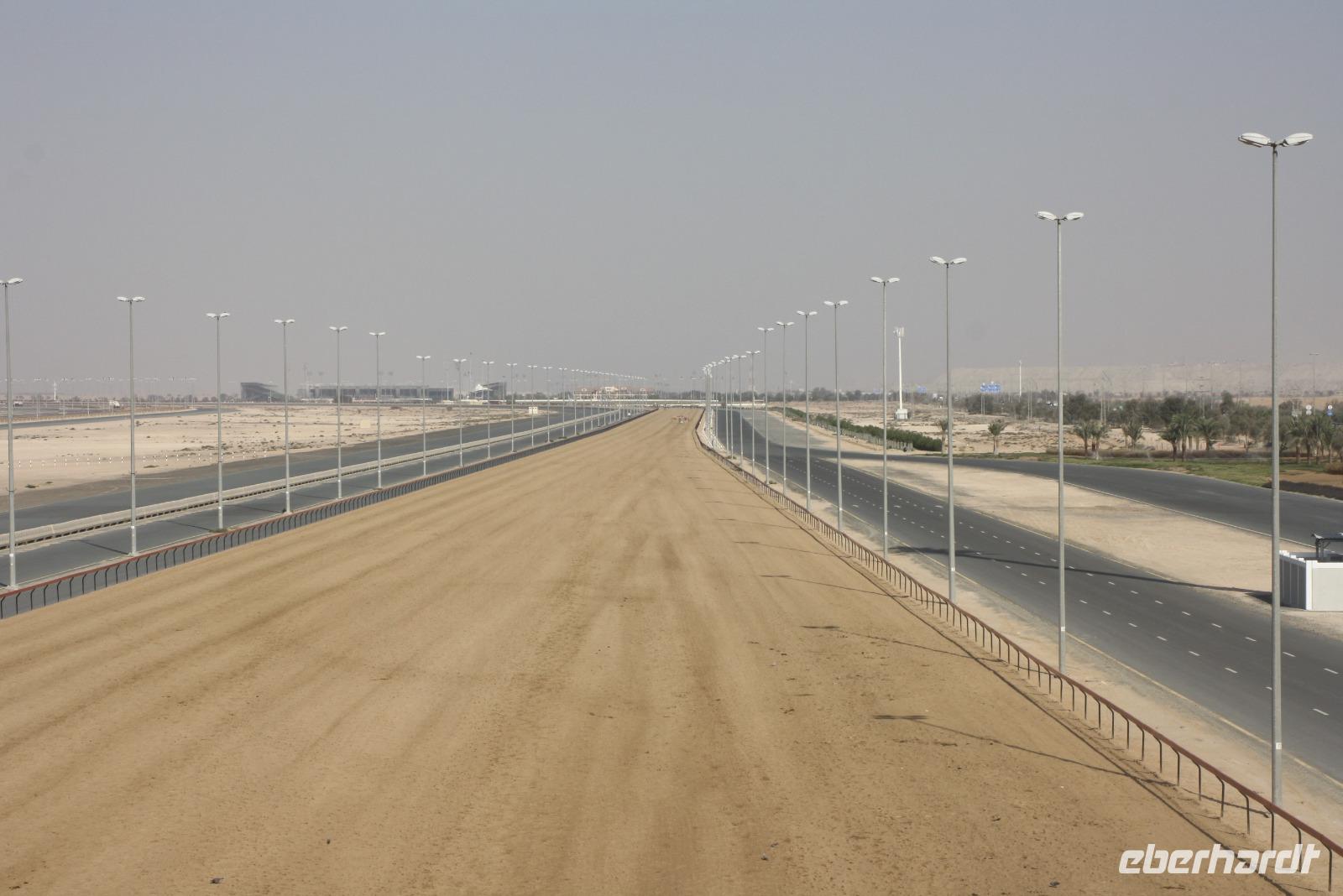 Heute steht uns wieder ein fakultativer Ausflug bevor. Dieser sollte auch der letzte auf unserer Rundreise durch die Emirate sein. Ziel des Ausfluges ist die Oasenstadt Al Ain, direkt an der Grenze zum Oman. Auf dem Weg dort hin zeigt uns Anja noch die Kamel-Rennstrecke. Hier finden fast jedes Wochenende im Winterhalbjahr Kamel-Rennen statt. Glücklicherweise können wir einige Kamelreiter erspähen. Im Anschluss fahren wir weiter nach Al Ain, wo wir das Nationalmuseum sowie die Oase besichtigen. Der „Gärtner" zeigt uns, wie man am besten eine Palme erklimmt, um die Früchte zu ernten.