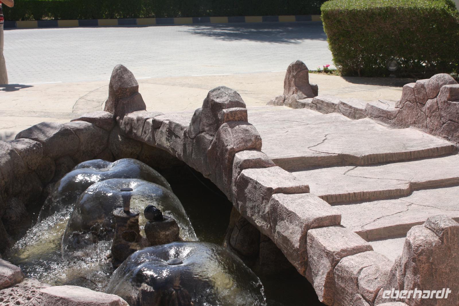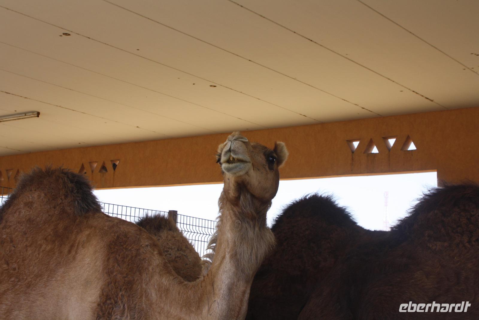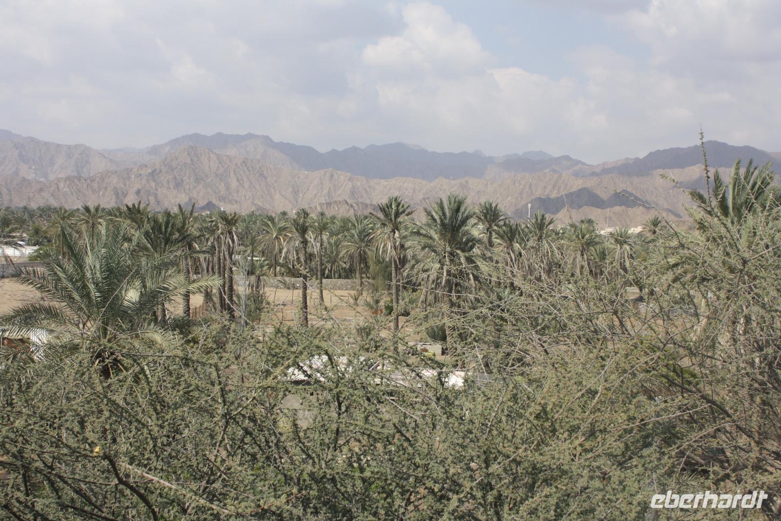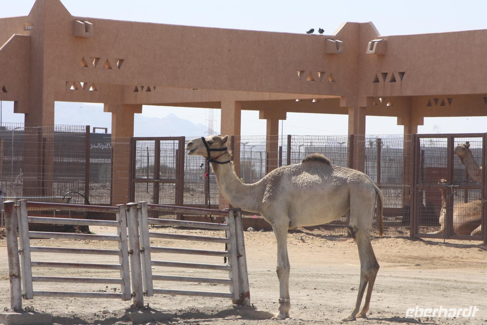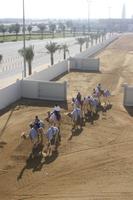 Heute steht uns wieder ein fakultativer Ausflug bevor. Dieser sollte auch der letzte auf unserer Rundreise durch die Emirate sein. Ziel des Ausfluges ist die Oasenstadt Al Ain, direkt an der Grenze zum Oman. Auf dem Weg dort hin zeigt uns Anja noch die Kamel-Rennstrecke. Hier finden fast jedes Wochenende im Winterhalbjahr Kamel-Rennen statt. Glücklicherweise können wir einige Kamelreiter erspähen. Im Anschluss fahren wir weiter nach Al Ain, wo wir das Nationalmuseum sowie die Oase besichtigen. Der „Gärtner" zeigt uns, wie man am besten eine Palme erklimmt, um die Früchte zu ernten.