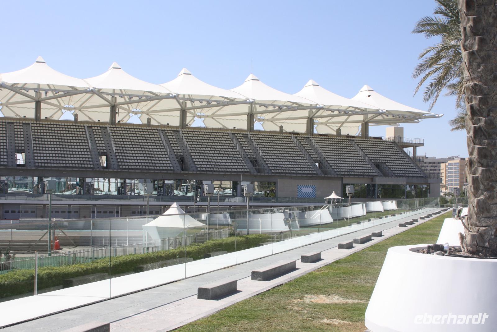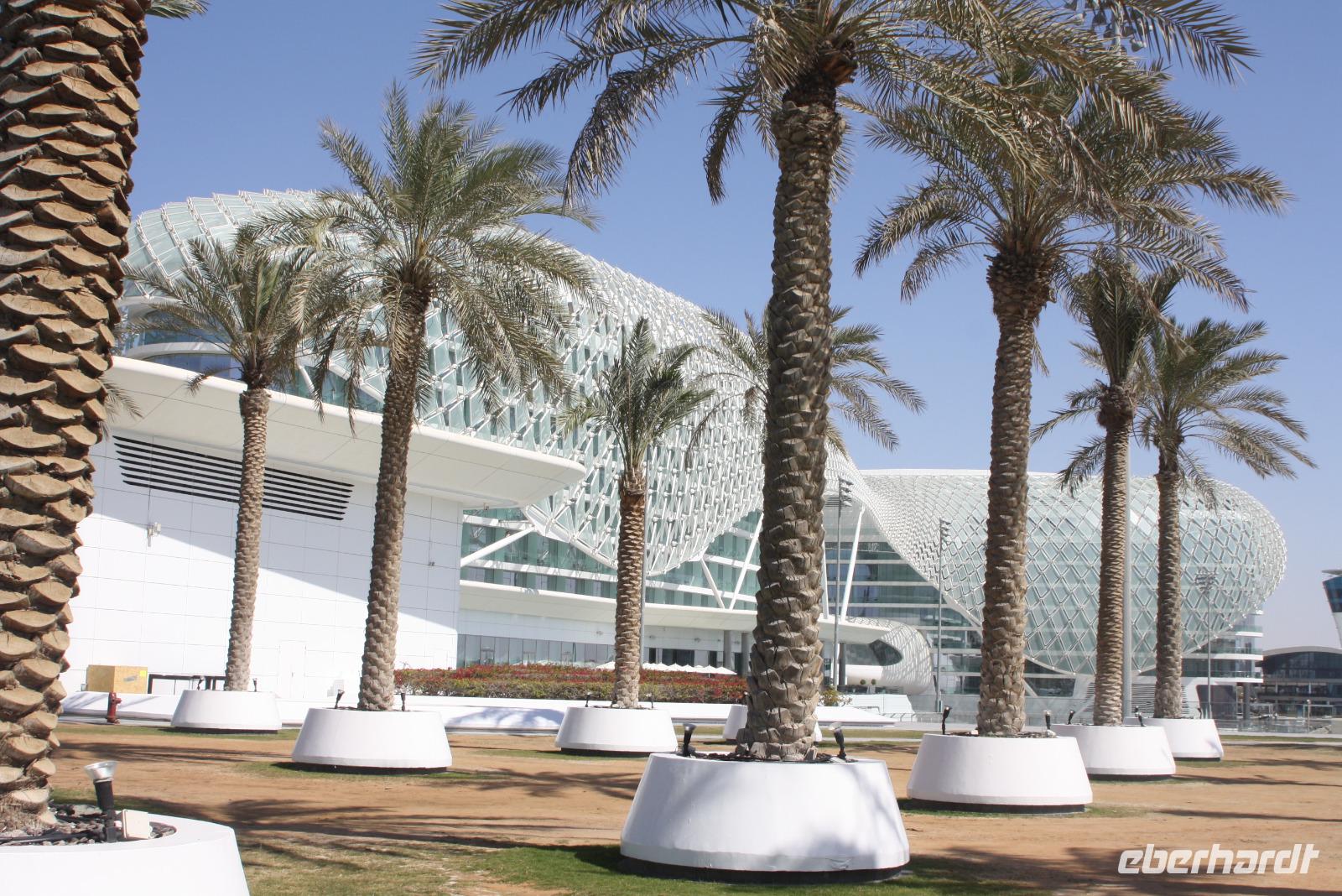 Am heutigen Tage unternehmen wir einen Ausflug ins 150 Kilometer entfernte Emirat Abu Dhabi. Auf dem Weg dort hin besuchen wir die Falkenklinik von Frau Dr. Müller. Hier haben Einheimische die Möglichkeit, ihre Falken zur Maniküre oder zum Gesundheitscheck vorbei zu bringen. Der Jordanier Hassan führt uns auf seine humorvolle, lockere Art und Weise durch die Klinik und erklärt uns alle wichtigen Dinge, die notwendig sind, um seinen Falken mit an Bord eines Flugzeuges nehmen zu dürfen :-) Im Anschluss fahren wir weiter nach Abu Dhabi. Bevor wir ins Zentrum des Emirates fahren, begeben wir uns nach Yas Island, wo sich die Rennstrecke des Formel 1-Grand Prixs von Abu Dhabi befindet. Vom angrenzenden Yas Hotel kann man direkt vom Zimmer aus den Blick auf den Asphalt genießen. Nach einer Fahrt entlang der Corniche von Abu Dhabi, begeben wir uns zum Heritage Village. Von hier aus haben wir einen perfekten Blick auf die bezaubernde Skyline Abu Dhabis. Daraufhin lädt das 7-Sterne-Hotel "Emirates Palace" zur Teestunde. Wir bekommen herzhafte und süße Köstlichkeiten serviert und dürfen wenigstens für eine Stunde in eine luxuriöse Welt eintauchen. Im Anschluss fahren wir zur Sheikh Zayed-Moschee. Sie ist die größte Moschee der Emirate und die achtgrößte der Welt. Das Sakralgebäude ist auch für Nicht-Gläubige zugänglich. Der Gebetssaal der Moschee ist mit einem 5.600 Quadratmeter großem, handgeknüpftem Teppich aus dem Iran ausgestattet und ist somit der größte Teppich der Welt.