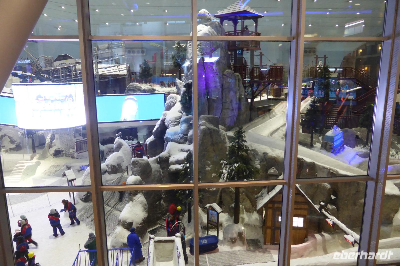 - Mall oft the Emirate (MoE) und Skihalle: jedes große Einkaufszentrum hat eine Attraktion, hier ist es die Skihalle. In Deutschland leider oft mit negativen Schlagzeilen belegt wegen angeblich hohem Energieverbrauch. Dabei sollten wir uns vielleicht selbst fragen, wozu wir in Deutschland Skihallen angesichts hervorragender Wintersportbedingungen in den Gebirgen brauchen? Die Aluminiumhülle der Skihalle hier sorgt zusammen mit einer guten Dämmung und deutscher Technik jedenfalls dafür, dass sich der Energieverbrauch in Grenzen hält. Gönnen wir also den Einwohnern Dubais auch etwas Skivergnügen! Die Skihalle ist Teil der 2005 eröffneten Mall of the Emirates. Von der Mall aus kann man wie durch ein riesiges Schaufenster das Skivergnügen in nachgeahmter Alpenlandschaft aus der Nähe verfolgen. Neustes Angebot seit diesem Jahr: wem es draußen zu heiß ist, der kann in der Skihalle eine Übernachtung im Zelt bei minus vier Grad buchen!