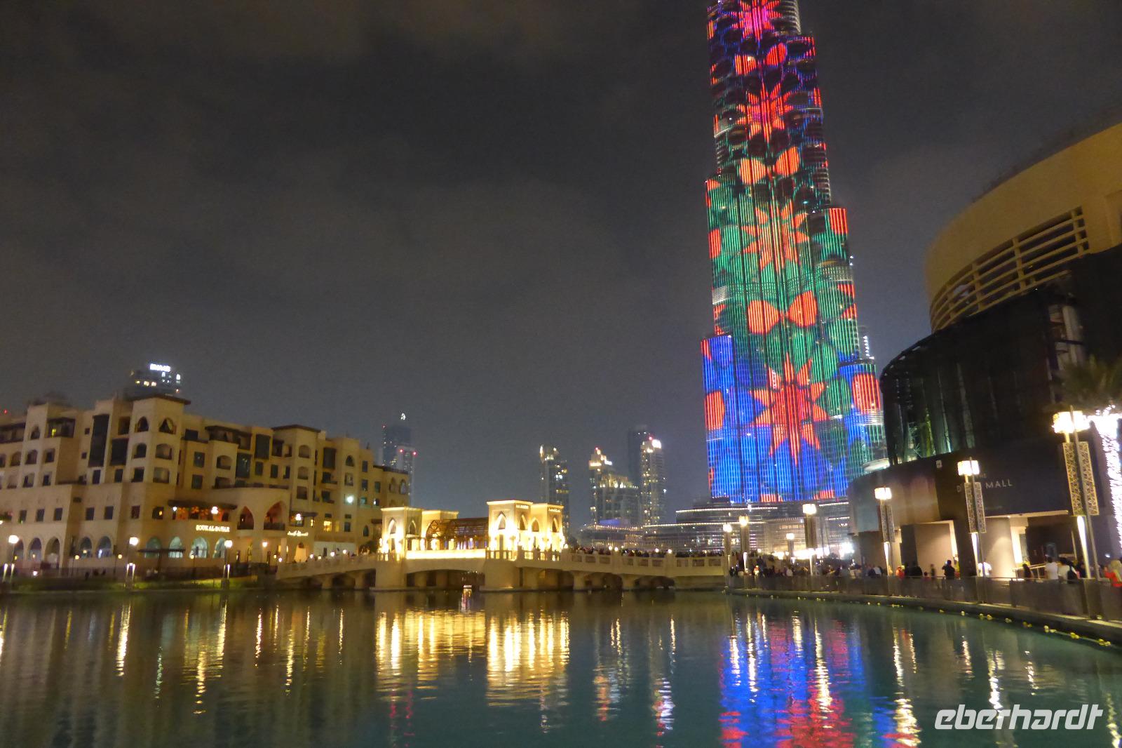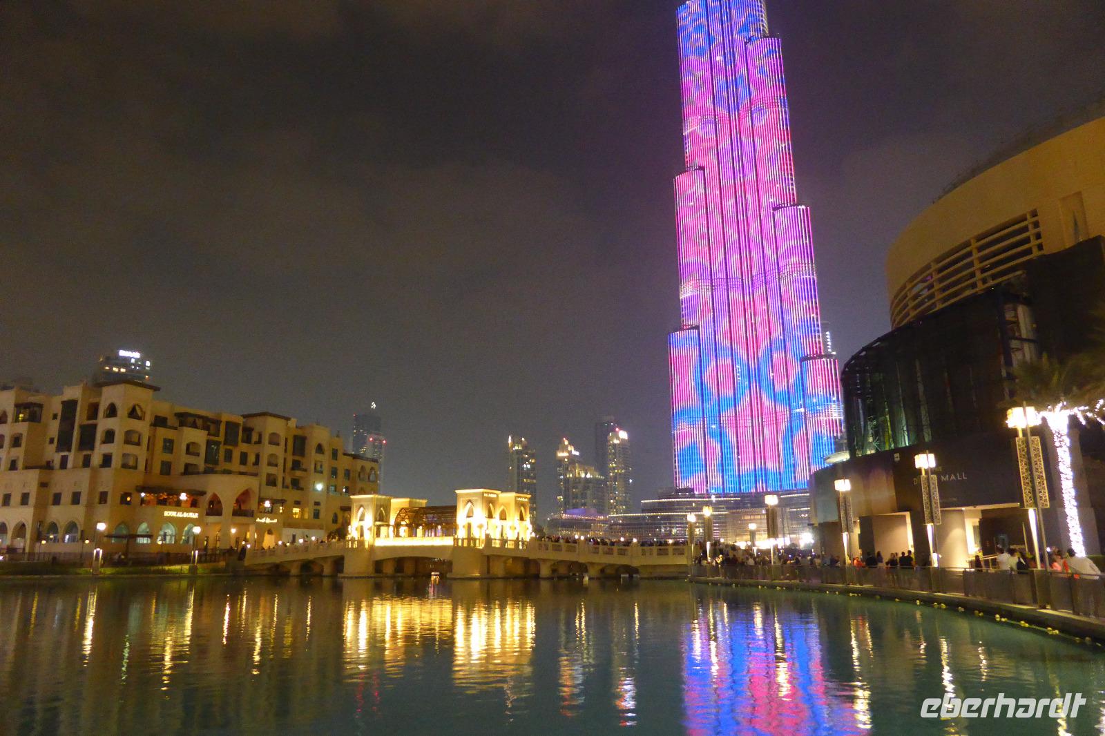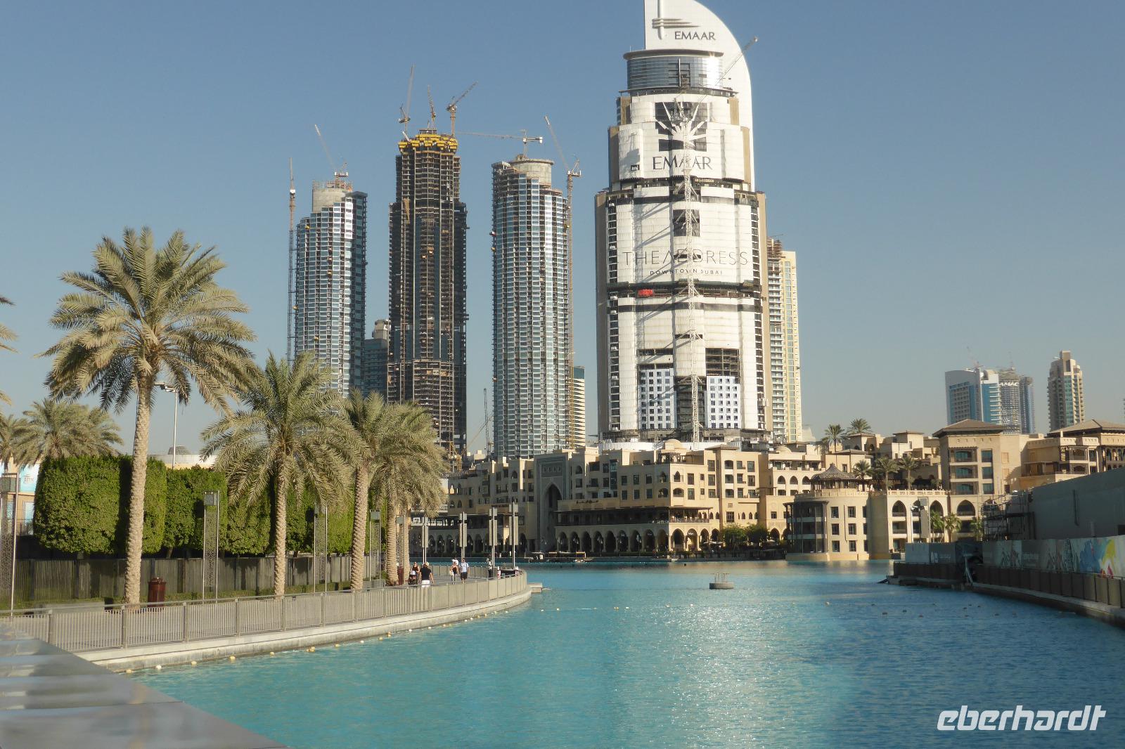 Kurz vor 18.00 Uhr versammeln wir uns zusammen mit hunderten von Besuchern am Fuße des Burj Khalifas, um die Dubai Fountain zu sehen. Es ist die allabendliche Unterhaltung von Wasserspielen, welche passend auf Musik aus Ost und West abgestimmt sind. Das Vorbild in Las Vegas übertrifft Dubai mit den welthöchsten Fontänen.