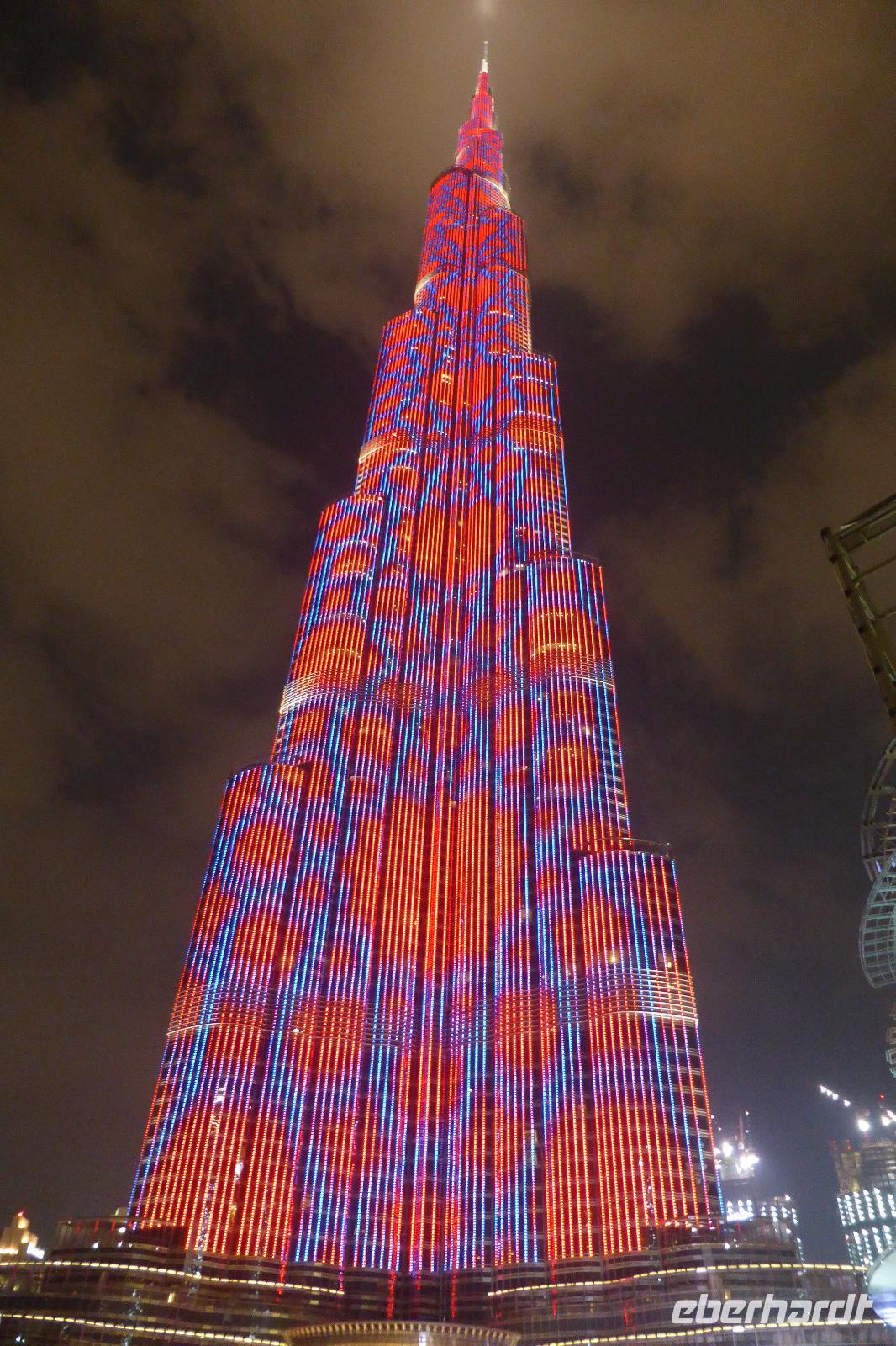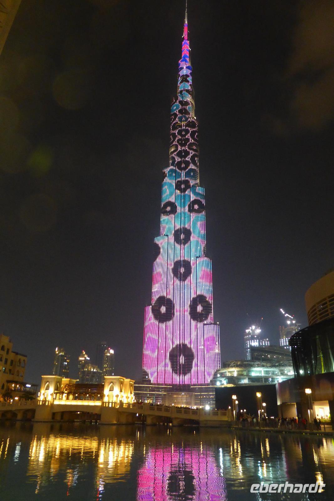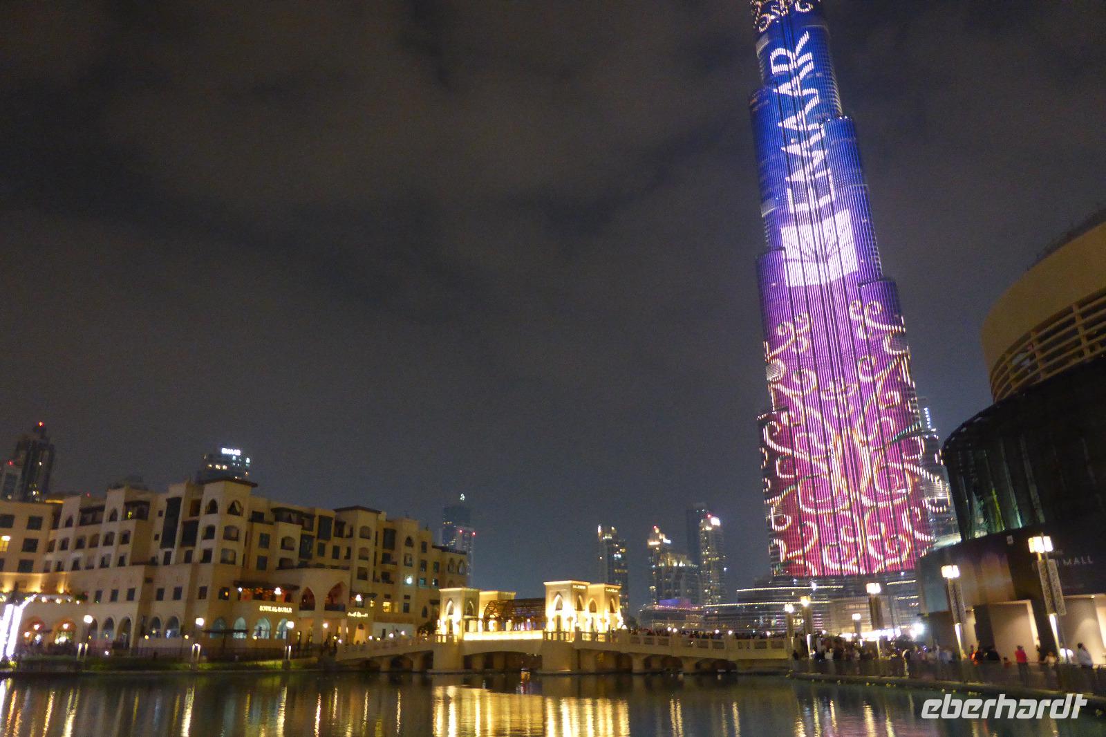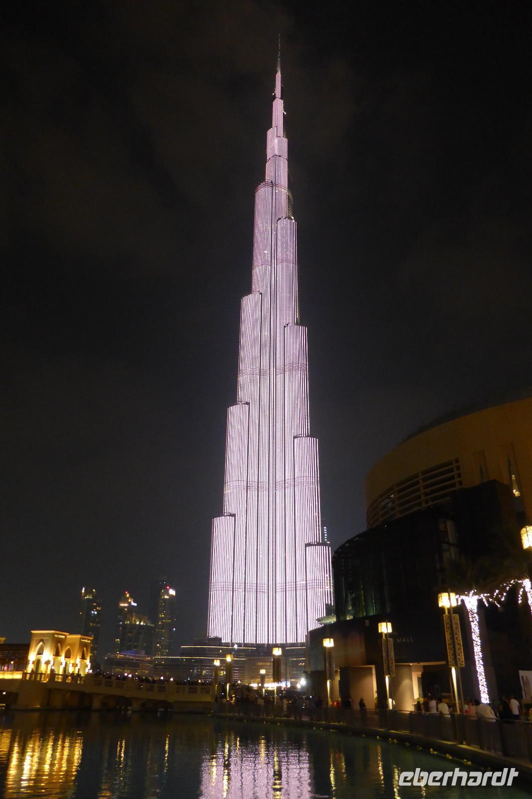 Kurz vor 18.00 Uhr versammeln wir uns zusammen mit hunderten von Besuchern am Fuße des Burj Khalifas, um die Dubai Fountain zu sehen. Es ist die allabendliche Unterhaltung von Wasserspielen, welche passend auf Musik aus Ost und West abgestimmt sind. Das Vorbild in Las Vegas übertrifft Dubai mit den welthöchsten Fontänen.