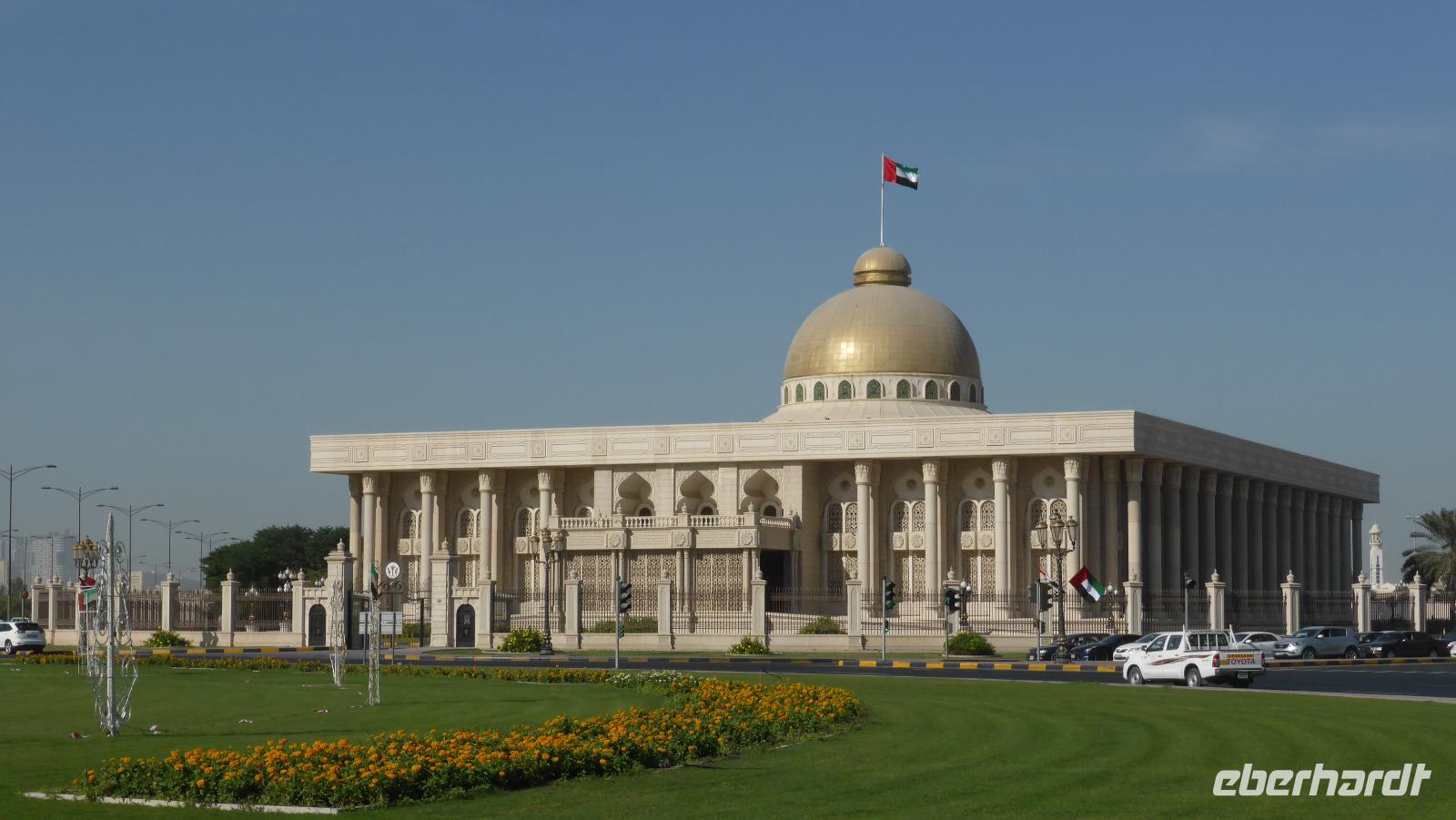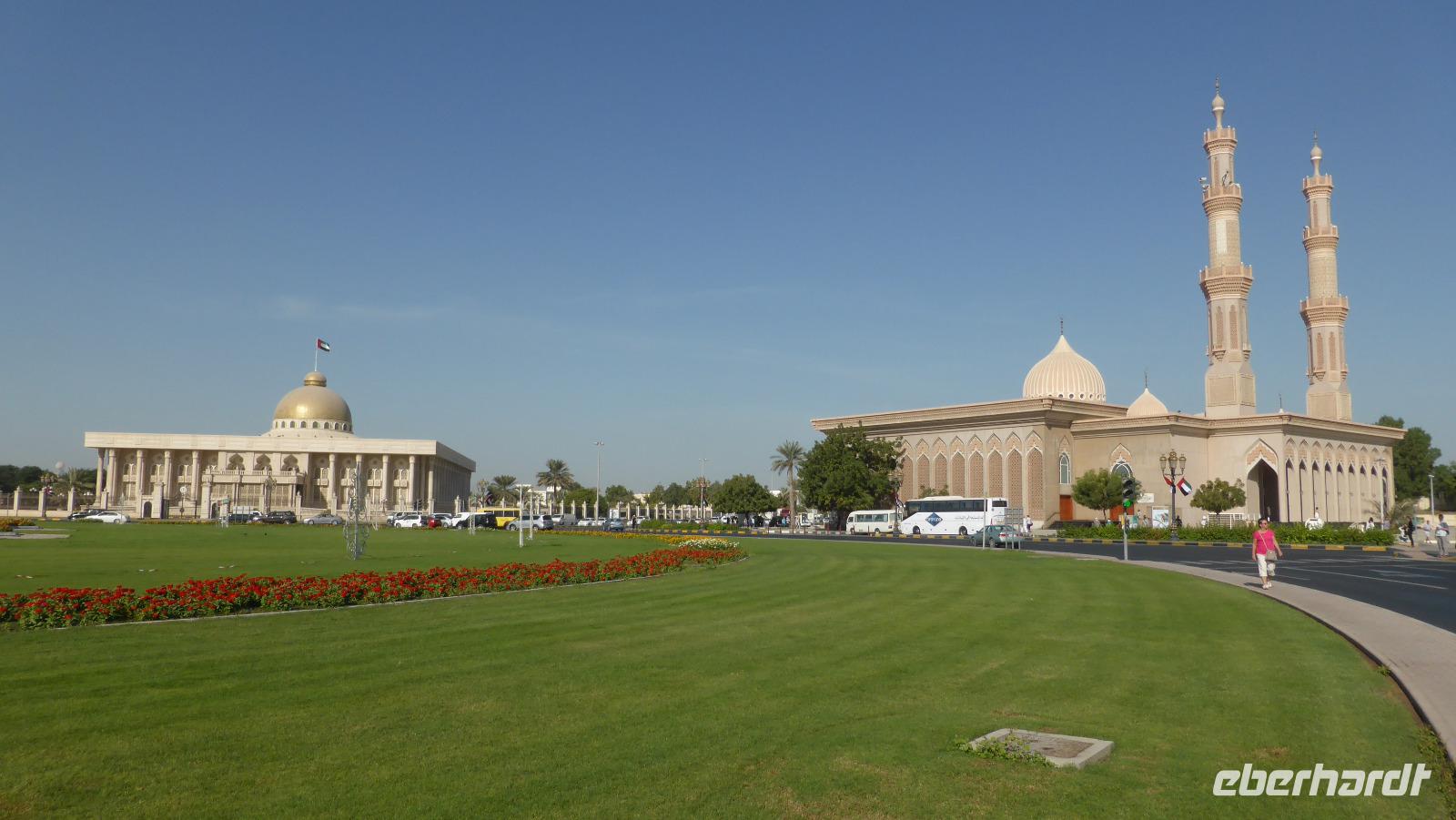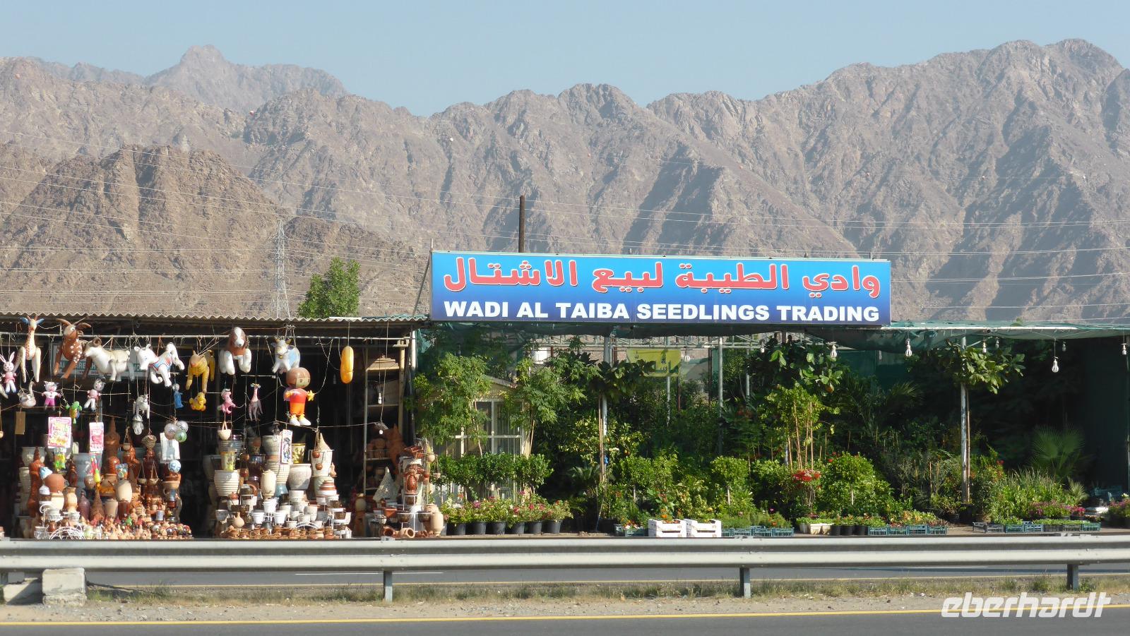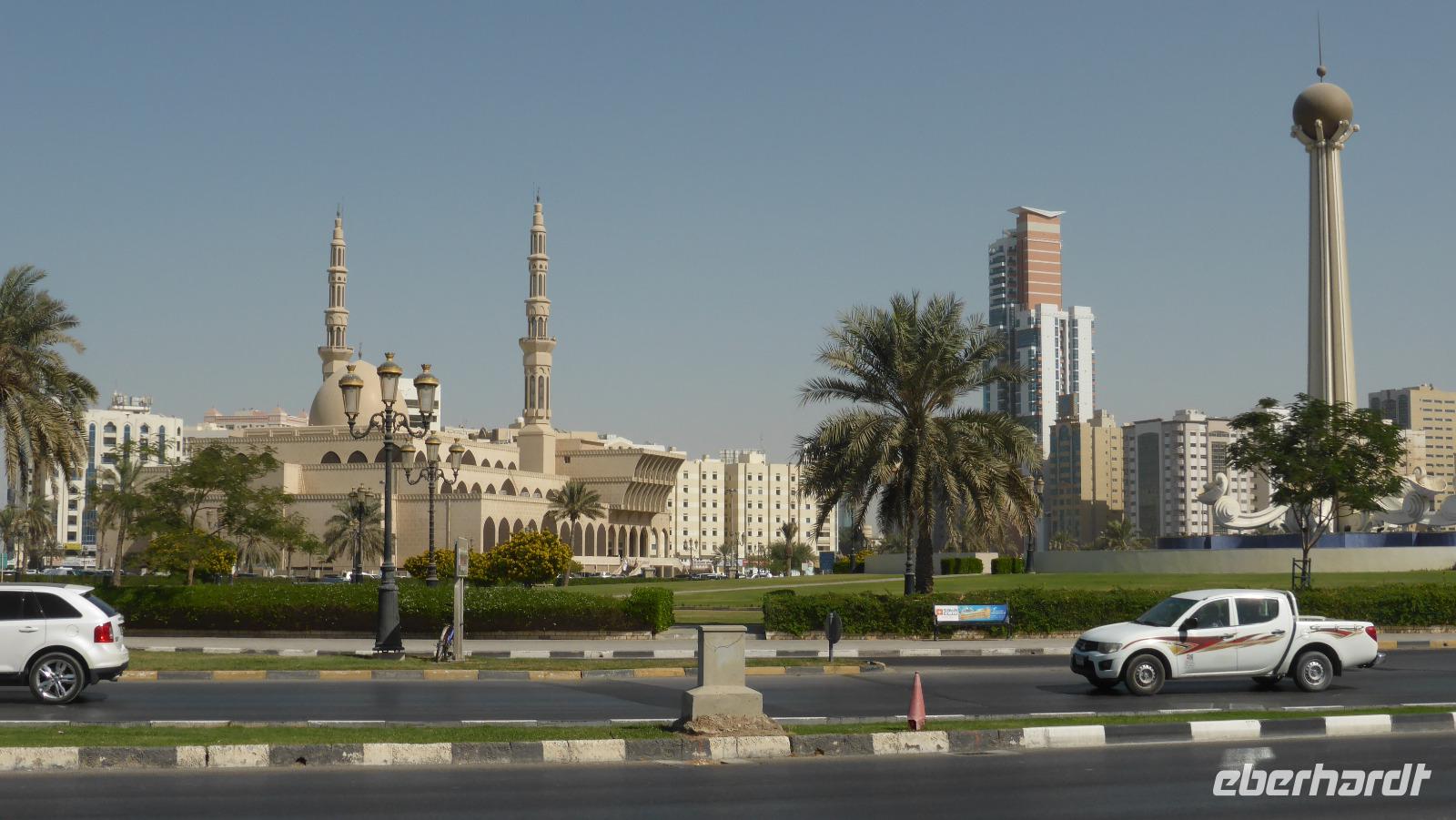 Entlang der Ostküstenstraße durchqueren wir Im Wechsel die Emirate Sharjah und Fujairah. Sie sind leicht zu unterscheiden, da sich Sharjah durch gepflegte Grünanlagen und seinem eigenen Baustil von Fujairah abhebt.