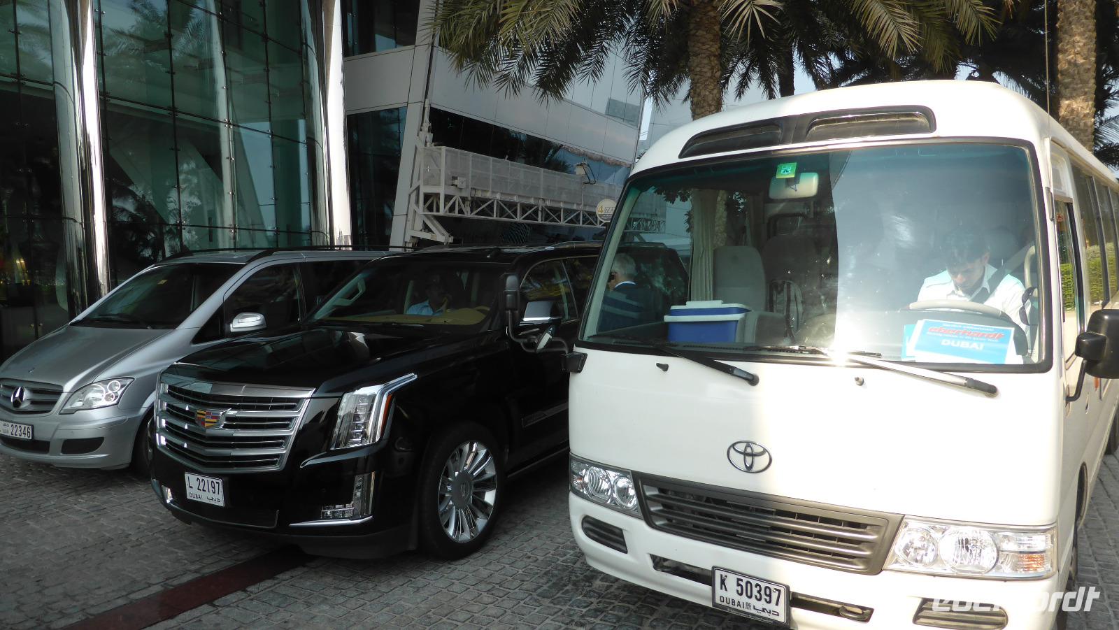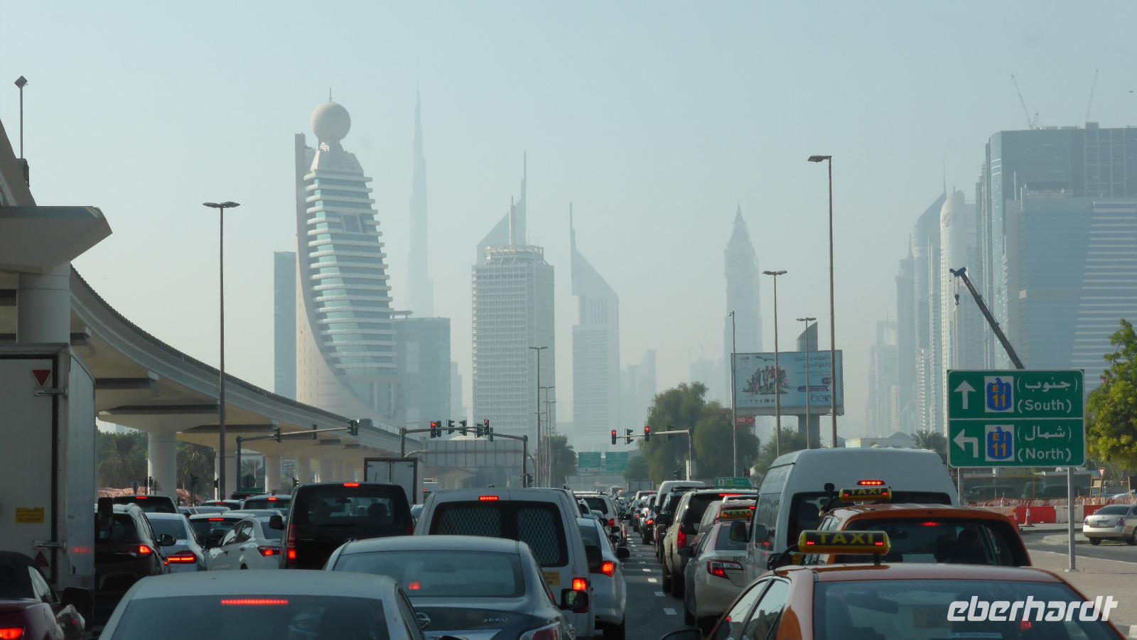 Wir haben einen fröhlichen Start in den Tag, was wir u. a. auch dem „Schlipsbinder" zu verdanken haben. Unterwegs mit dem Bus in Dubai an einer Ampel wartend, amüsieren wir uns über den Autofahrer neben uns. Er versucht, die rote Ampelphase zu nutzen, um irgendwie seine Krawatte zu binden, braucht allerdings mehrere Anläufe und irgendwann merkt er dann, dass er beobachtet wird...