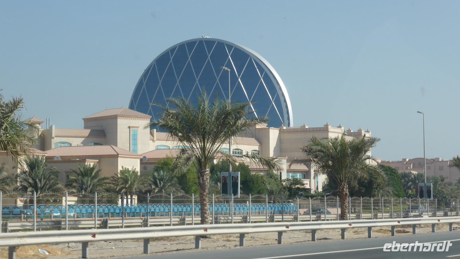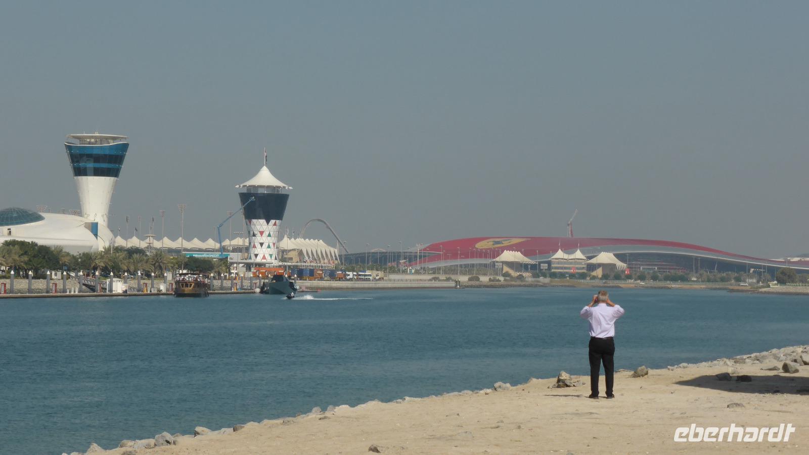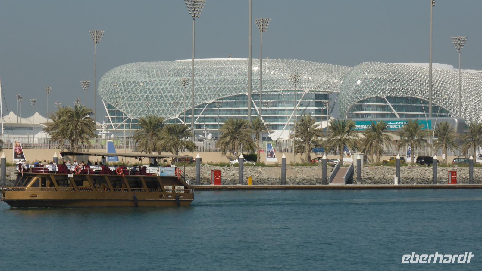 Auch heute wollen wir uns ganz der Hauptstadt der VAE widmen. Erstes Ziel ist die Insel Yas, welche sich mit der Formel 1 Strecke „Yas Marina Circuit" und der Ferrari Welt ganz dem Motorsport widmet. Wir haben das seltene Glück, dass wir direkt bis zum Yas-Hotel gelangen, so können wir sowohl einen Blick in das Luxushotel als auch auf die Formel 1 Strecke werfen. Am kommenden Wochenende wird hier das Rennen um den Großen Preis von Abu Dhabi ausgetragen, dann werden wahrscheinlich auch die Nichtmotorsportinteressierten aus unserer Gruppe vorm Fernseher sitzen.