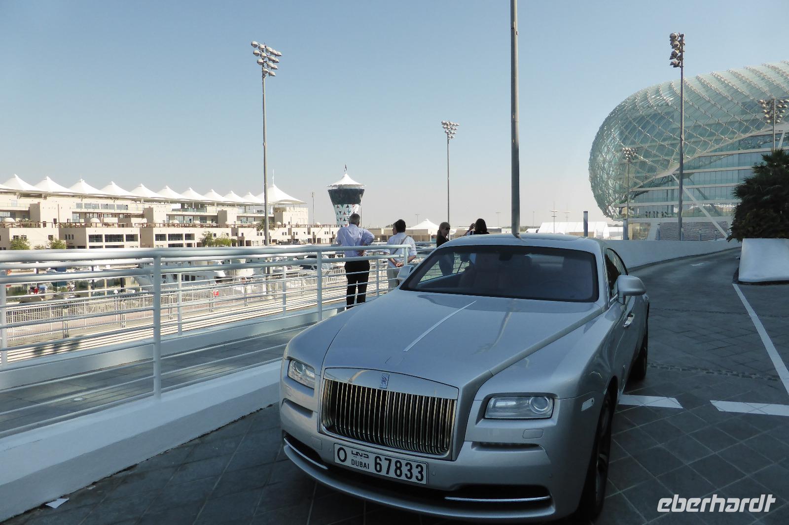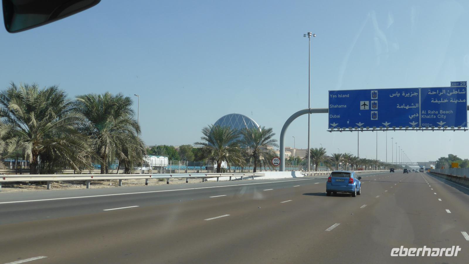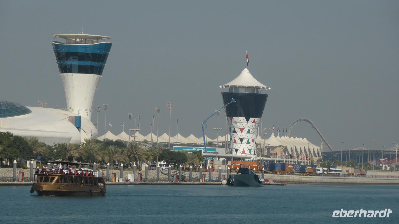 Auch heute wollen wir uns ganz der Hauptstadt der VAE widmen. Erstes Ziel ist die Insel Yas, welche sich mit der Formel 1 Strecke „Yas Marina Circuit" und der Ferrari Welt ganz dem Motorsport widmet. Wir haben das seltene Glück, dass wir direkt bis zum Yas-Hotel gelangen, so können wir sowohl einen Blick in das Luxushotel als auch auf die Formel 1 Strecke werfen. Am kommenden Wochenende wird hier das Rennen um den Großen Preis von Abu Dhabi ausgetragen, dann werden wahrscheinlich auch die Nichtmotorsportinteressierten aus unserer Gruppe vorm Fernseher sitzen.