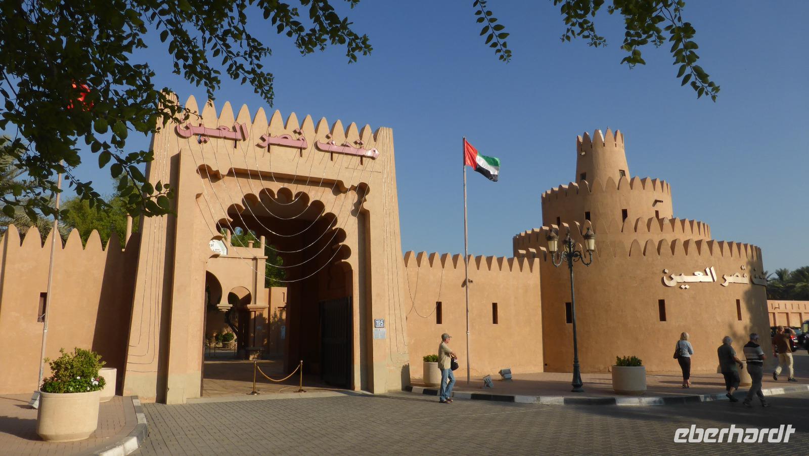 Heute ist unser letzter Tag in den Emiraten. Den Vormitttag verbringen wir im Hotel. Mittags brechen wir in das Landesinnere zur Oasenstadt Al Ain auf. Die Wüstenautobahn ist von einem aufwendig bewässerten Grünstreifen gesäumt, manchmal kann man hindurchblicken auf rötlich schimmernde Sanddünen. Al Ain unterscheidet sich deutlich von den Großstädten an der Küste. So findet man hier keine Wolkenkratzer und anders als Dubai oder Abu Dhabi kann Al Ain auf eine mehrere tausend Jahre lange Geschichte zurückblicken sowie grüne Gärten voller Dattelpalmen vorweisen. Zweimal im Jahr müssen die Dattelbauern die Palme hochklettern, zunächst um sie zu bestäuben, dann um die Früchte zu ernten. Wie man mit einfachen Hilfsmitteln auf die Palme steigt, demonstriert uns ein pakistanischer Gastarbeiter. Vorher hatten wir neben dem Dattelpalmgarten bereits das Nationalmuseum besucht und uns über die Geschichte des Emirates Abu Dhabi informiert. Schließlich nutzen wir die Möglichkeit, den früheren Palast des Staatsgründers Shaikh Zayed zu besichtigen. Dieser wurde vor einigen Jahren zum Al Ain Palace Museum umgewidmet und gewährt so Einblicke in die früheren Lebensverhältnisse der Herrscherfamilie des Emirats Abu Dhabi.
