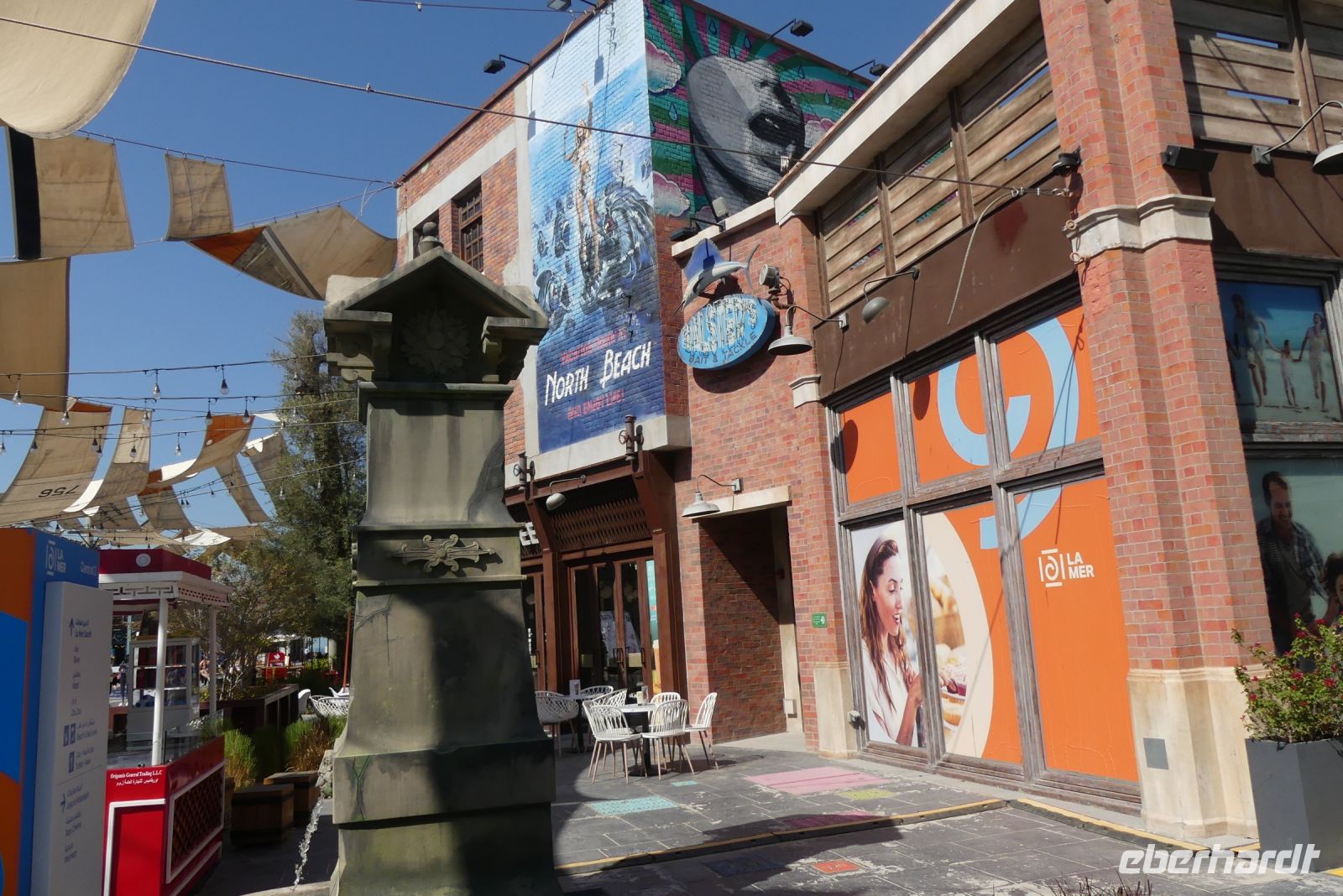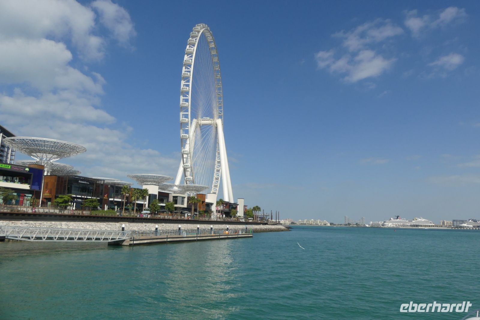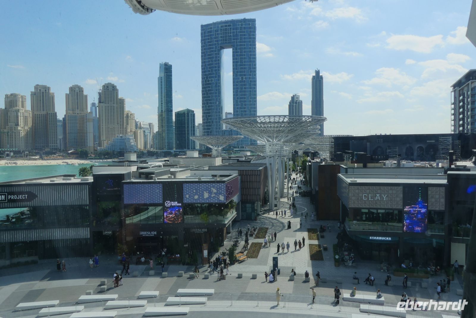Dubai Eye befindet sich auf der künstlichen Insel Blue Water Island. Rund um das Riesenrad sind Restaurants, Cafés, Geschäfte und Verweilmöglichkeiten entstanden. Da nutzen wir für unsere Mittagspause.
