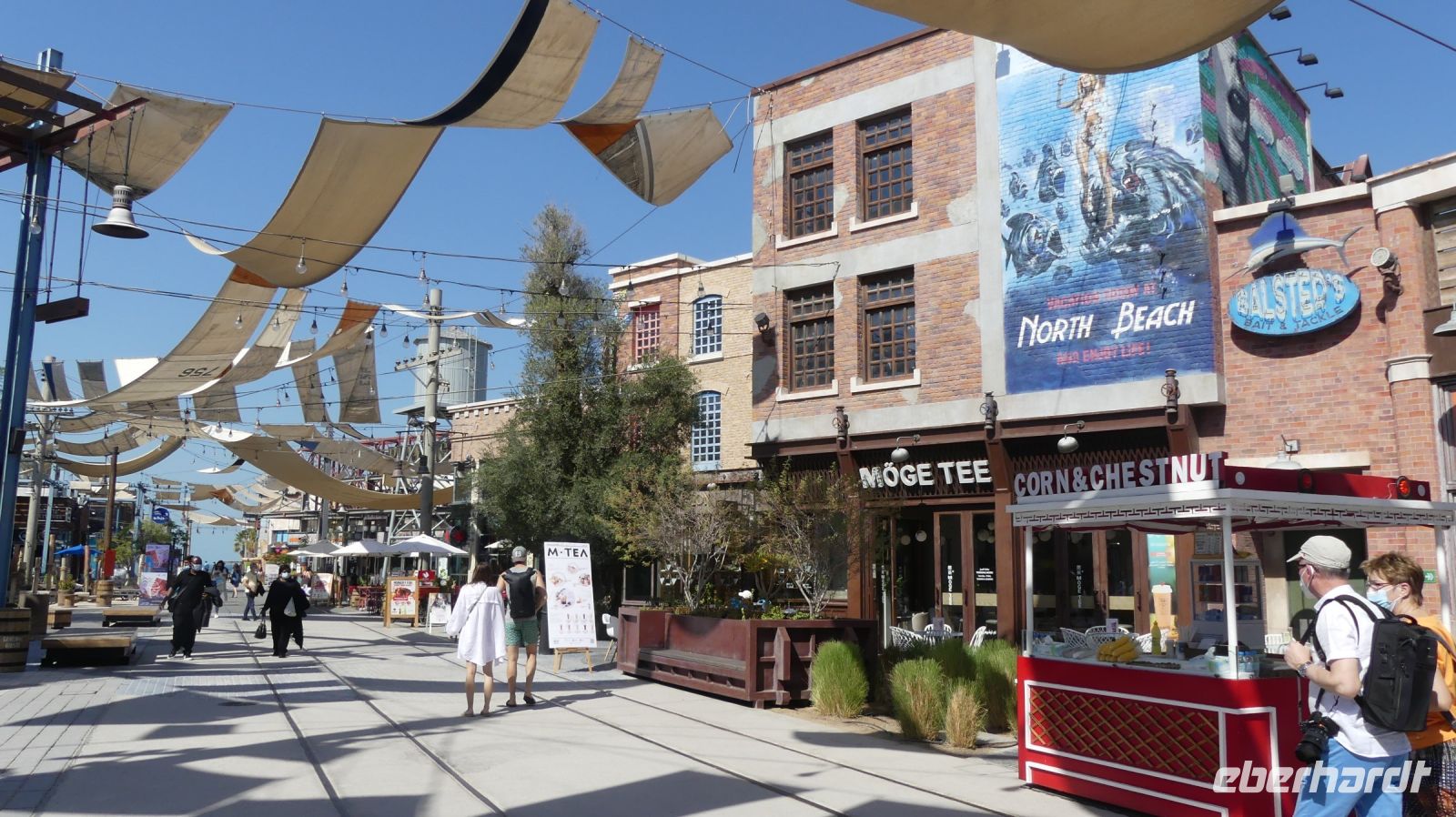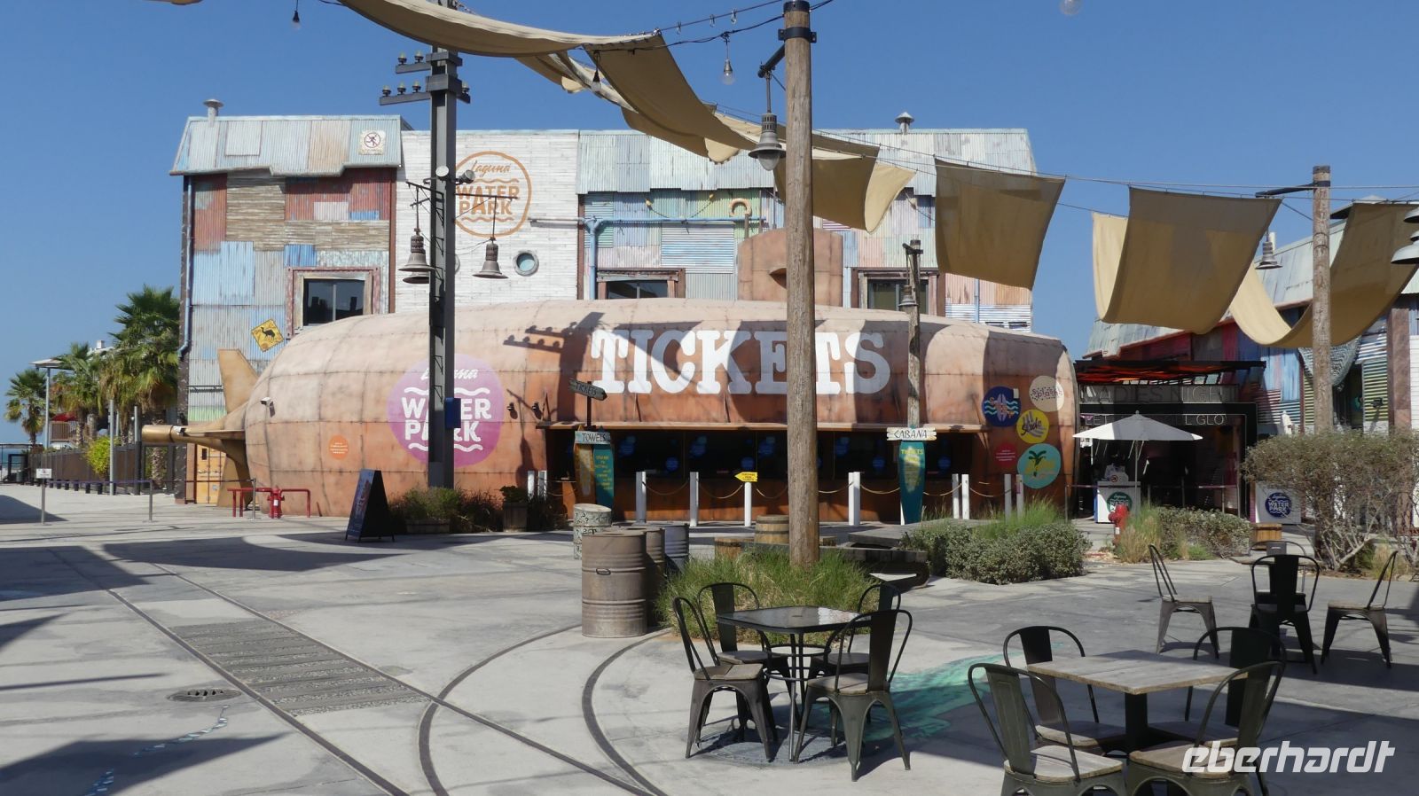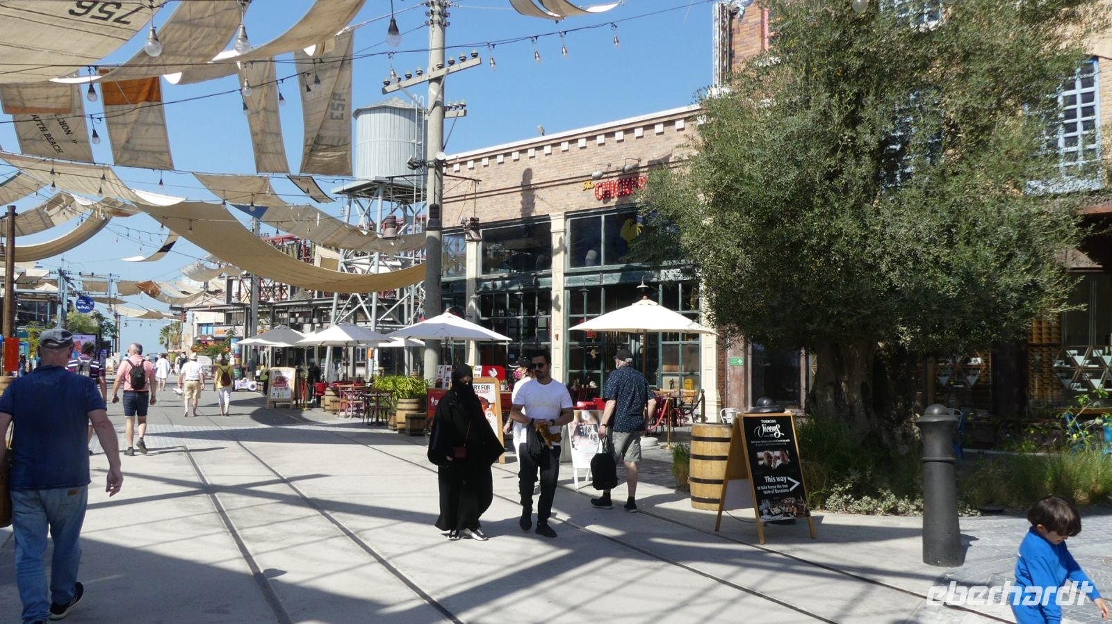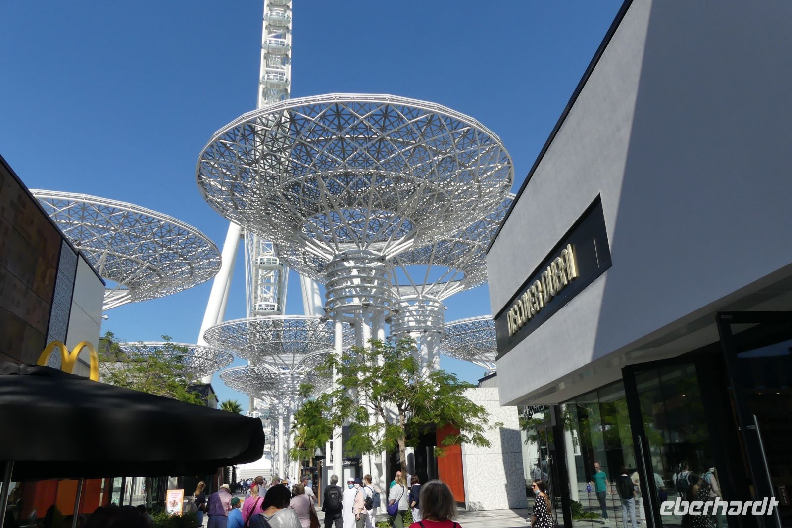 Dubai Eye befindet sich auf der künstlichen Insel Blue Water Island. Rund um das Riesenrad sind Restaurants, Cafés, Geschäfte und Verweilmöglichkeiten entstanden. Da nutzen wir für unsere Mittagspause.