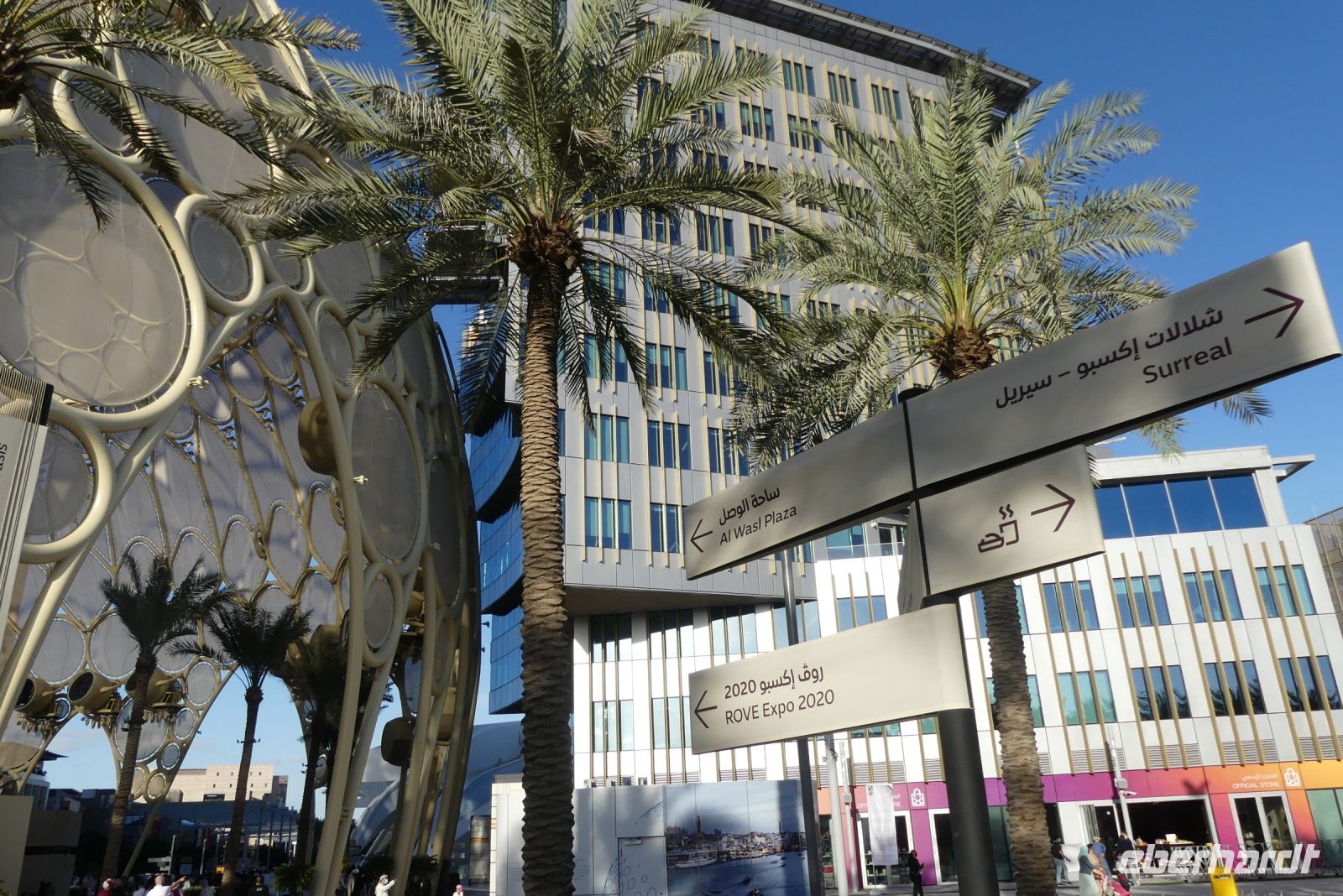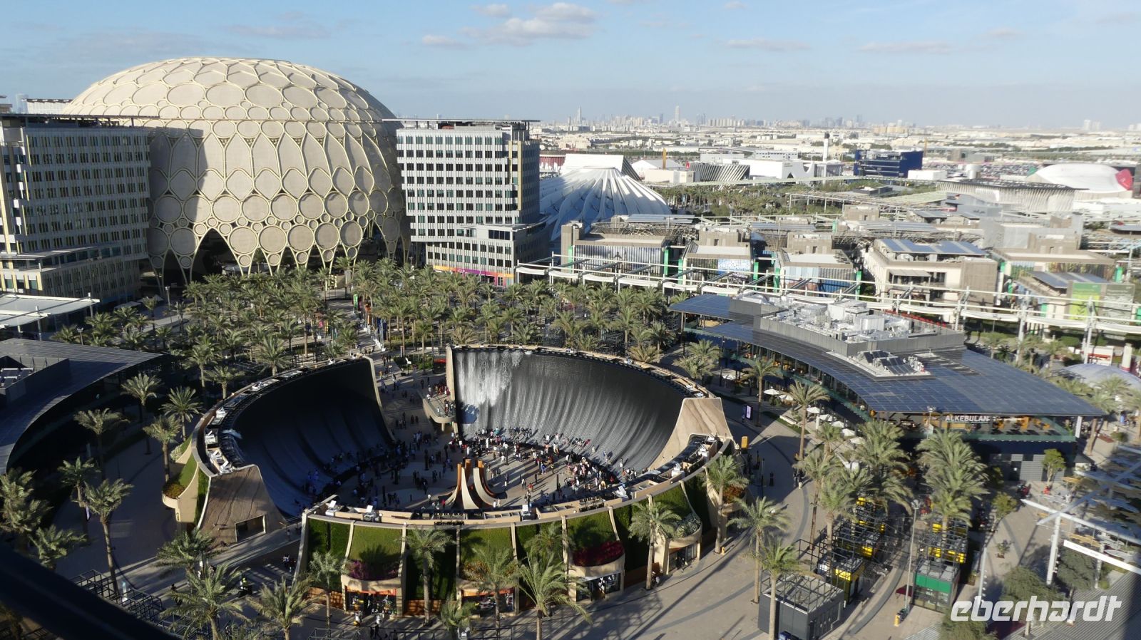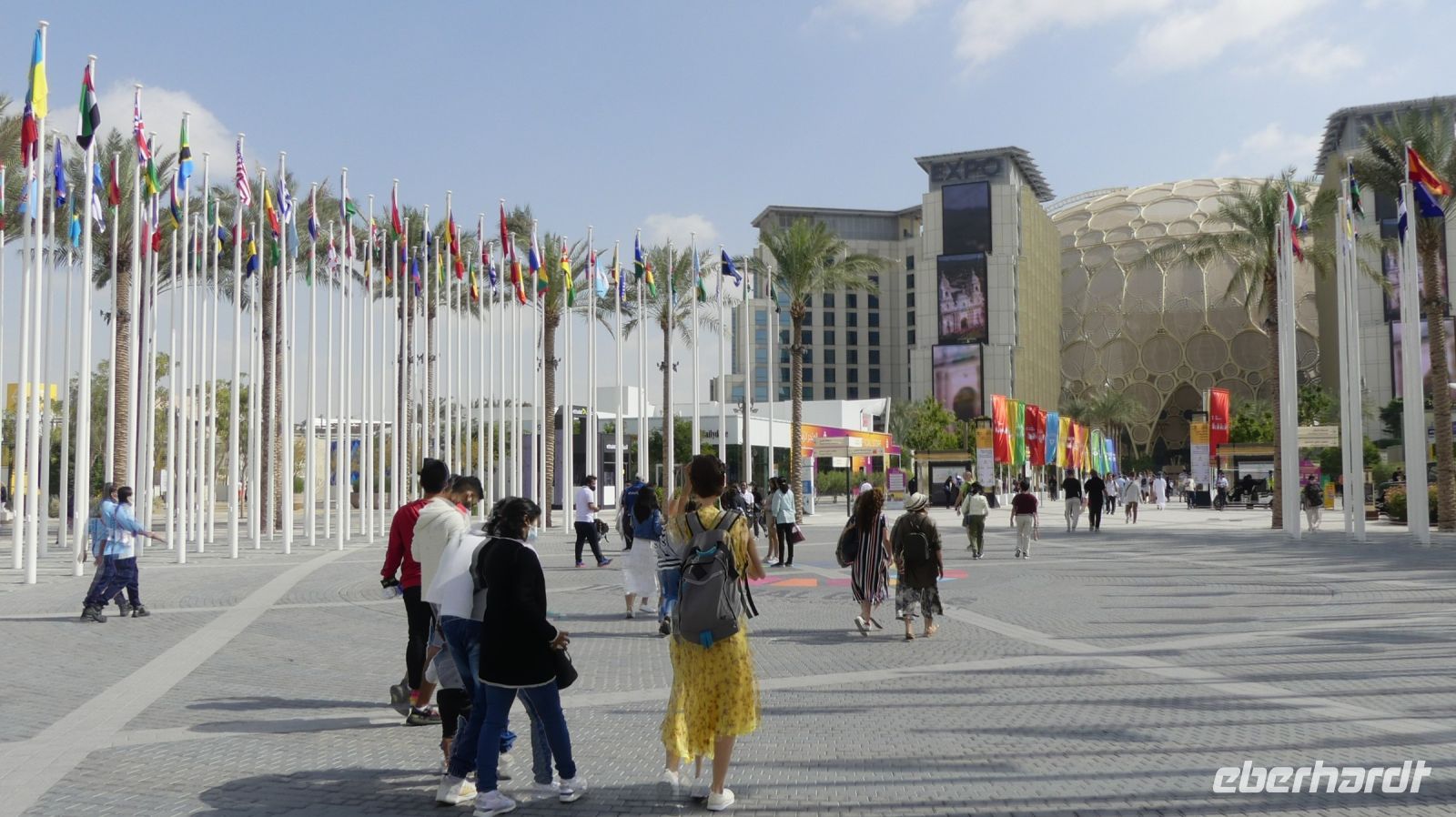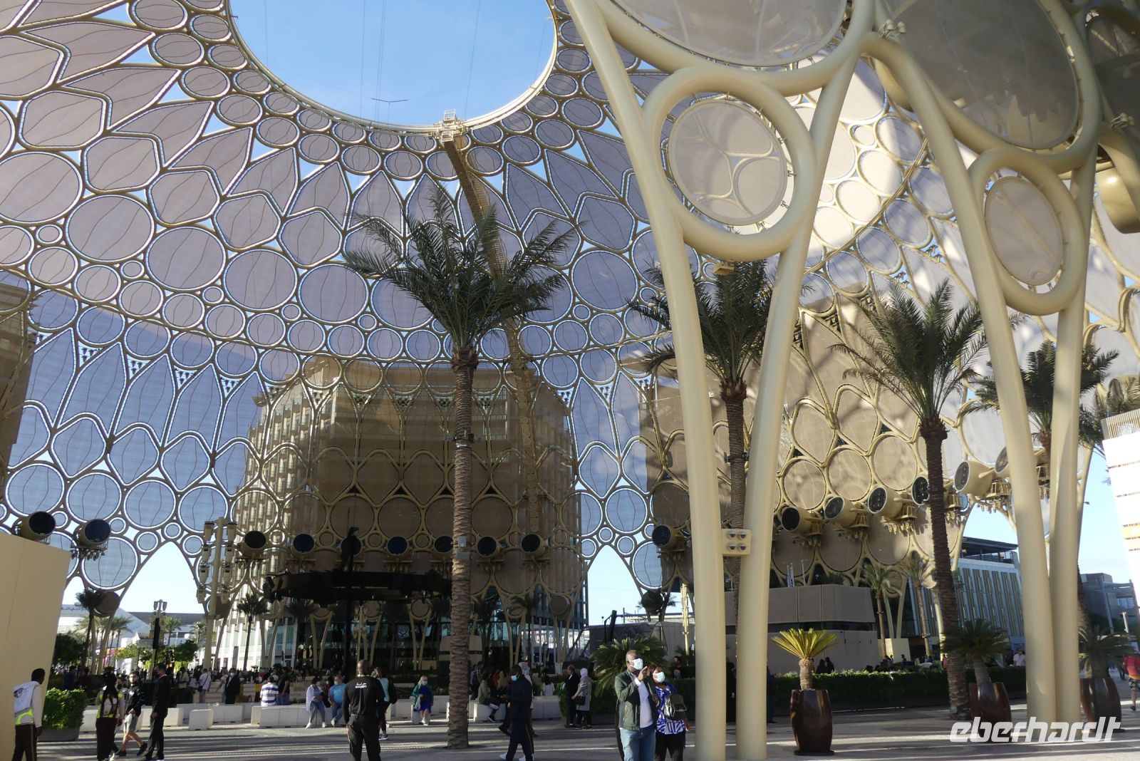 Den Rest des Tages bis in den Abend hinein verbringen wir auf der EXPO 2020. Es ist die erste Weltausstellung in einem arabischen Land. Neu ist auch, dass die Länderpavillons nicht nach ihrer geographischen Lage angeordnet, sondern nach einem der drei Themen Nachhaltigkeit, Mobilität oder Zukunftschancen angeordnet wurden. Es ist Sonntag. Mit Beginn dieses Jahres bilden in den VAE wie bei uns der Sonnabend und der Sonntag das Wochenende. Es ist nach 2006 die zweite Reform hinsichtlich der Verteilung von Arbeitstagen und Wochenende. Gleichzeitig wurde für den staatlichen Sektor die 4,5 Tage eingeführt. So endet die Arbeitswoche des öffentlichen Sektors Freitagmittag und das wichtige Freitagsgebet markiert den Beginn des Wochenendes. Ich erwähne die Wochenendreform deshalb, weil wir heute die Auswirkungen auf der EXPO zu spüren bekommen: Es sind viele Familien mit ihren Kinder und insgesamt überdurchschnittlich viele Besucher auf der Weltausstellung anzutreffen.