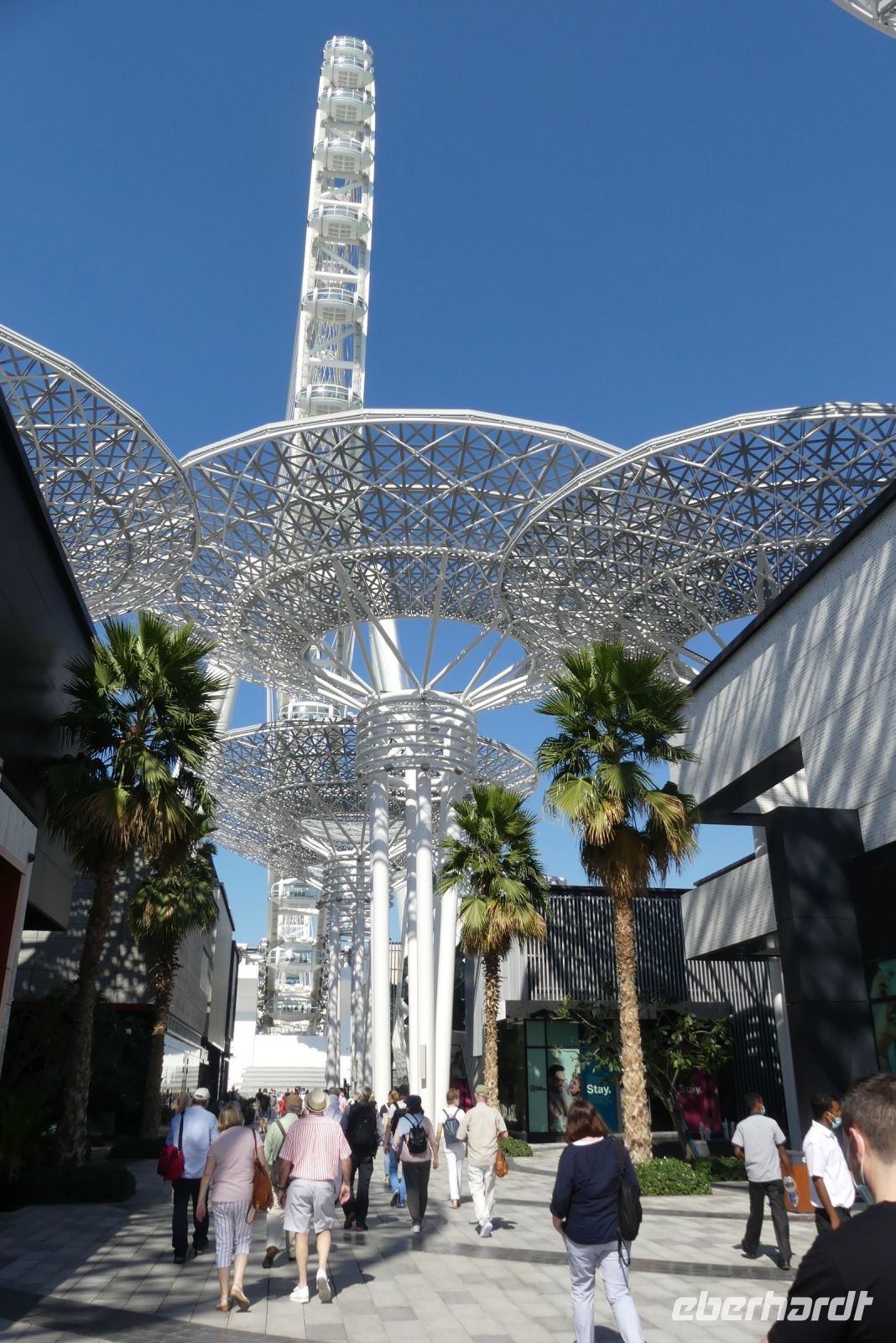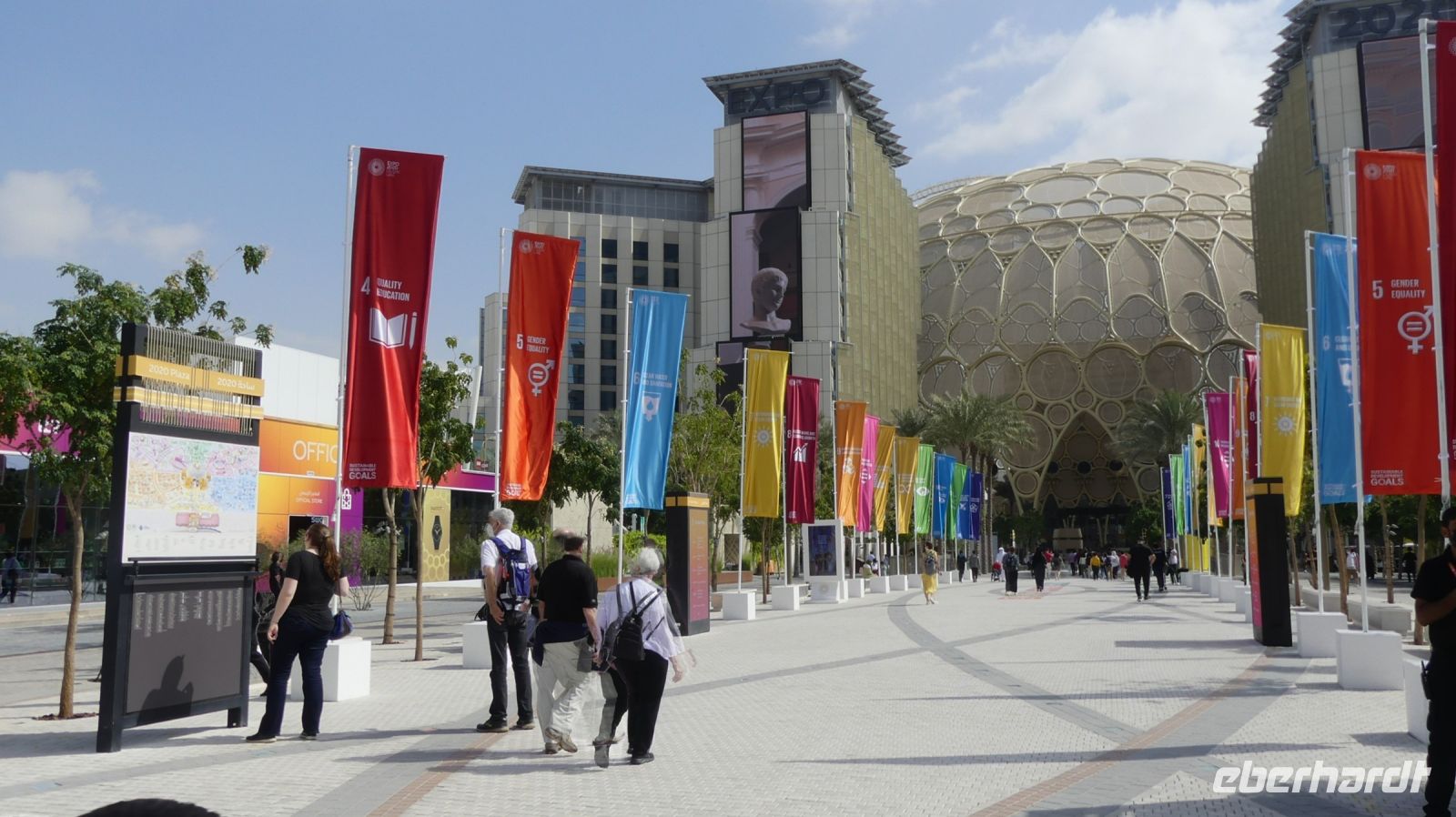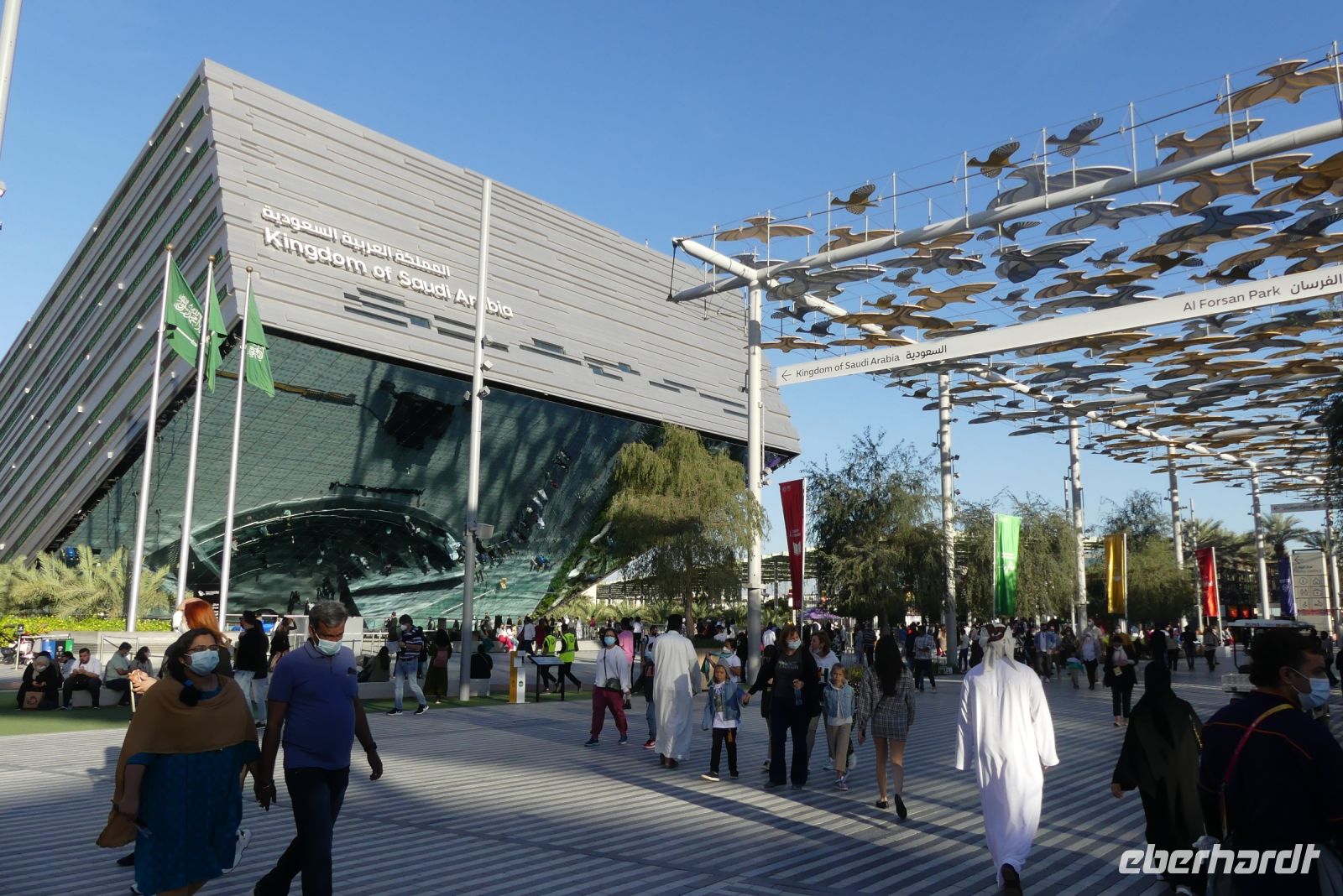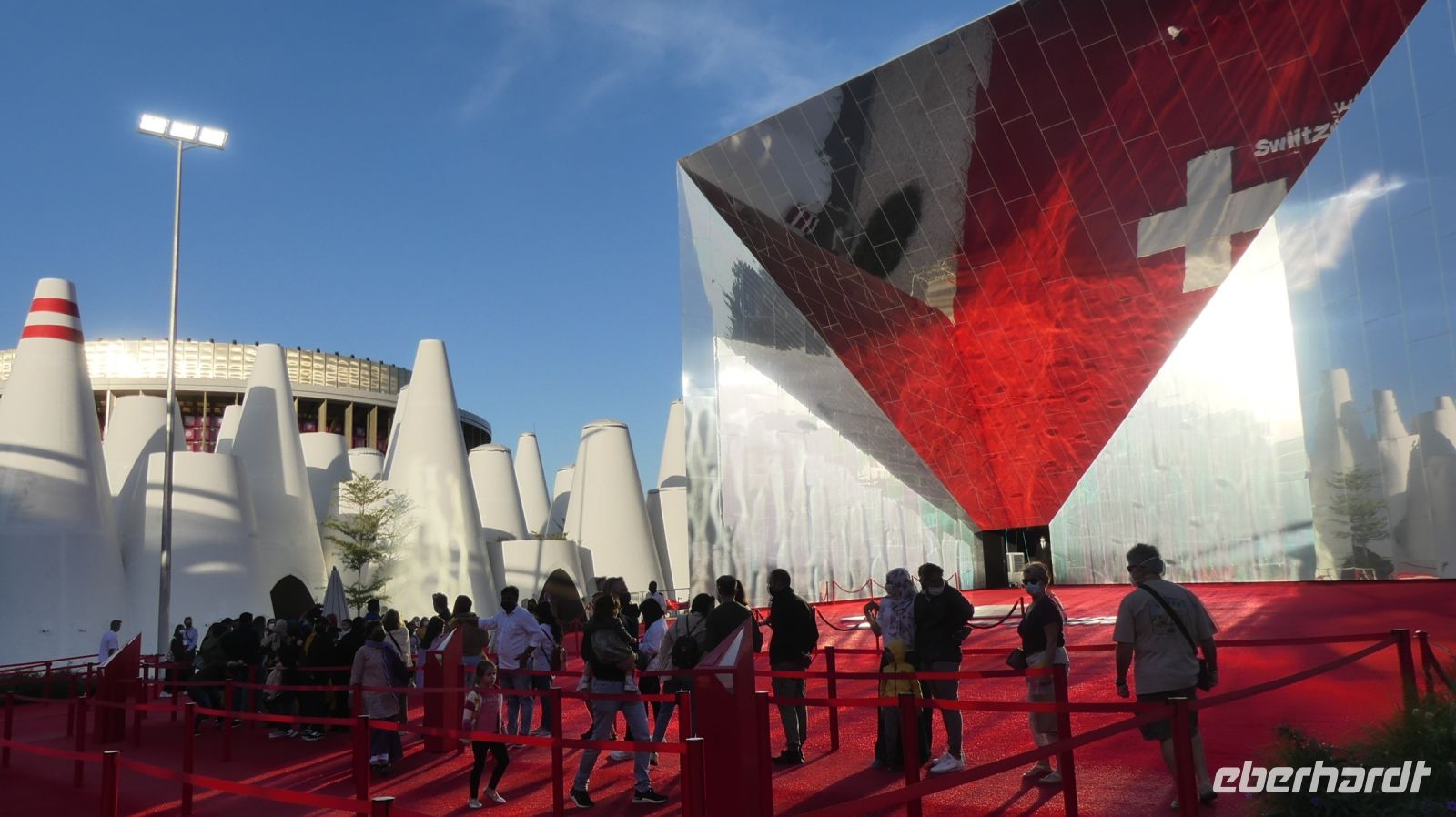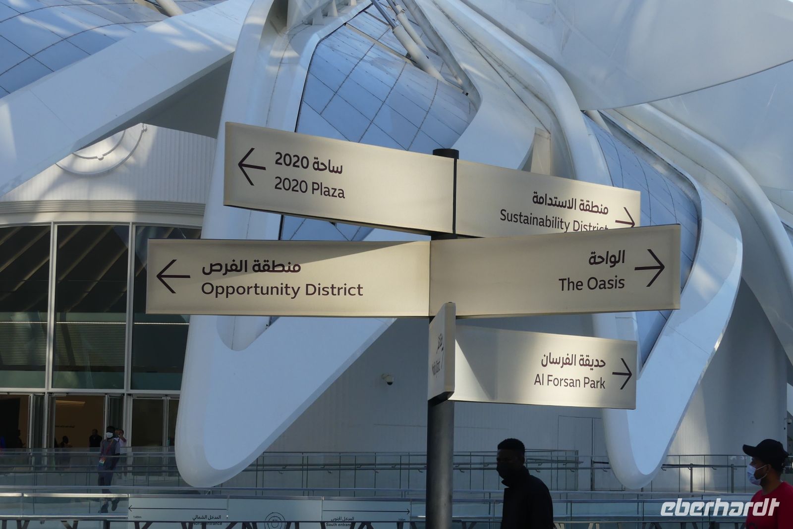 Den Rest des Tages bis in den Abend hinein verbringen wir auf der EXPO 2020. Es ist die erste Weltausstellung in einem arabischen Land. Neu ist auch, dass die Länderpavillons nicht nach ihrer geographischen Lage angeordnet, sondern nach einem der drei Themen Nachhaltigkeit, Mobilität oder Zukunftschancen angeordnet wurden. Es ist Sonntag. Mit Beginn dieses Jahres bilden in den VAE wie bei uns der Sonnabend und der Sonntag das Wochenende. Es ist nach 2006 die zweite Reform hinsichtlich der Verteilung von Arbeitstagen und Wochenende. Gleichzeitig wurde für den staatlichen Sektor die 4,5 Tage eingeführt. So endet die Arbeitswoche des öffentlichen Sektors Freitagmittag und das wichtige Freitagsgebet markiert den Beginn des Wochenendes. Ich erwähne die Wochenendreform deshalb, weil wir heute die Auswirkungen auf der EXPO zu spüren bekommen: Es sind viele Familien mit ihren Kinder und insgesamt überdurchschnittlich viele Besucher auf der Weltausstellung anzutreffen.