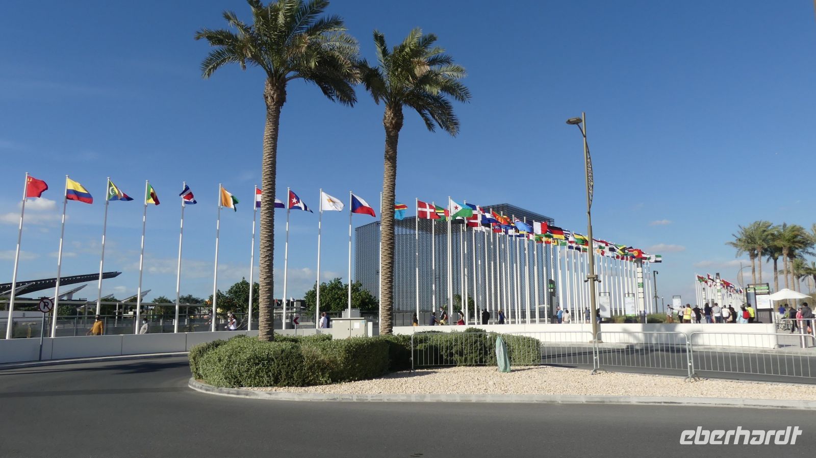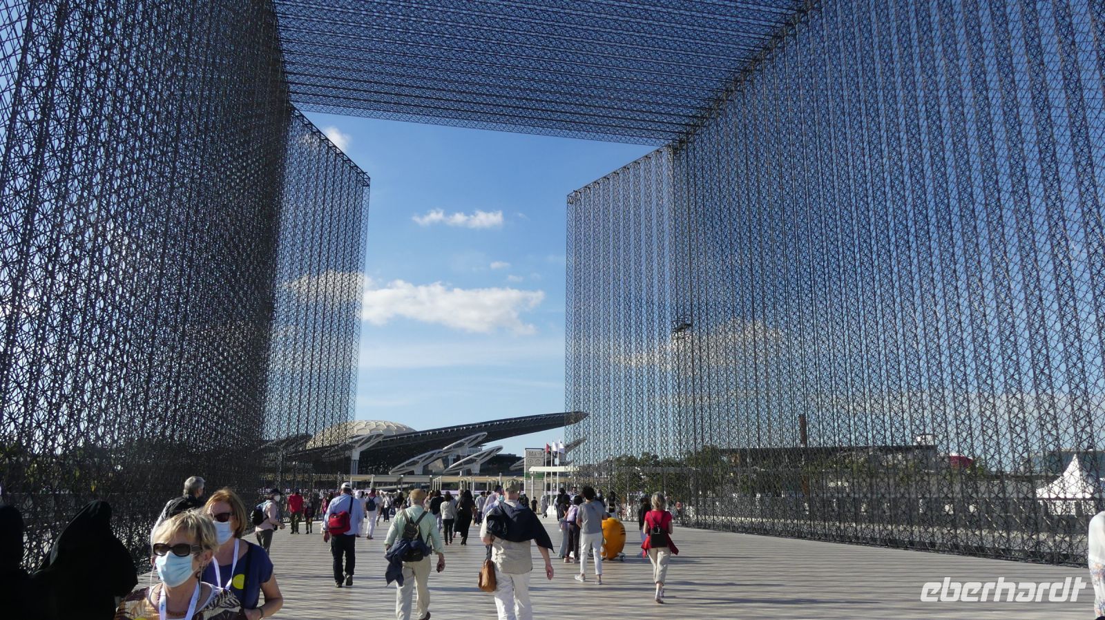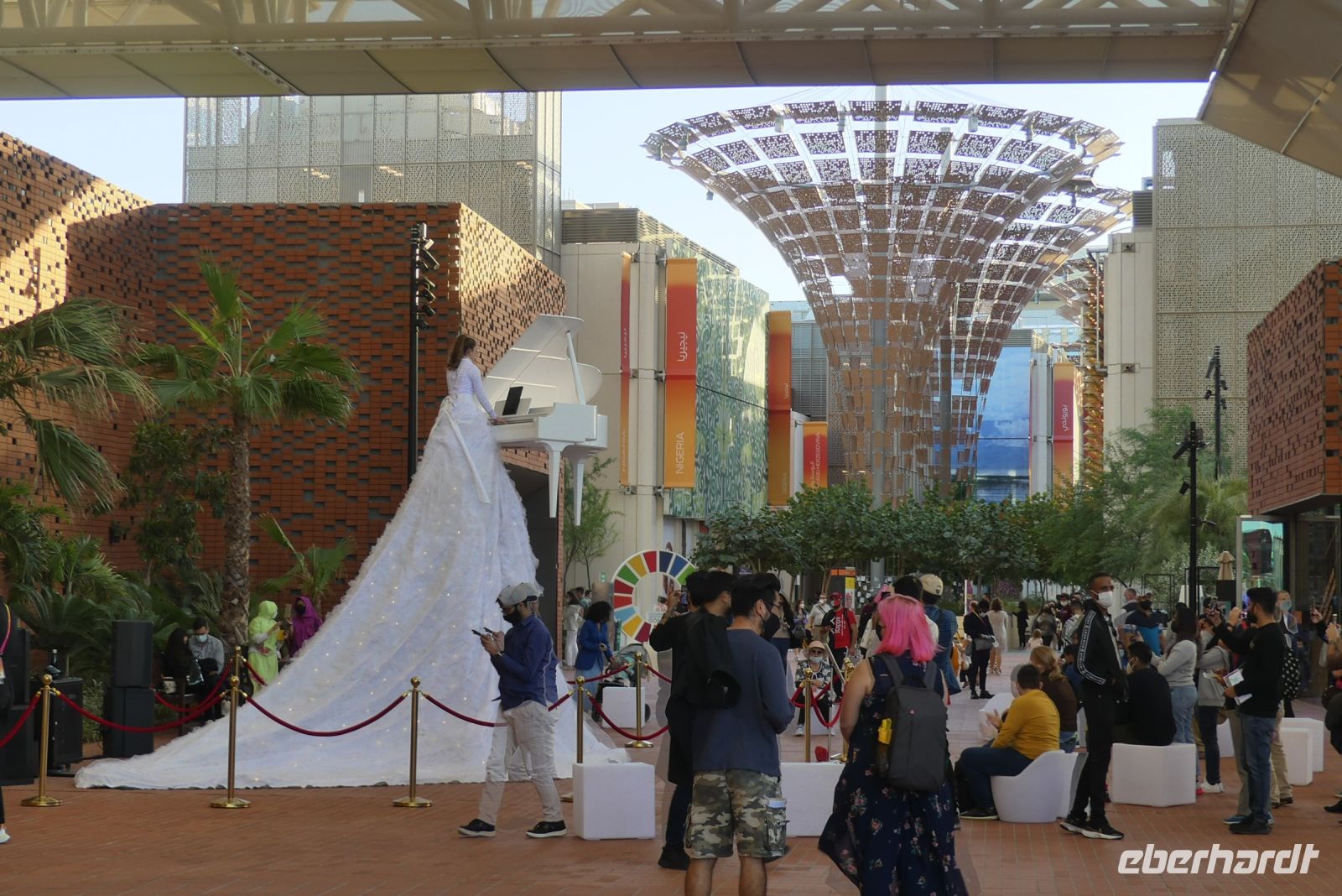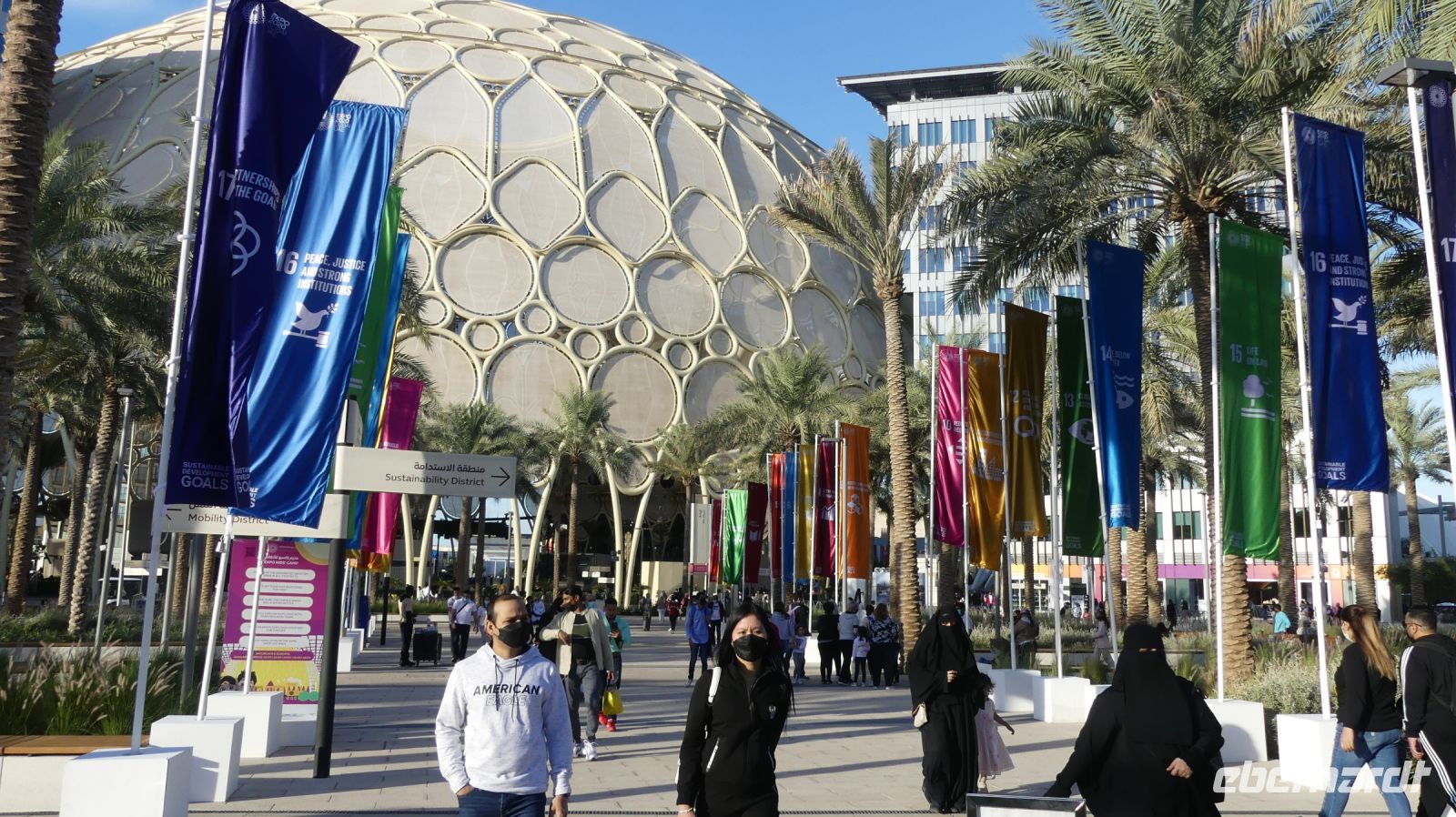 Den Rest des Tages bis in den Abend hinein verbringen wir auf der EXPO 2020. Es ist die erste Weltausstellung in einem arabischen Land. Neu ist auch, dass die Länderpavillons nicht nach ihrer geographischen Lage angeordnet, sondern nach einem der drei Themen Nachhaltigkeit, Mobilität oder Zukunftschancen angeordnet wurden. Es ist Sonntag. Mit Beginn dieses Jahres bilden in den VAE wie bei uns der Sonnabend und der Sonntag das Wochenende. Es ist nach 2006 die zweite Reform hinsichtlich der Verteilung von Arbeitstagen und Wochenende. Gleichzeitig wurde für den staatlichen Sektor die 4,5 Tage eingeführt. So endet die Arbeitswoche des öffentlichen Sektors Freitagmittag und das wichtige Freitagsgebet markiert den Beginn des Wochenendes. Ich erwähne die Wochenendreform deshalb, weil wir heute die Auswirkungen auf der EXPO zu spüren bekommen: Es sind viele Familien mit ihren Kinder und insgesamt überdurchschnittlich viele Besucher auf der Weltausstellung anzutreffen.