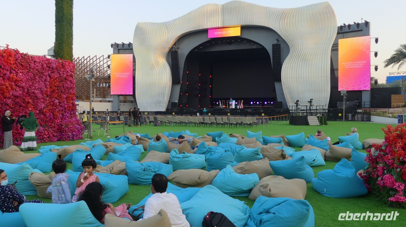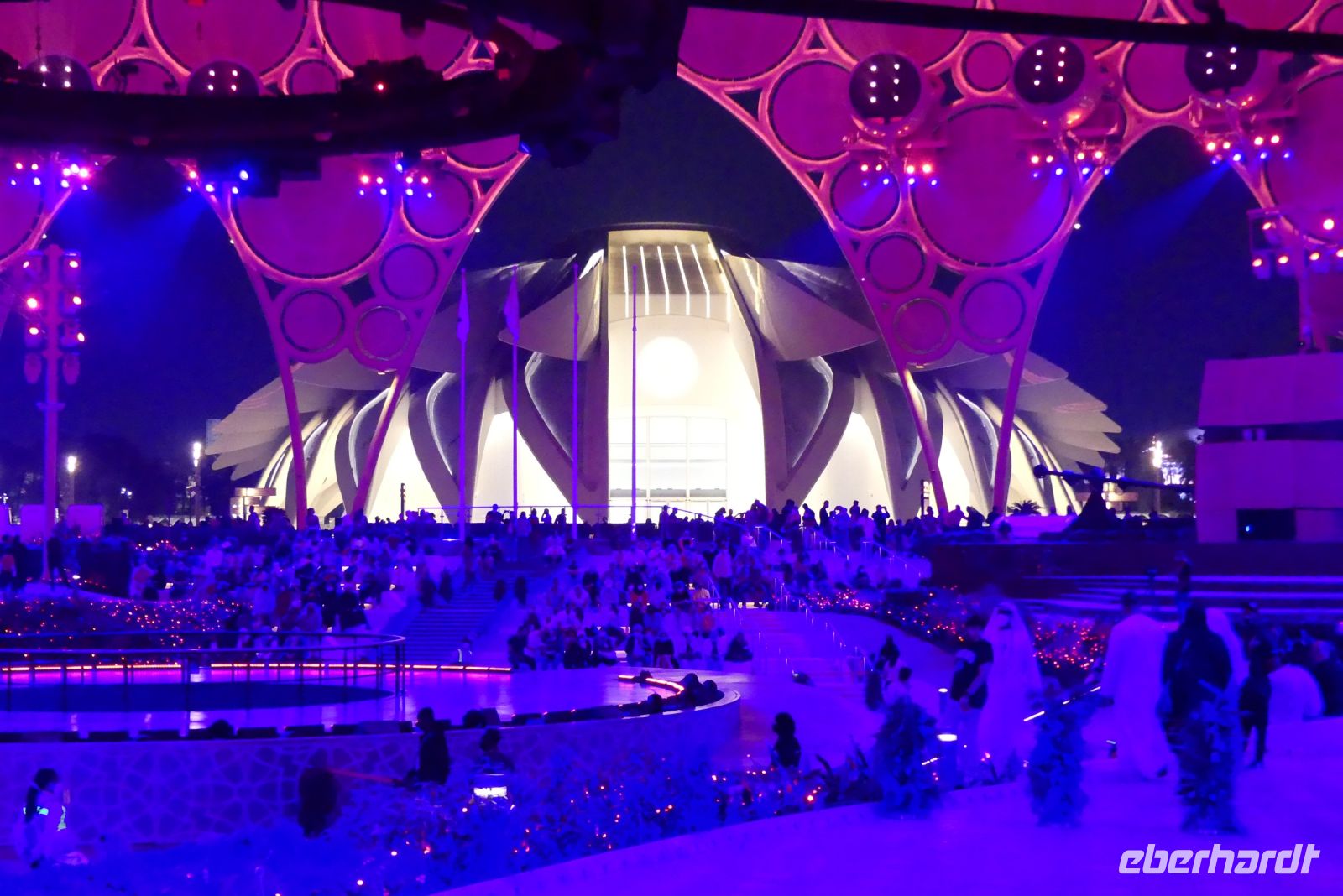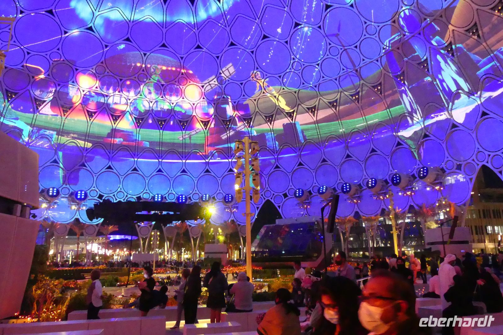Die EXPO hat mit über 190 Länderausstellungen und verschiedenen Themenpavillons eine große Auswahl. Individuell sammeln wir je nach Interessenlage unsere ersten Erfahrungen. Am Abend zieht es mich wieder zum zentralen Dome „Al Wasl“ – nach Einbruch der Dunkelheit regelmäßig Ort verschiedener Aufführungen. Heute gibt es passend zum Wochenende ein Kinderprogramm.