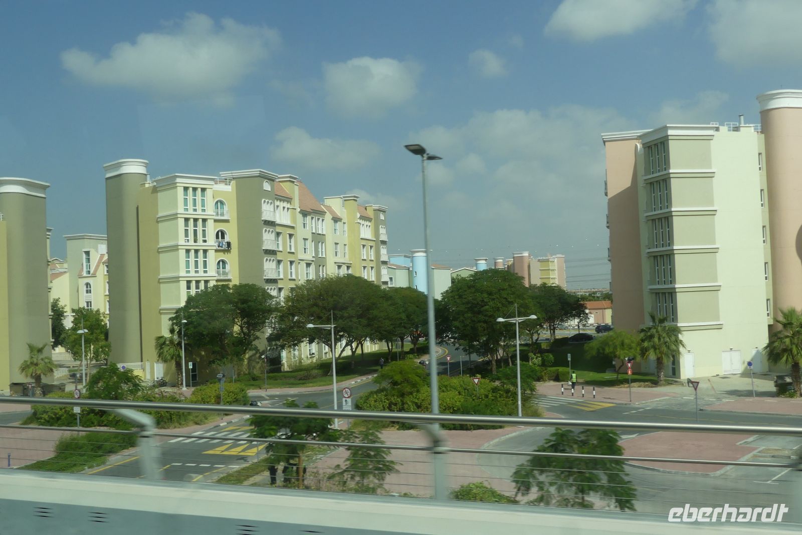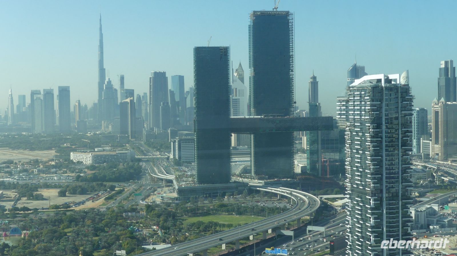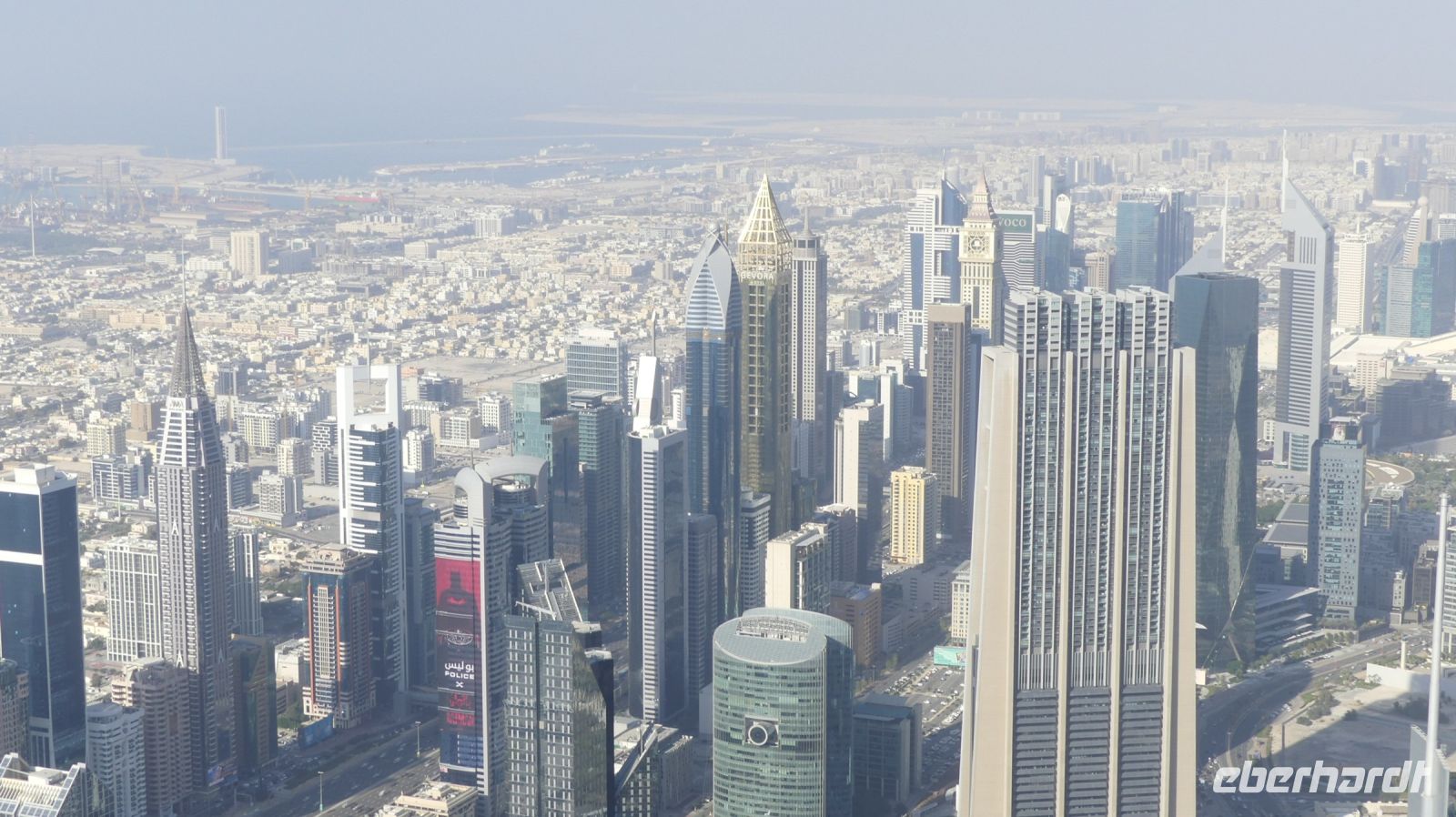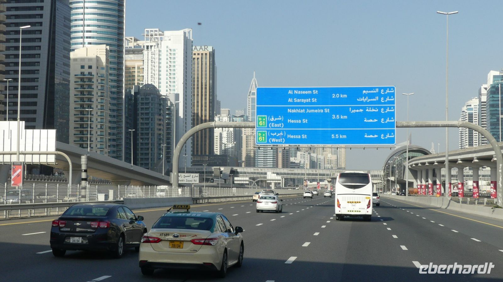 Der Flug nach Dubai dauert etwa 6 Stunden. Auf der halbstündigen Fahrt vom Flughafen zum Hotel überqueren wir dem Meeresarm (Creek) und kommen am Burj Khalifa vorbei. So bekommen wir schon mal einen ersten Eindruck von der Stadt und ihren Ausmaßen.
