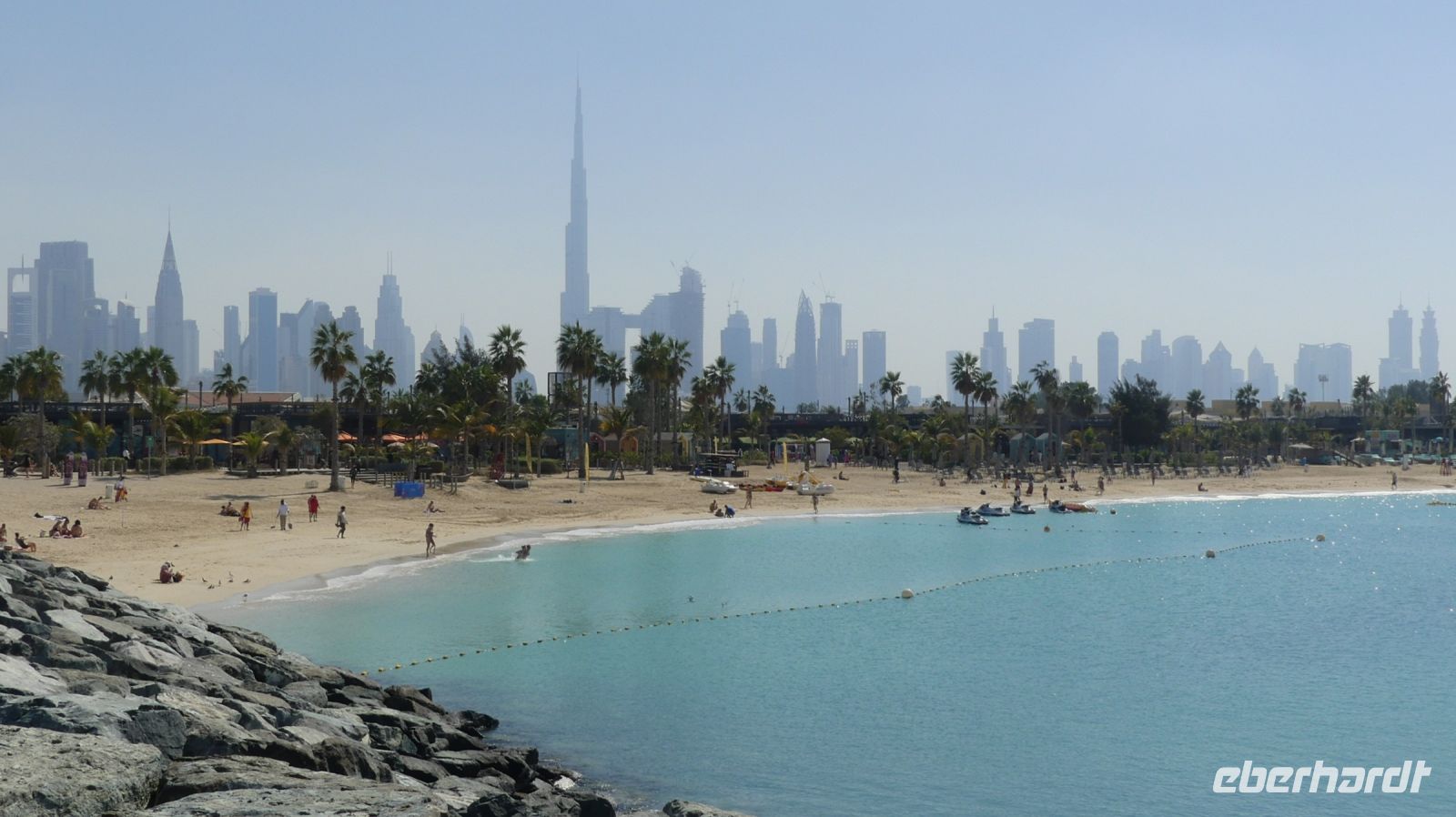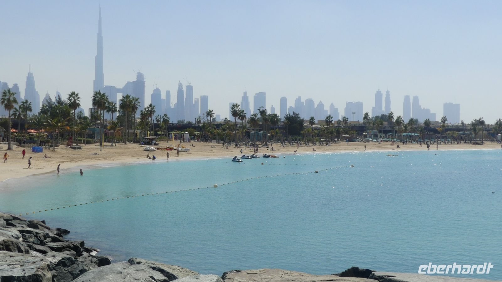 Heute beginnt der Tag mal ganz anders: Freizeit, Zeit zum Ausruhen! Unser Hotel verfügt über eine grüne Außenanlage mit großem Swimmingpool und eigenem Strand. Der Arabische Golf hat selbst jetzt im Januar noch badetaugliche Temperaturen von knapp über 20 Grad.