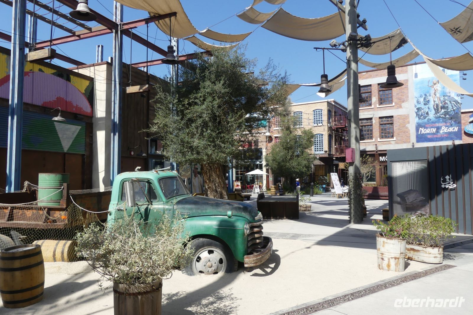 Nur ein paar hundert Meter weiter befindet sich „La Mer“, eine neu gestaltete Strandpromenade. Zwischen zwei Badebuchten befindet sich auf einer Halbinsel „The Wharf“. Bei der Gestaltung dieser Uferpromenade haben sich Künstler und Architekten vom Charme amerikanischer Kleinstädte der 1960er Jahre inspirieren lassen. Hier findet man Industrie-Design, niedrig gebaute Häuser mit Cafés und Restaurants, nostalgische Uhrtürme oder klassische Werbetafeln kombiniert mit scheinbar angespülten Gegenständen aus Holz, Seilen, Fässern, verrosteten Ankern…