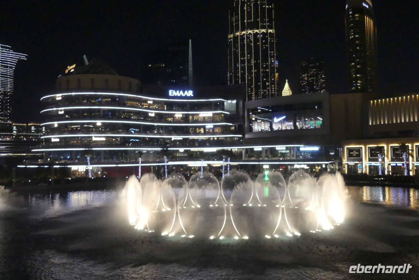 Nach etwas Freizeit mit Shoppen, einem Aquariumbesuch oder Erkundungen im Umfeld wird es Zeit für unser Abendessen. Dafür haben wir in einem libanesischen Restaurant auf der Terrasse des Souk al Bahar einen Tisch reserviert. Es gibt ein reichhaltiges libanesisches Tischbuffet und dazu alle 30 Minuten Unterhaltung von der Dubai Fountain mit Blick auf den Burj Khalifa….immer wieder schön.