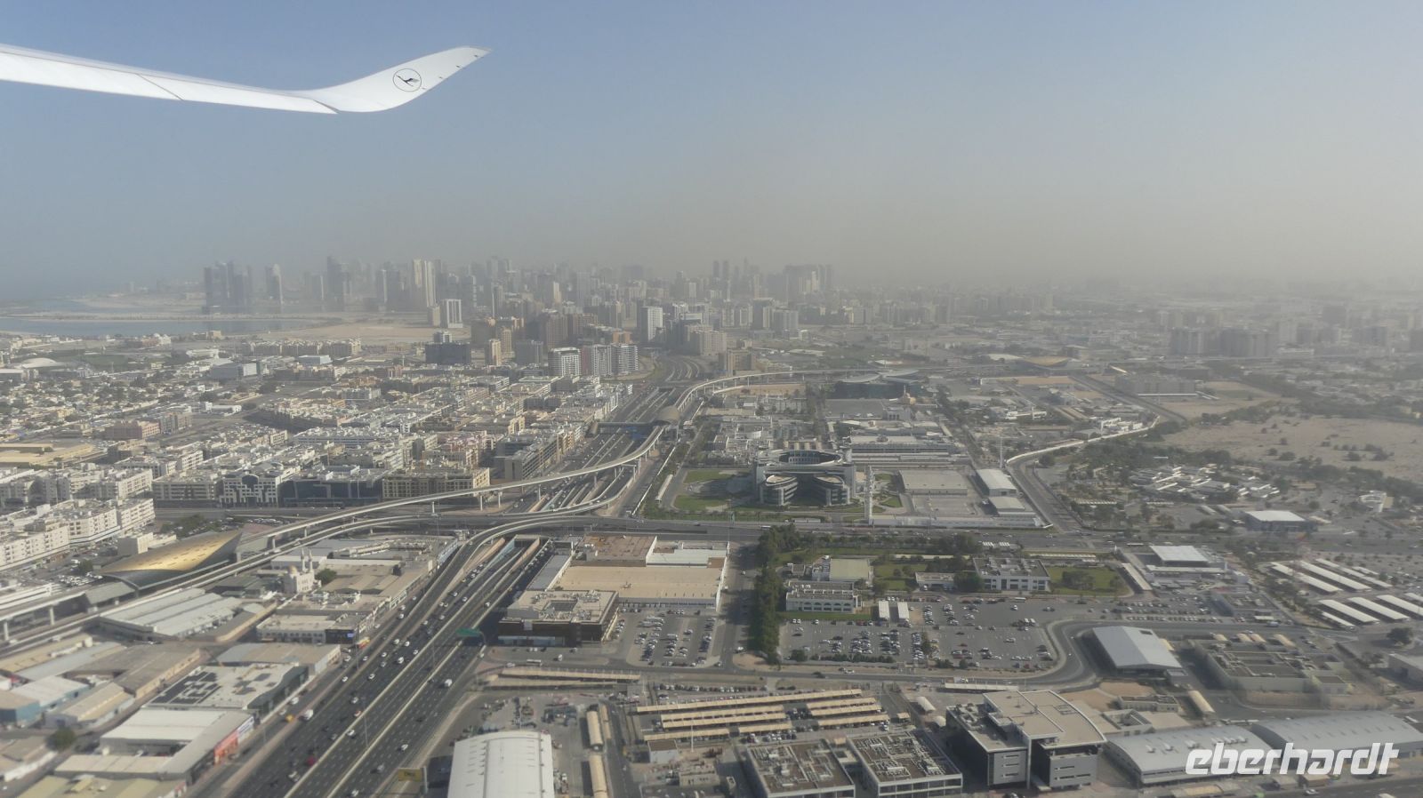 Ausgestattet mit einem negativen PCR-Test fliegen wir von Dresden und Berlin mit Lufthansa via Frankfurt am Main oder direkt mit Emirates von Hamburg, Düsseldorf bzw. Frankfurt nach Dubai. Für uns, welche mit mir den Zubringerflug von Dresden nach Frankfurt am Main haben, gibt es am Abend vor dem Abflug noch etwas Stress. Die Lufthansa streicht kurzfristig unseren Zubringerflug. Zum Glück kann uns Eberhardt Travel auf einen früheren Flug umbuchen. So haben wir zwar einen längeren Aufenthalt in Frankfurt, bekommen aber unseren planmäßigen Flug nach Dubai, welcher von der Lufthansa allerdings um eine Stunde verschoben wird.