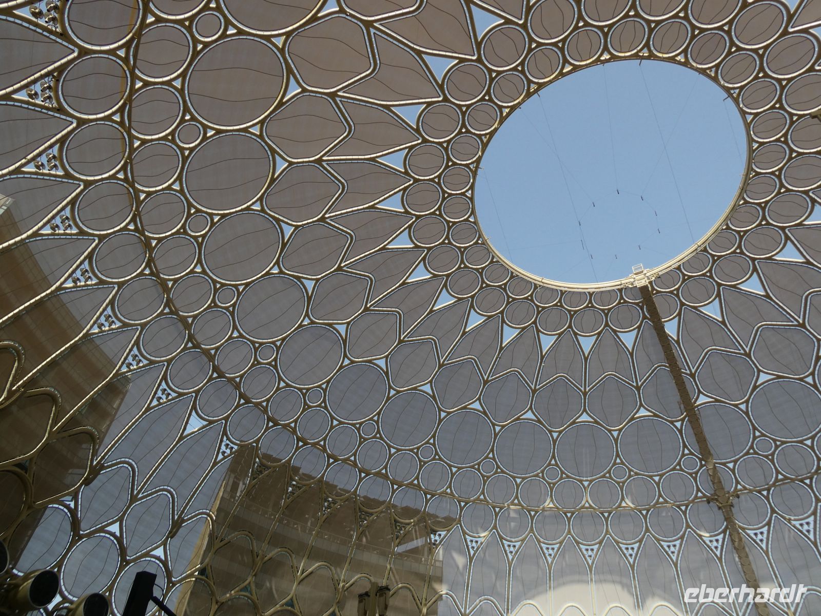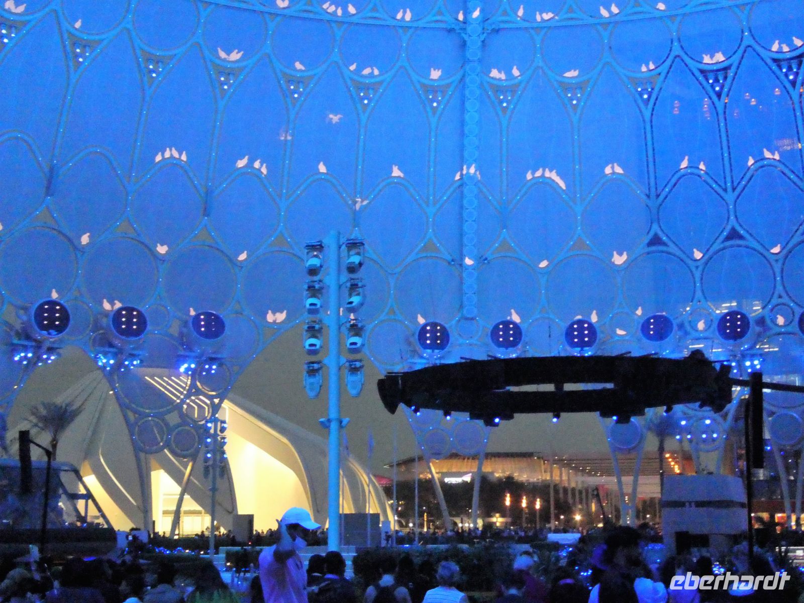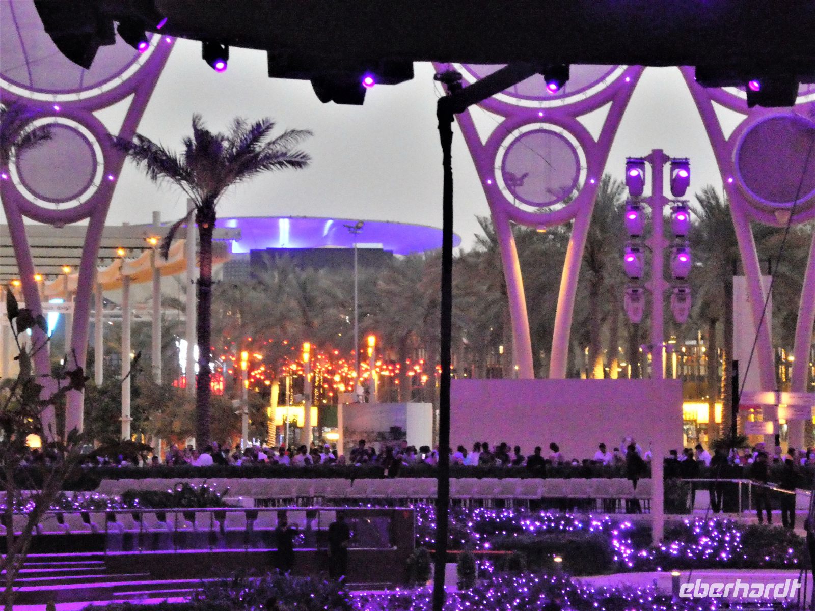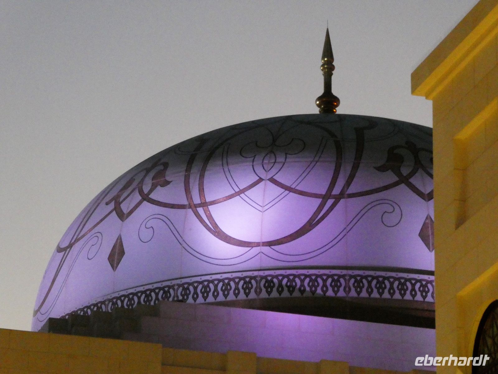 Am Abend ruft unter dem Hauptpavillon "Al Wazl Plaza" der Muezzin zum Abendgebet, denn wir befinden uns in einem islamischen Land. Das Gebet gehört zu einem der Pflichten der Muslime.