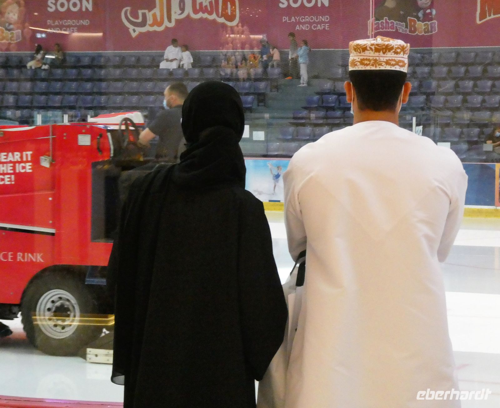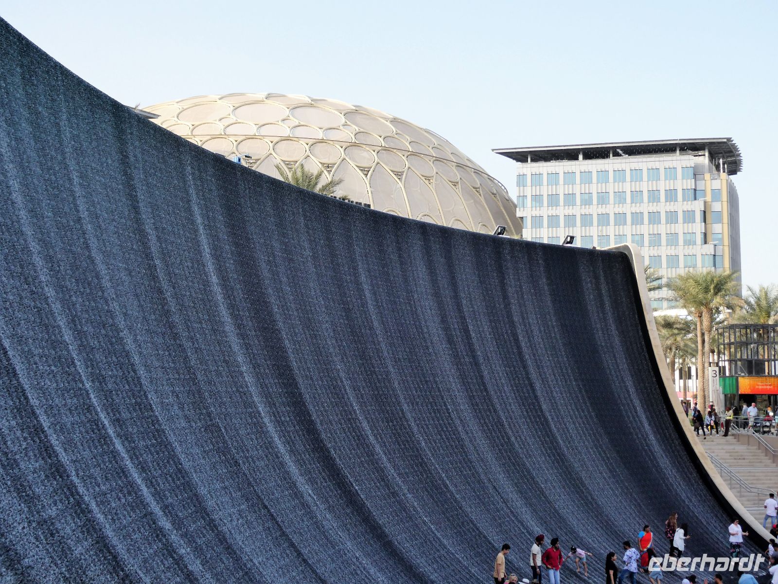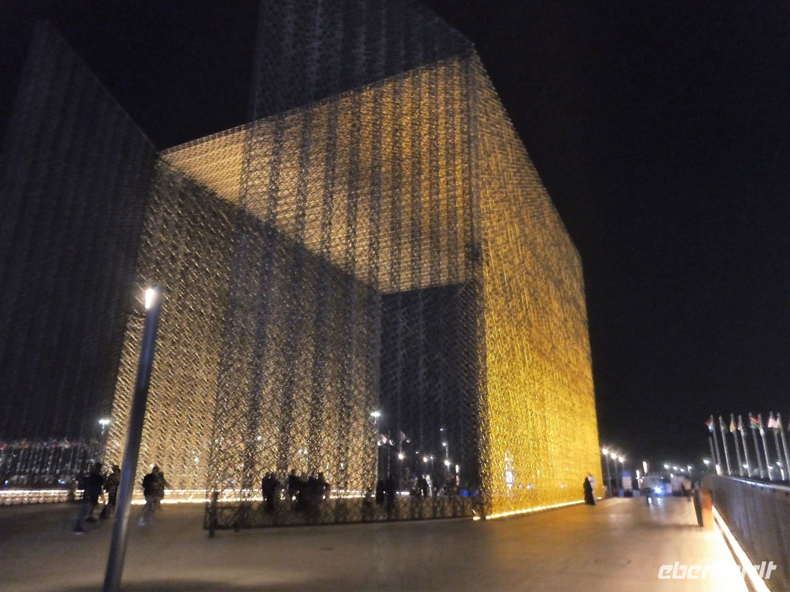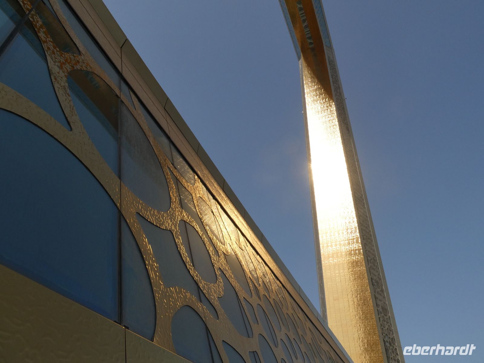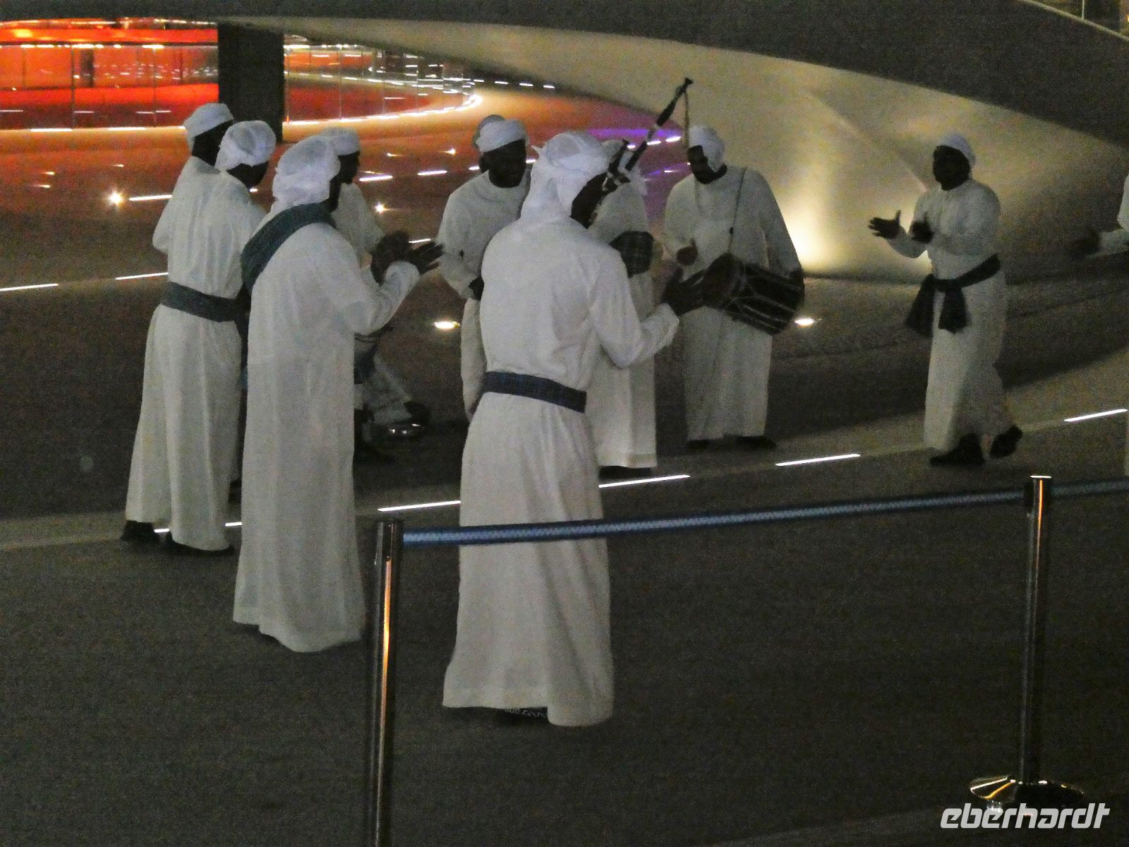 Am Abend ruft unter dem Hauptpavillon "Al Wazl Plaza" der Muezzin zum Abendgebet, denn wir befinden uns in einem islamischen Land. Das Gebet gehört zu einem der Pflichten der Muslime.