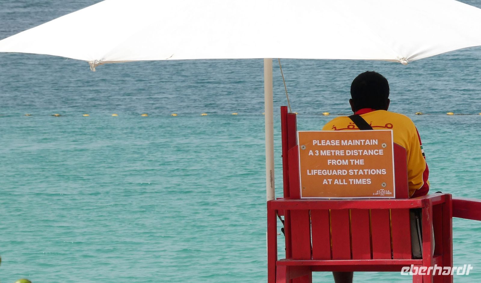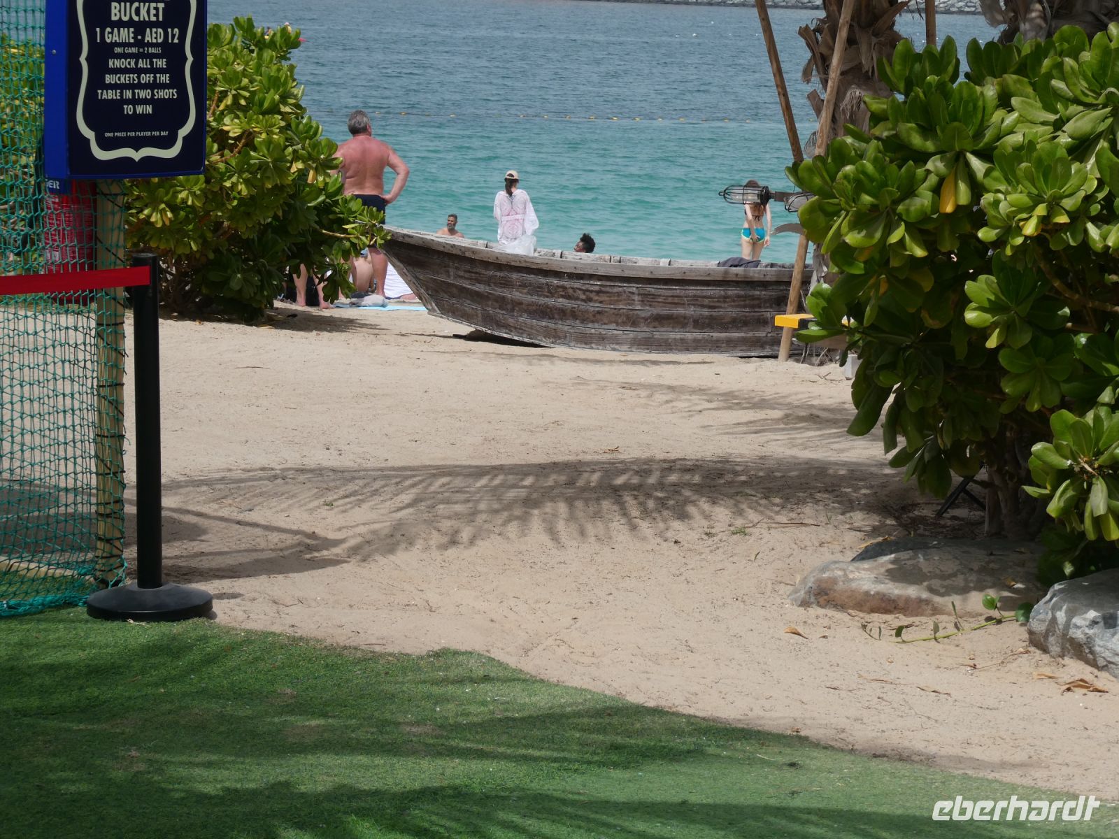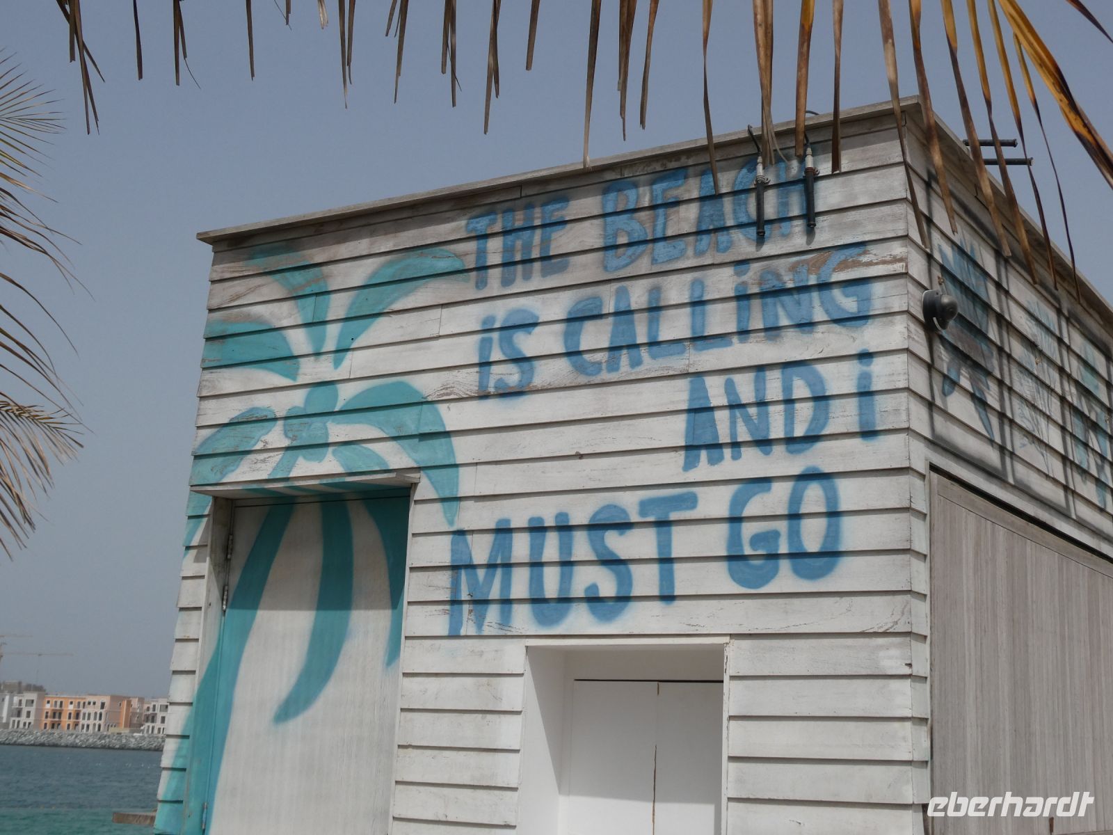 Vor der Fahrt zur Dubai Mall machen wir eine kleine Pause am Strand bei "La Mer". Ein kleiner Spaziergang tut uns gut und so sind wir aufnahmefähig für das nächste Highlight: das mit 828 m höchste Gebäude der Welt.