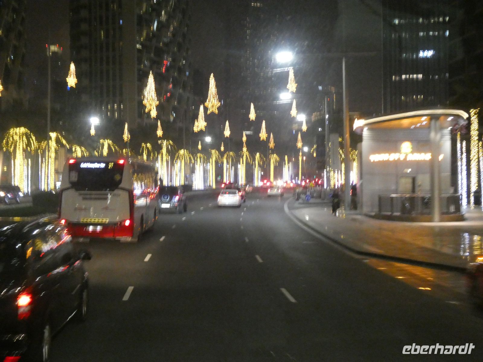 Danach fahren wir durch das hell erleuchtete Dubai zurück in unser Hotel und fallen müde in unsere Betten, denn die gestrige Nacht war nicht sehr lang.