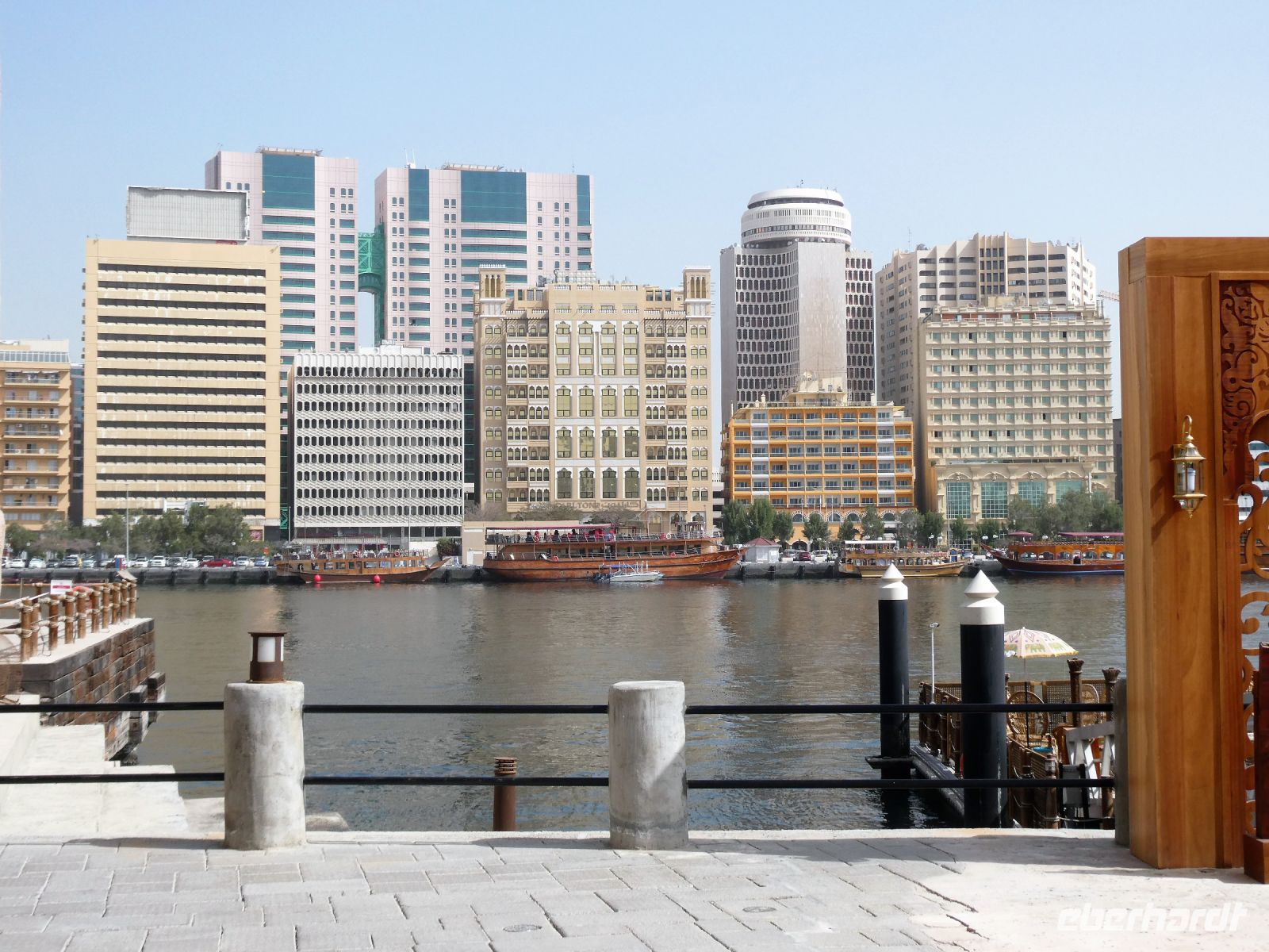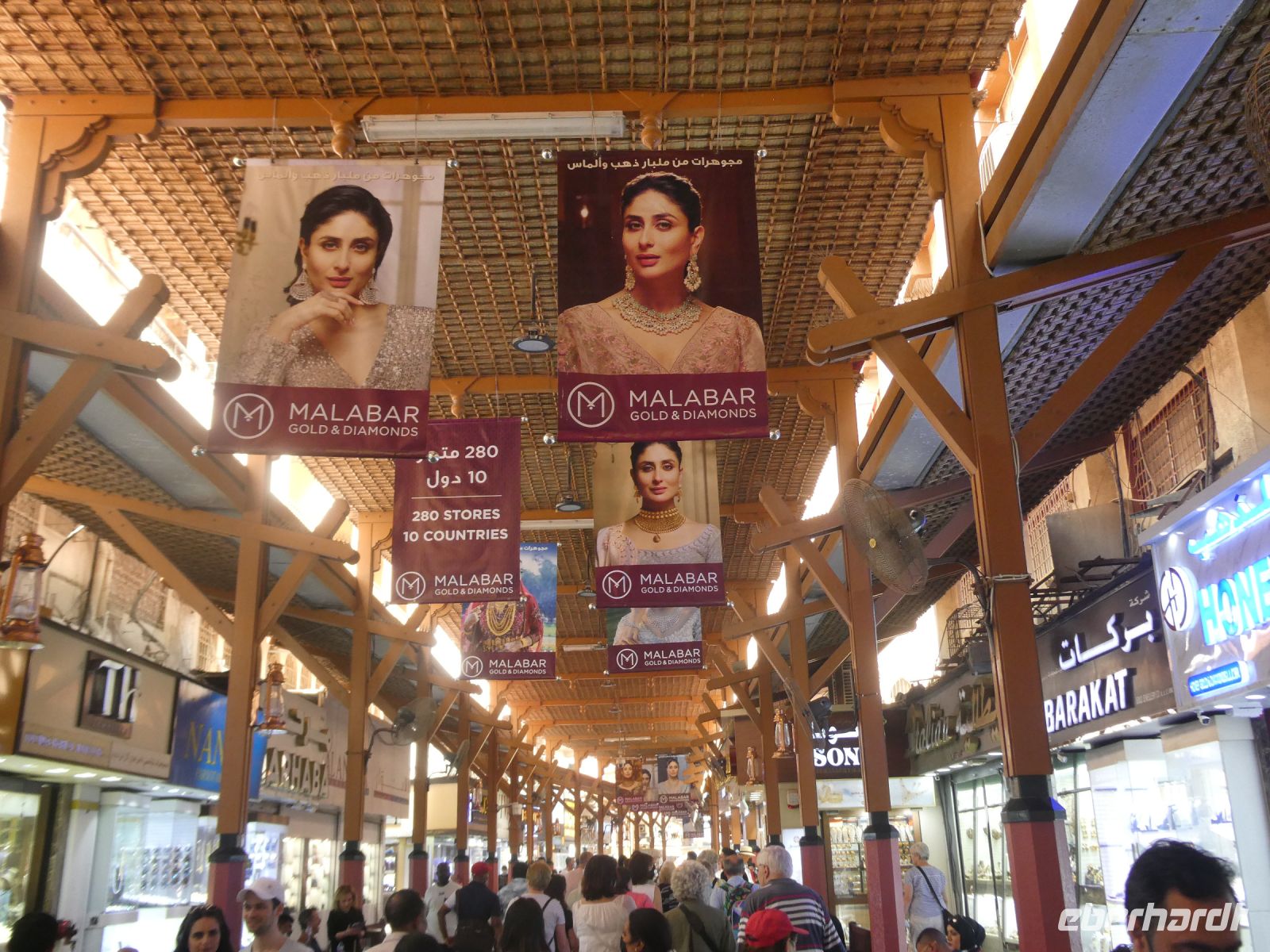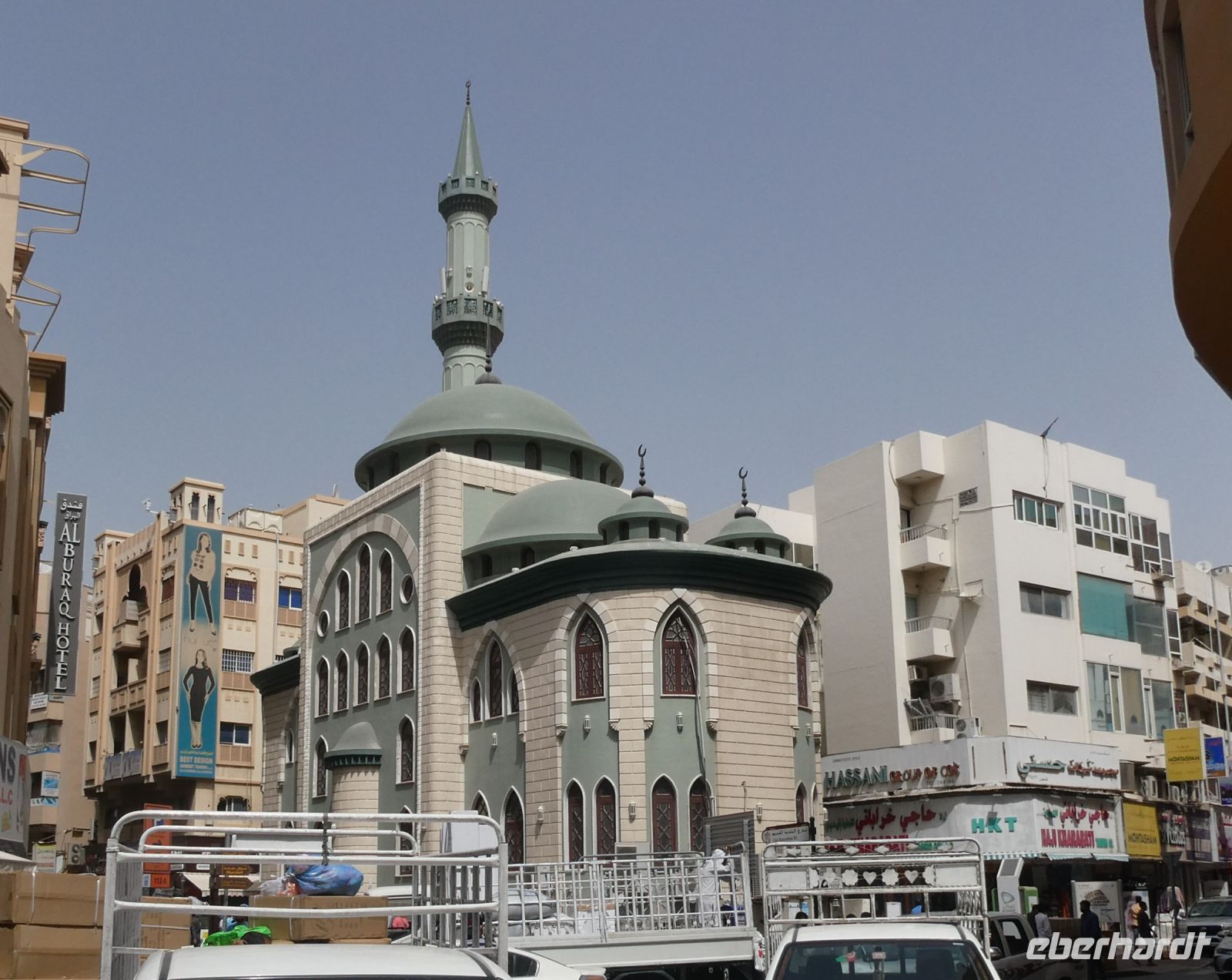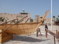 Wir fahren mit einer traditionellen Abra, einem Wassertaxi, auf die andere Seite des Creek. Bei einem Gewürzhändler werden uns verschiedene Gewürze erklärt, die besonders in der orientalischen Küche Verwendung finden. Dafür, dass diese Gewürze ihren weiten Weg von Fernost nach Arabien und damit auch nach Europa fanden, sorgten schon seit dem Mittelalter Kaufleute die damit in historischen Zeiten zu Reichtum gelangten. Reich werden die Indischen oder pakistanischen Händler mit Safran heute nicht mehr. Sie sichern sich aber ein Einkommen in diesem Land. Denn Gewürze sind bei allen Bewohnern aber auch bei den Reisenden als Mitbringsel begehrt. In unserer Gruppe erfreuen sich Muskatnüsse besonderer Beliebtheit. Ob meine Mitreisenden wissen, dass man sich mit Muskatnüssen einen Rausch verschaffen kann? Für Gewürze gilt, wenig ist Arznei, ein Zuviel führt bei einigen Gewürzen zum Tod, wie z.B. beim Safran, der auch als Heilmittel verwendet wird.