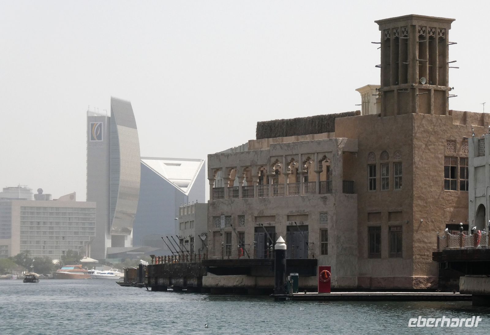Heute können wir etwas länger schlafen und heute steht das traditionelle Dubai oder "alte" Dubai bis mittags auf dem Programm. Nach einer kurzen Fahrt halten wir vor einem Ensemble, so wie es scheint, alter Bauwerke. Windtürme ragen in den Himmel (nein natürlich nicht so hoch wie gestern).