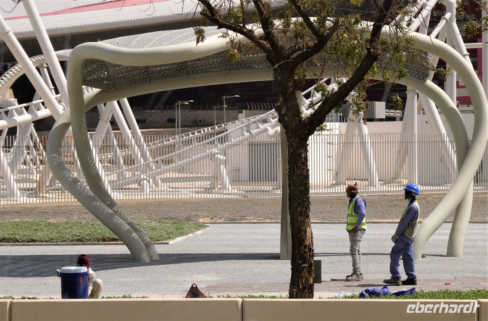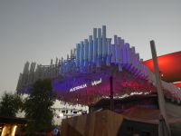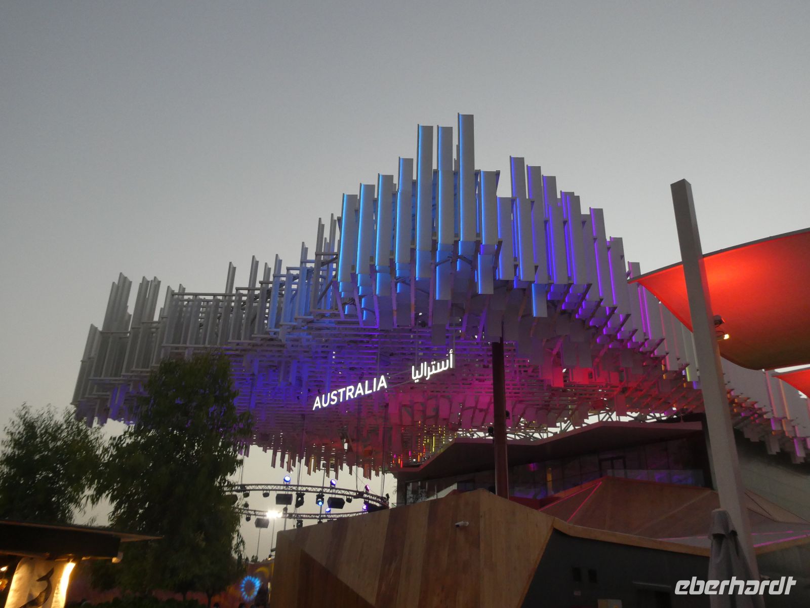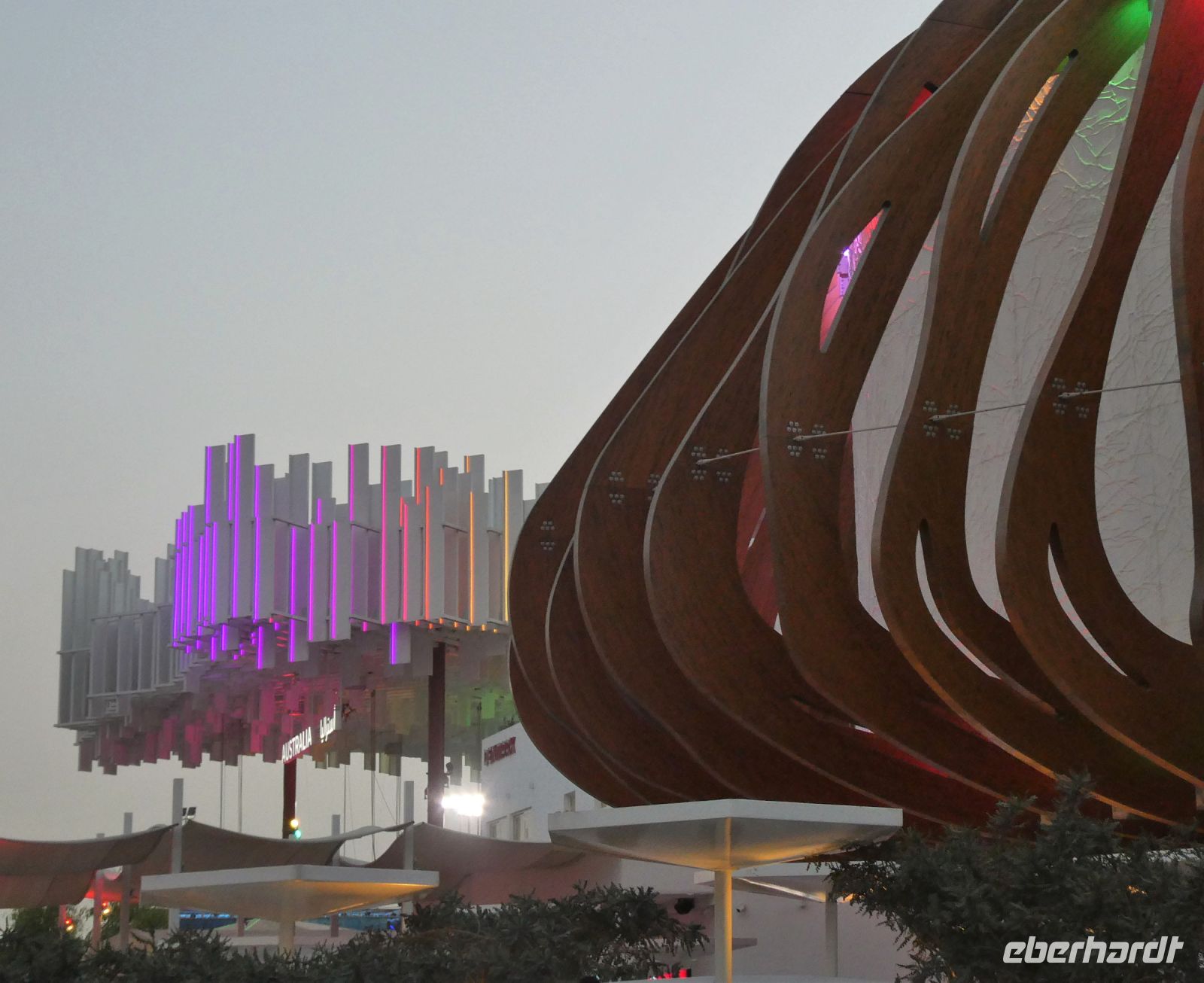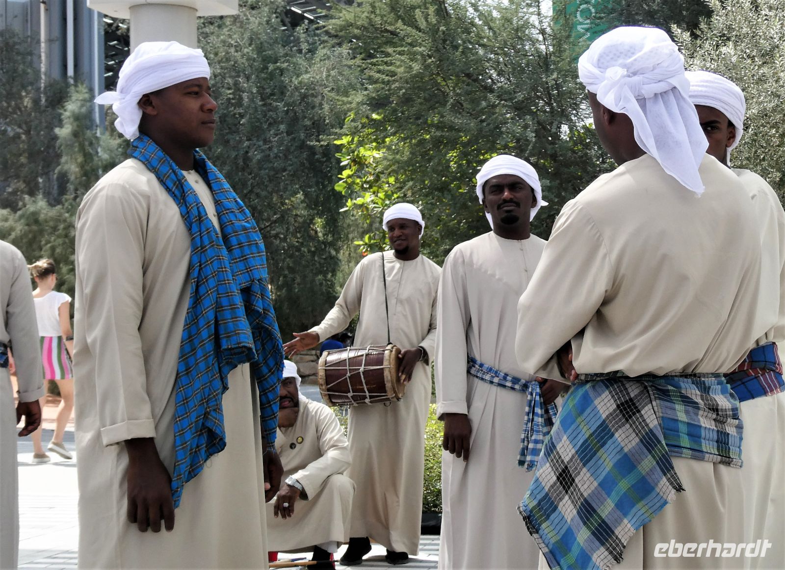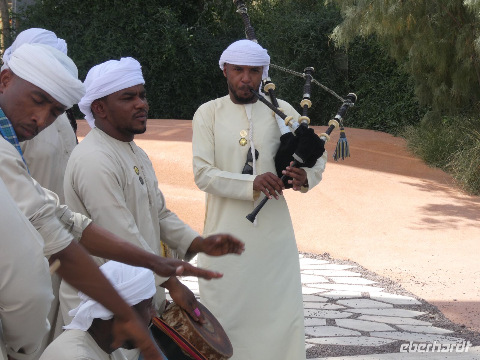 Heute können wir in Ruhe noch einmal besondere Pavillons aufsuchen oder einfach das muntere Treiben beobachten: z.B. eine arabische Musikgruppe die traditionelle Musik spielt mit einem Dudelsackspieler. Dieses Musikinstrument ist ein ein Erbe der Schotten, bzw. Briten, die in die Geschehnisse dieser Region im 20.Jahrhundert und auch schon vorher involviert waren. Die Musikanten haben augenscheinlich afrikanische Wurzeln. Wir werfen beim Hinausgehen einen letzten Blick auf das EXPO - Gelände mit seinen interessanten Bauwerken. Einige davon sollen stehen bleiben und das Gelände wird in der Zukunft genutzt werden.
