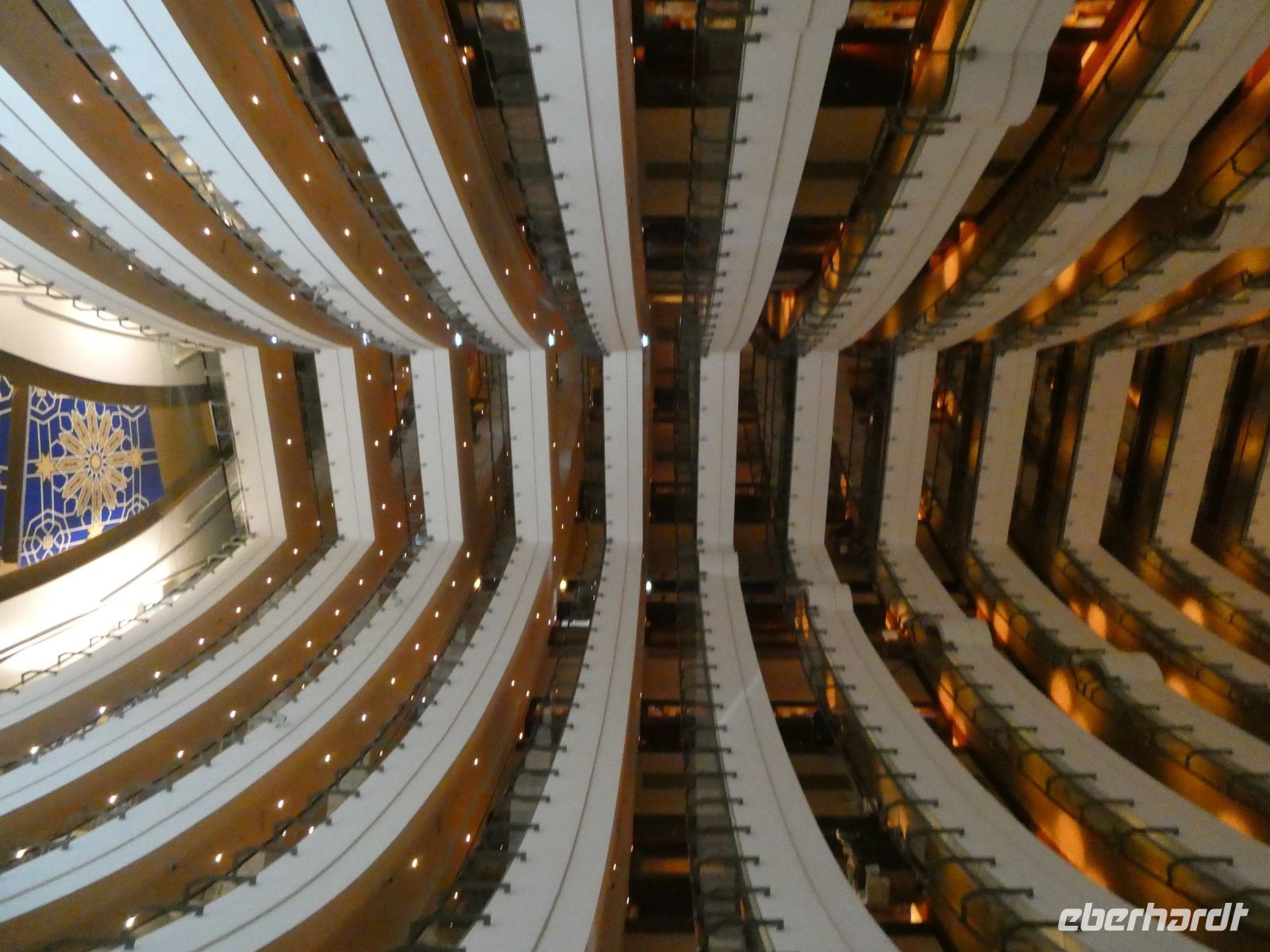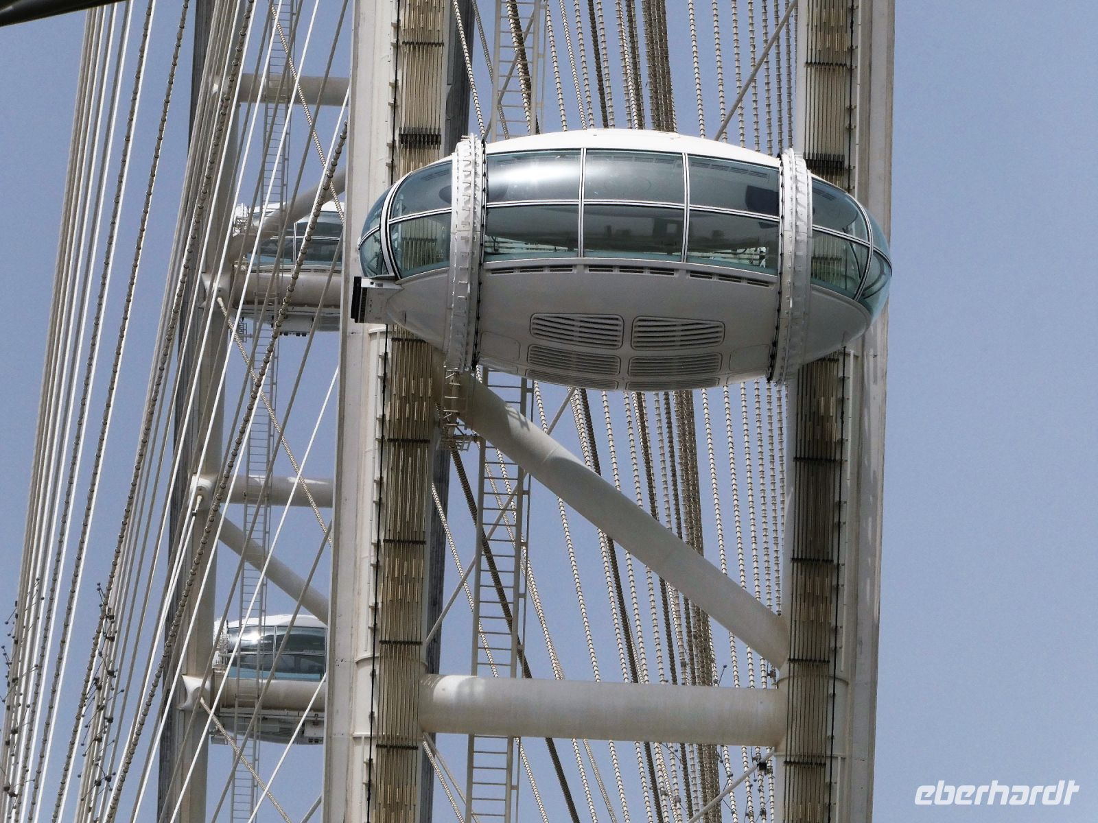 Entspannend ist die Fahrt mit unserem Schiff. Zum Abschluss bekommen wir auch noch ein kleines Glas Sekt gereicht. Was wollen wir mehr! Wir wollen mehr, nämlich mit dem größten Riesenrad der Welt fahren. Dorthin zieht es uns nach unserer Schiffsfahrt. Leider werden wir enttäuscht. Uns wird gesagt, dass das Riesenrad wegen des Wetters nicht fährt. Eventuell morgen, aber das wisse man noch nicht so genau. Also fahren wir gleich anschließend zur EXPO. Auch heute kennen alle schon ihr Programm und stürmen gleich nach Ankunft davon. Wieder gibt es viel zu entdecken. Heute können wir uns schon leichter orientieren und merken, dass das Gelände doch ganz schön groß ist.