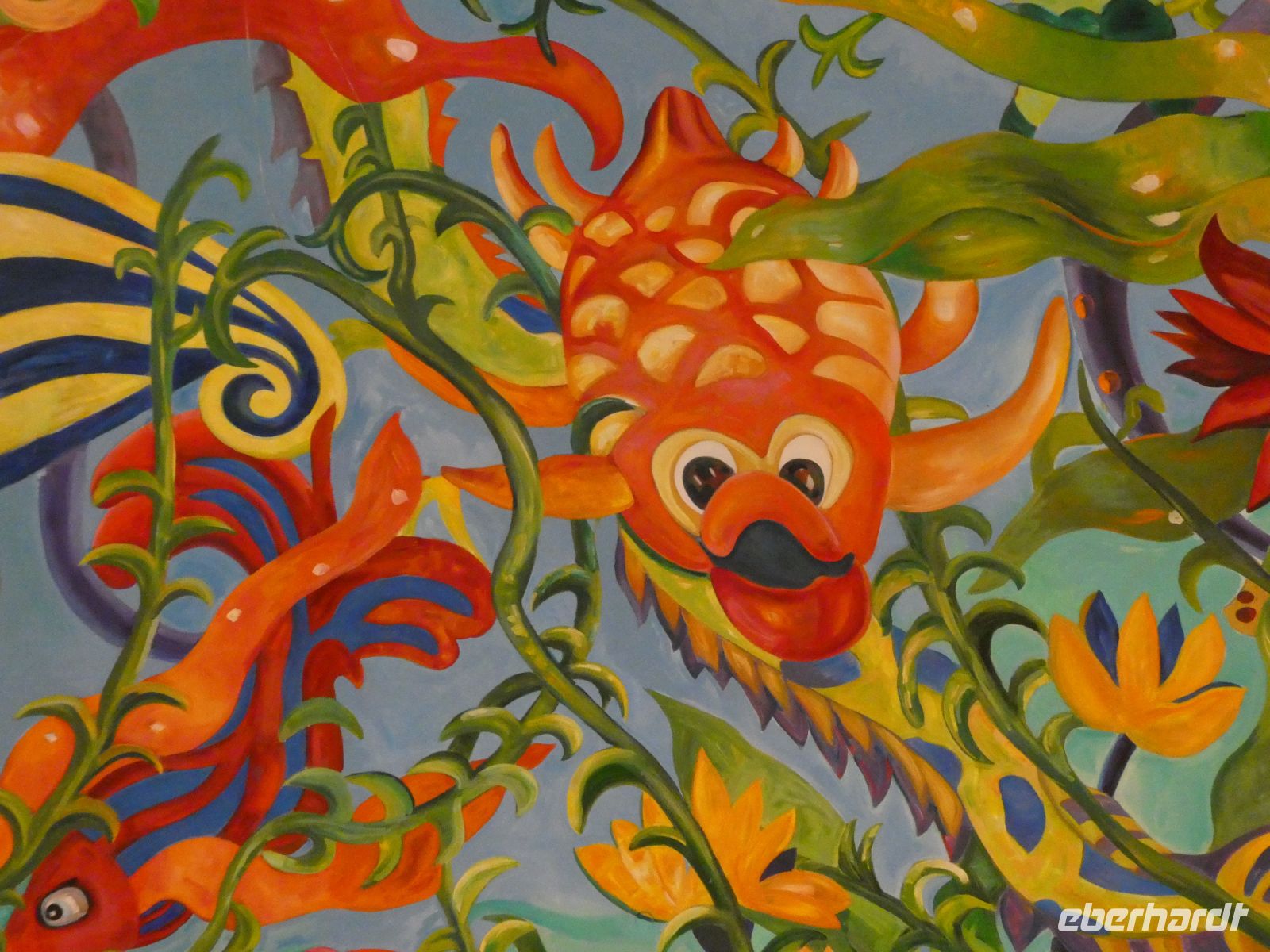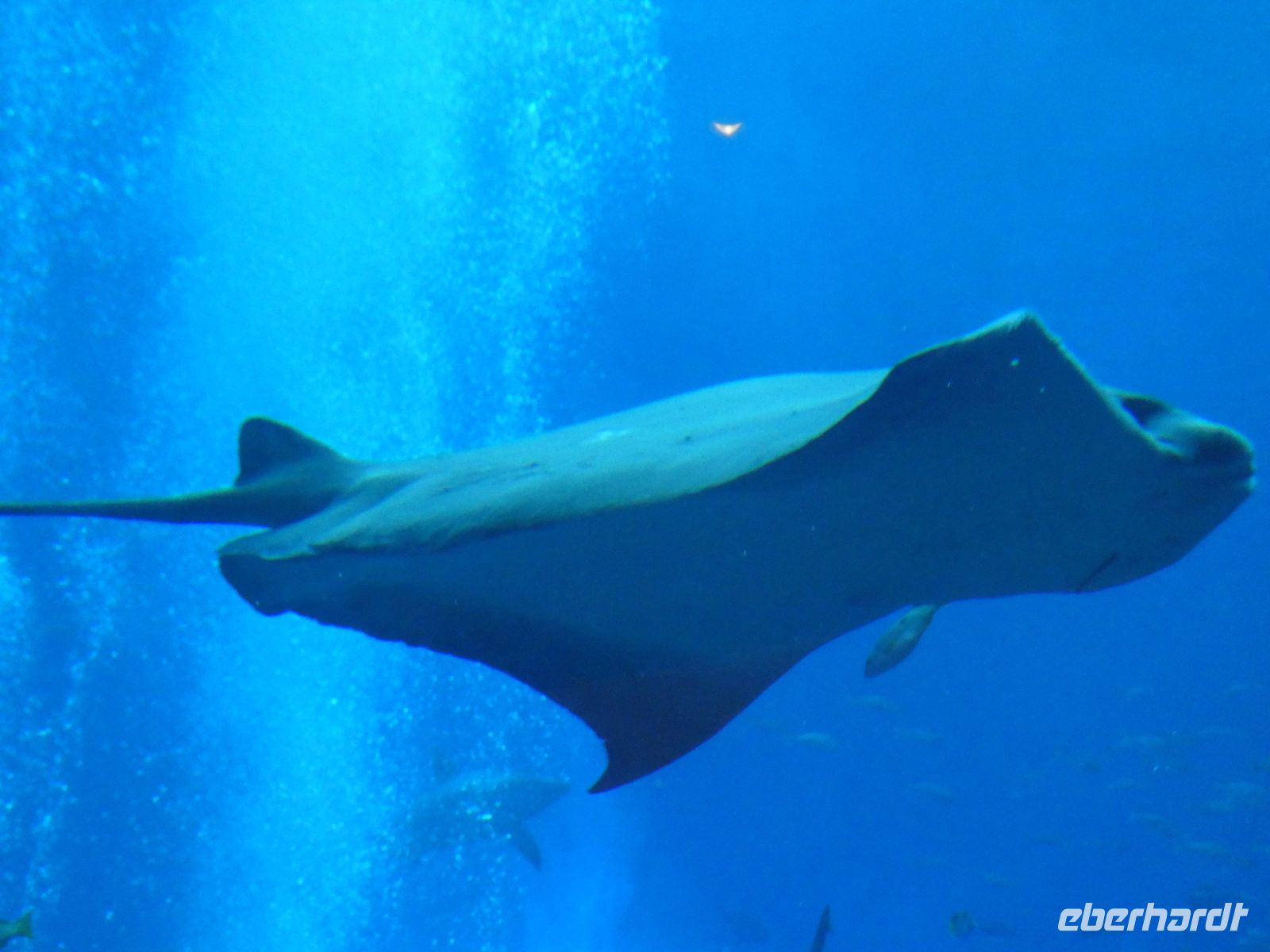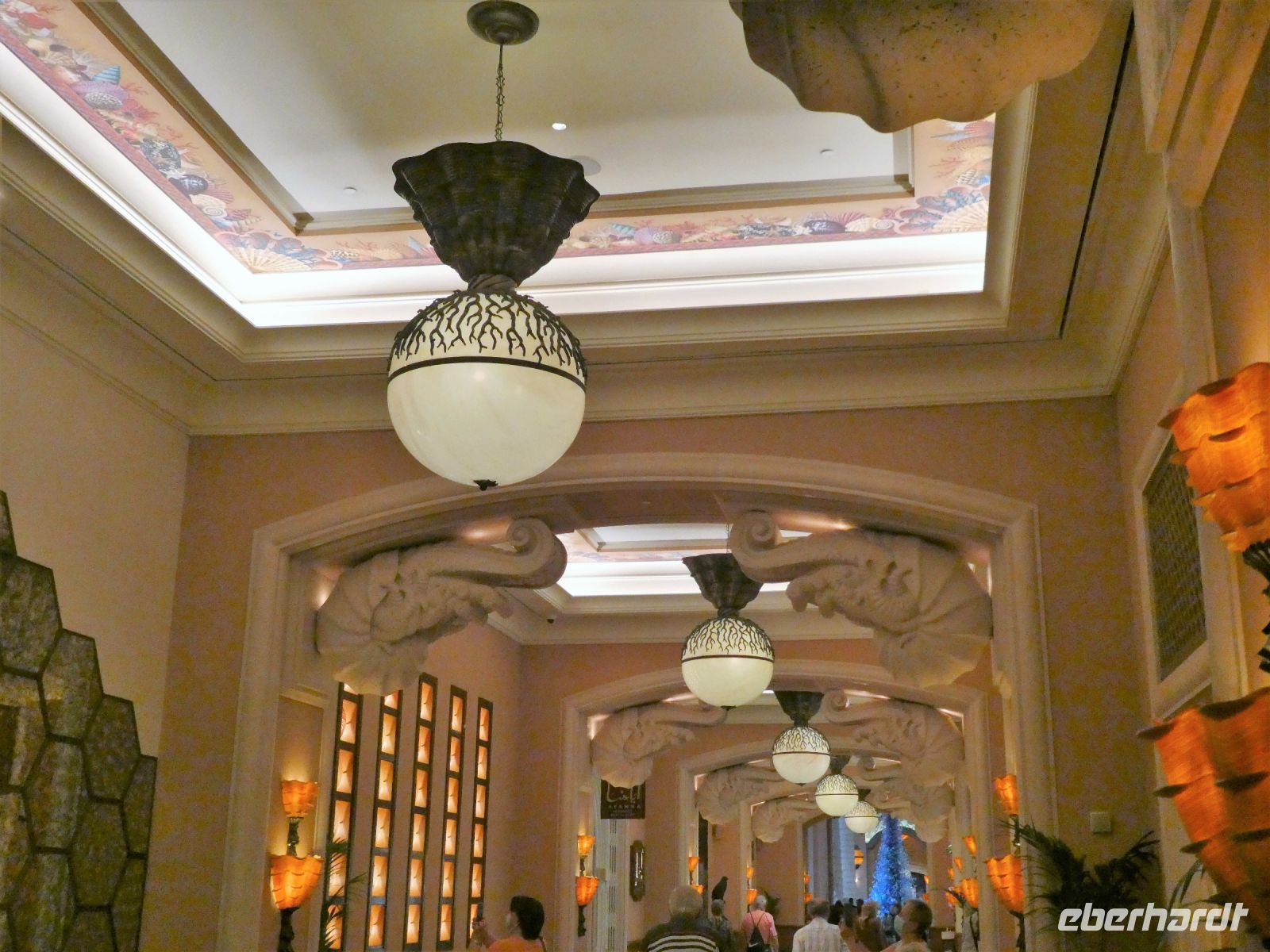Wir fahren in Richtung "Madinat Jumeira" und können uns wohl eines der attraktivsten Hotels Dubais, das "Burj al Arab" aus der Nähe betrachten. Die Geschäfte der Mall sind sehr luxuriös und wir haben nach einer Kaffeepause ein wenig Zeit, Geld auszugeben. Natürlich nur wer möchte. Hier sind die Angebote in den Geschäften von sehr guter Qualität und so gibt es den einen oder anderen Kauf. Nach diesem kleinen Bummel wird es Zeit die Abfahrtstation der Monorail aufzusuchen. Sie wird uns auf die schon erwähnte Palminsel bringen, zum Atlantis-Hotel, wo wir zu Abend essen werden. Ruhig gleitet die Monorail in kurzer Zeit auf die künstlich angelegte aus dem Meer geschaffene Insel. Wir können die in der Ferne neu entstandenen Hotelkomplexe betrachten oder diejenigen welche noch im Baus sind. Dann am Eingang des riesigen Hotelkomplexes werden wir wie durch einen Erlebnisparcour vorbei an spektakulären Dekorelementen in einen Bereich geleitet, in dem sich ein riesiges Aquarium befindet. Haie, Rochen und bunte Seefische des Arabischen Meers gleiten vorbei. Schließlich landen wir im Restaurant. In einem riesigen Saal sind die überbordenden Buffets angerichtet. Thema ist heute: Asien. Es gibt so ziemlich alles was das Asien liebende Herz begehrt: indische Currys, Pekingente, Sushi, Seefood etc. Wo fängt man am besten an? Aber schließlich können wir diese schwierige Aufgabe bewältigen. Wir bekommen einen Tisch im Freien und niemand steht letztendlich hungrig vom Tisch auf. Voll der köstlichen Speisen treten wir mit dem Bus unsere Heimreise ins Hotel an.